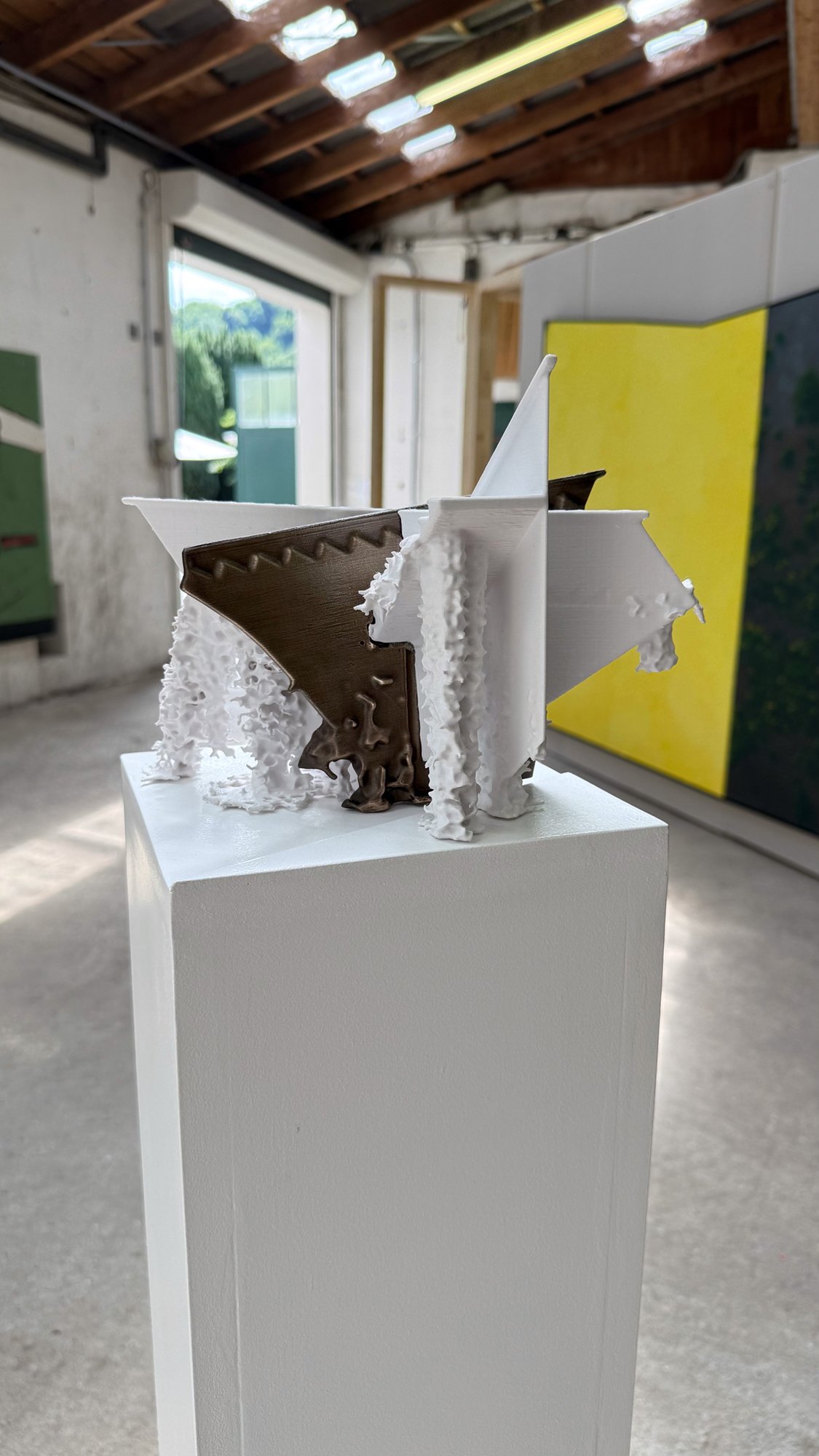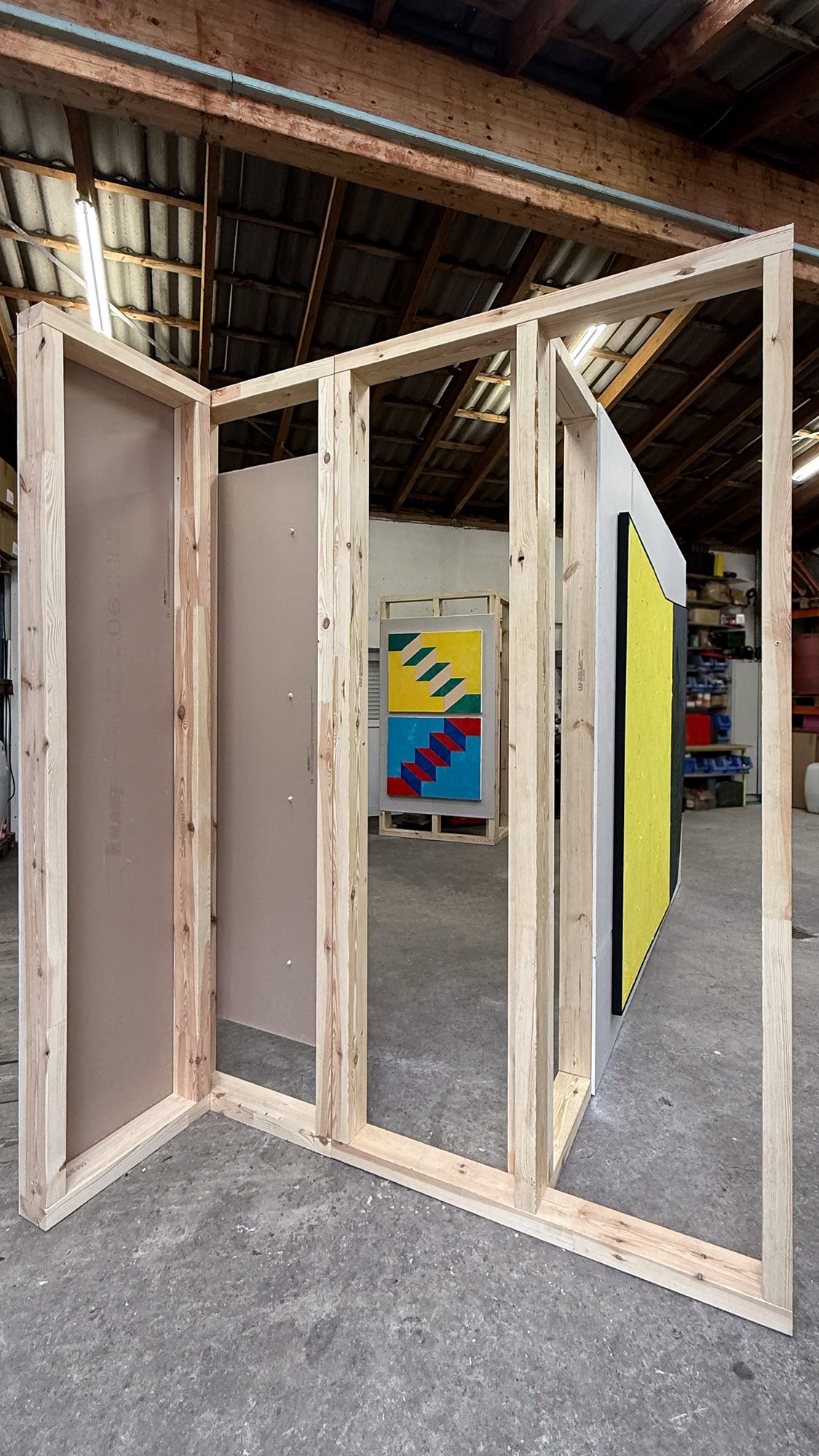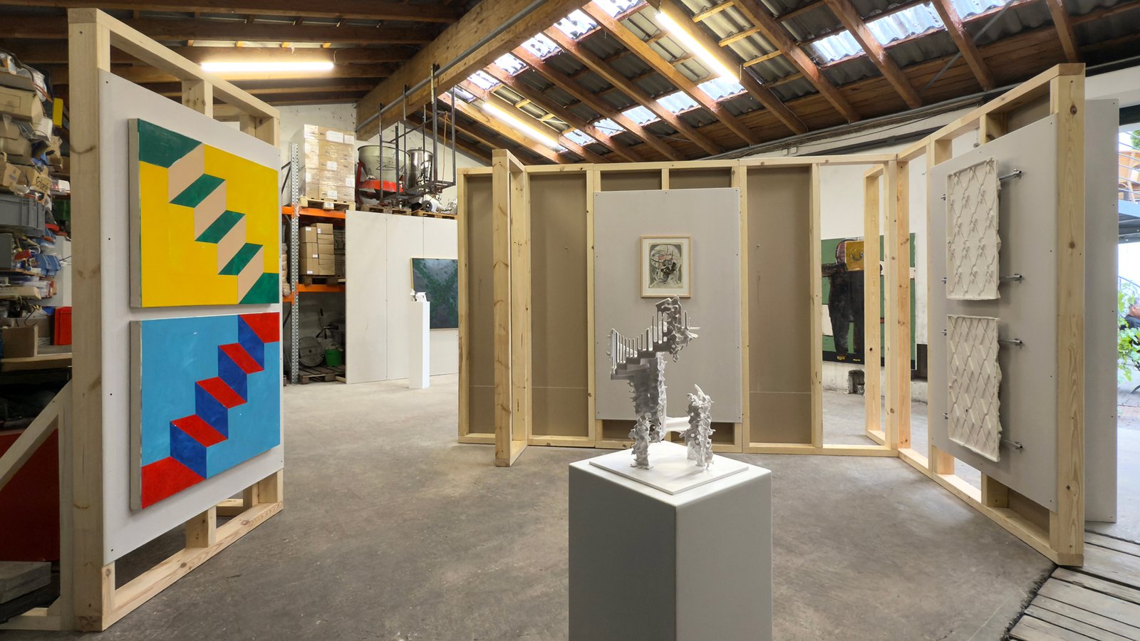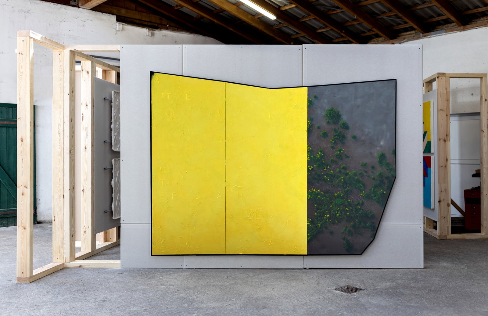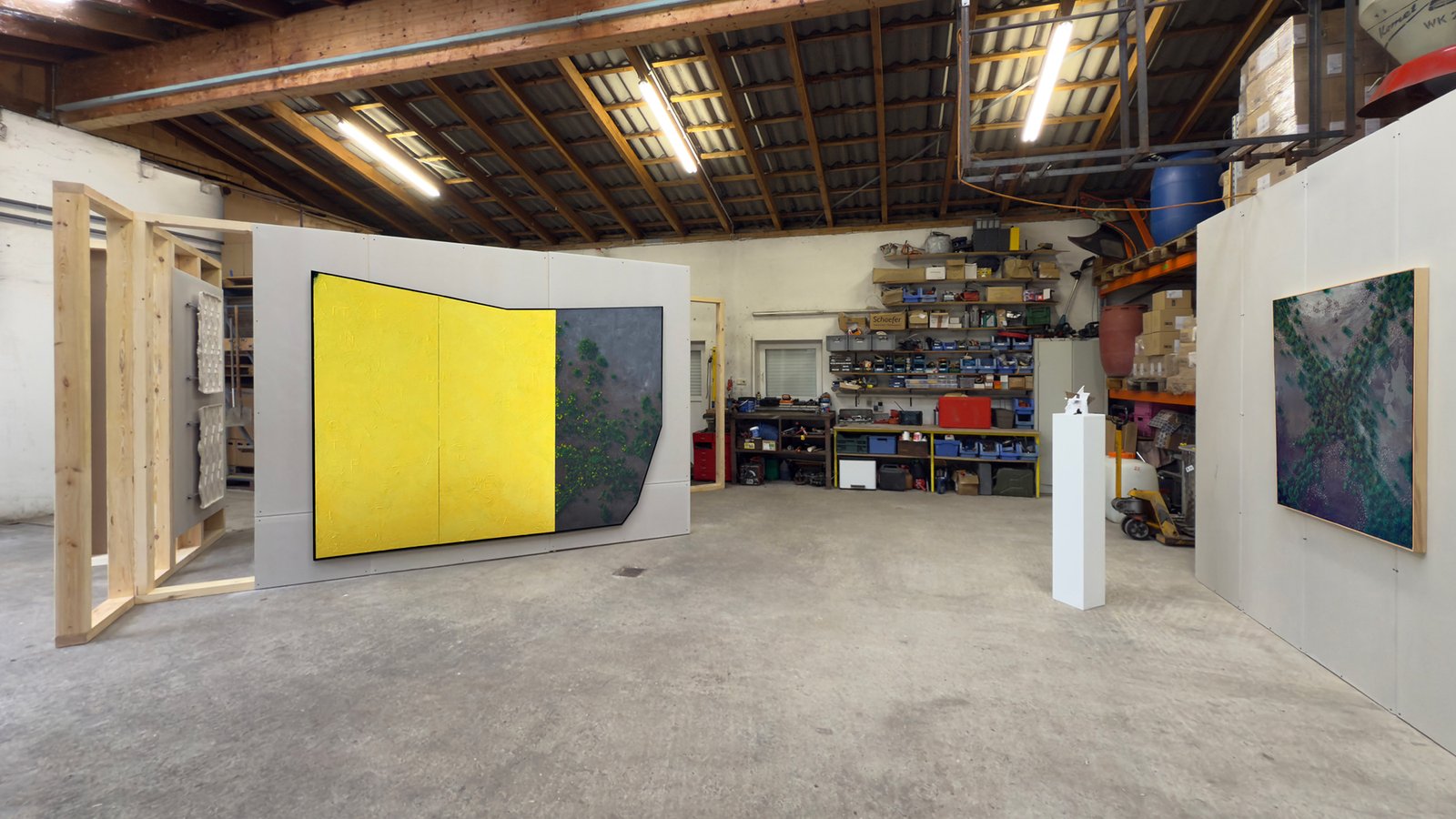 The first exhibition of the curatorial project Transit Transit explores questions of space, belonging, and identity in transition. A functioning production hall at a Mosel winery is transformed into an exhibition space for one weekend—marking the beginning of a series of exhibitions in temporary venues beyond established art institutions. The participating artistic positions engage with the overarching theme of landscape, architecture, and living space—not as documentary or illustration, but as a layered, visual exploration. What does it mean to stay rooted—or to leave? What traces do origin, architecture, topography, and social structures leave in artistic language? A custom-built modular wall system, inspired by timber-frame construction, structures the space without neutralizing it. It refers to housing typologies, structural materials, and spatial formation—and becomes a sculptural infrastructure in itself. A display system that raises questions about materiality, privacy, publicness, and the construction of personal identity. Transit Transit #1 makes spatial conditions visible—between city and countryside, interior and exterior, between what remains and what transforms. An exhibition about the coexistence of rupture and uprooting—as well as arrival and unfolding.