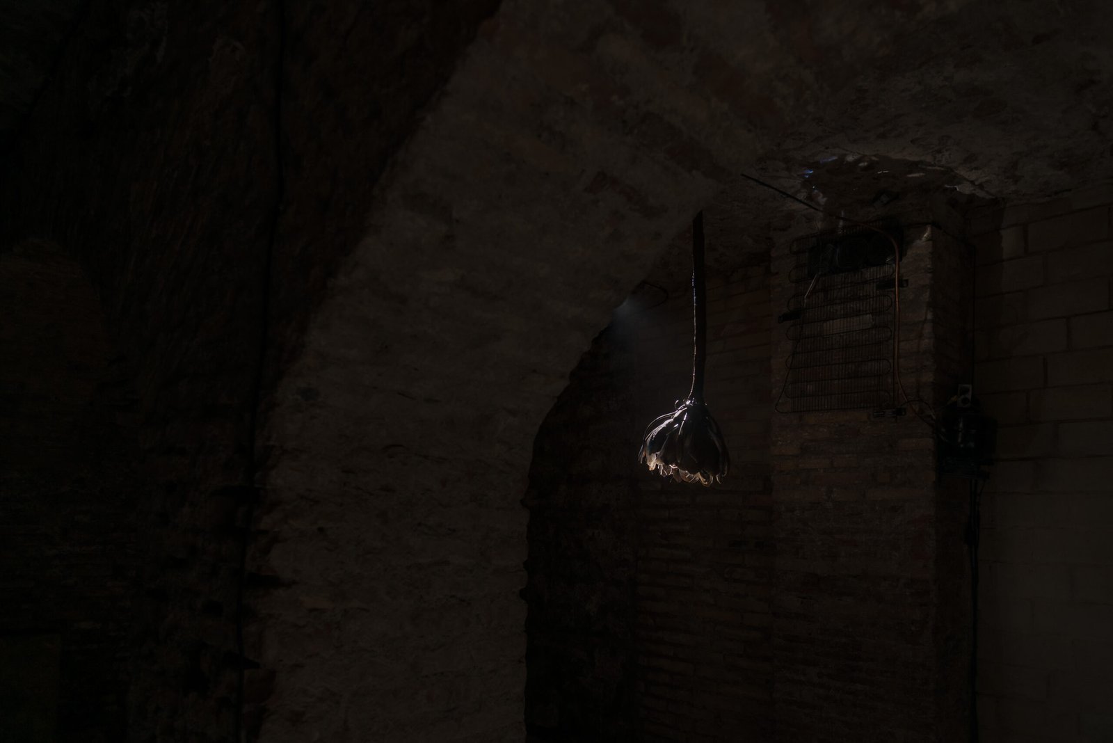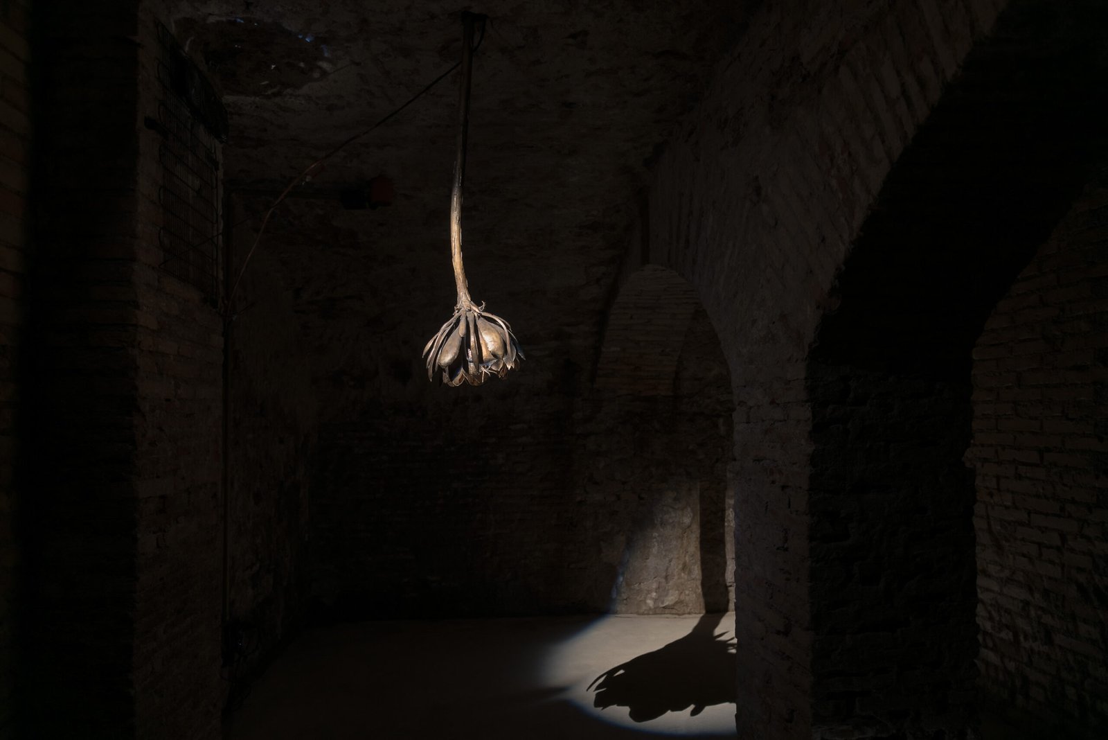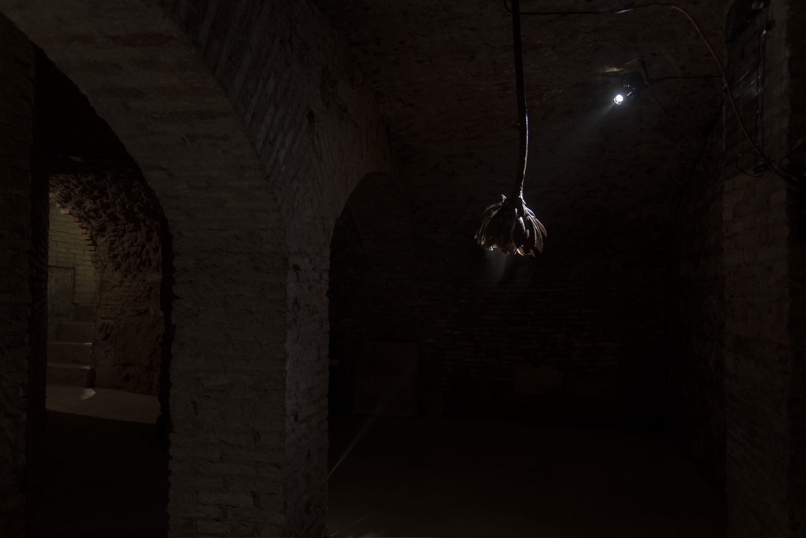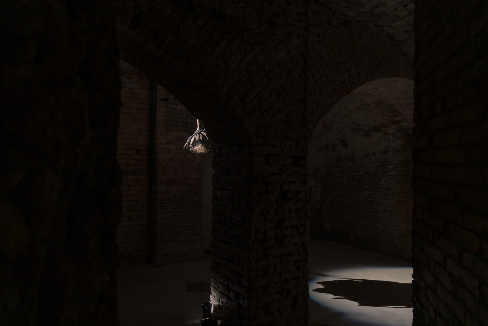 The second work installed in the crypt, Along the Weight I Have Lost (2025), is inspired by the humid