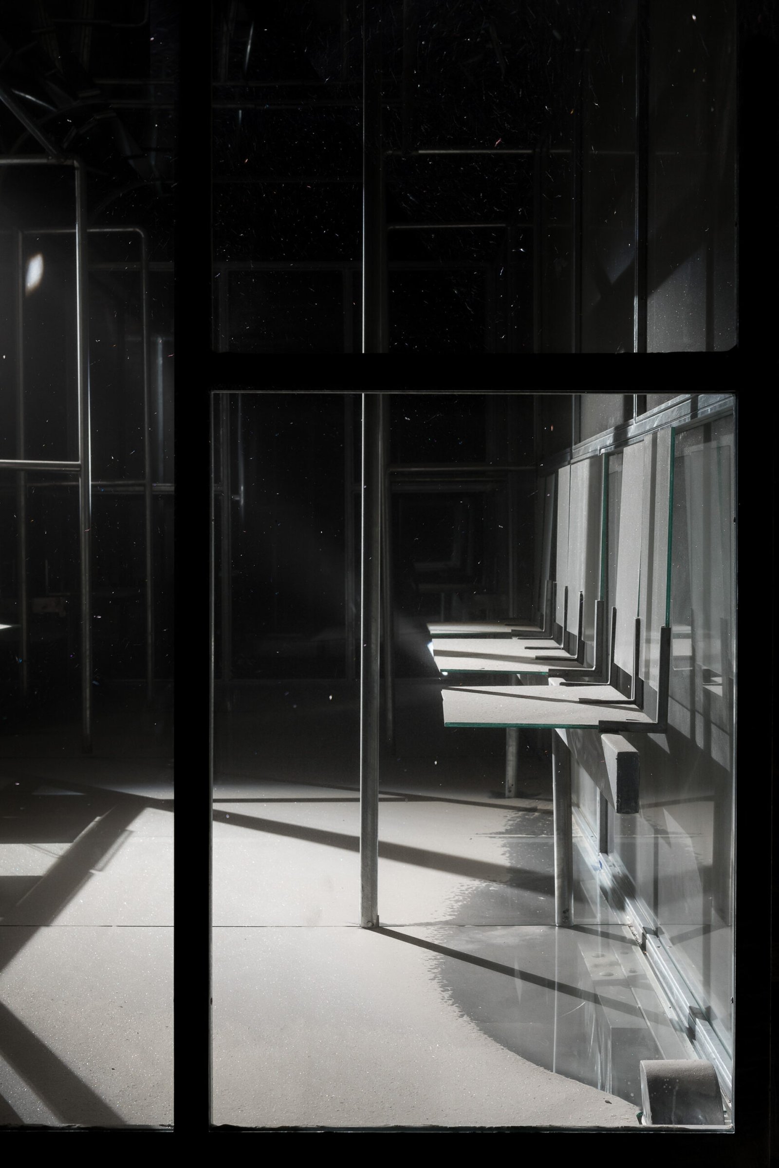 then begins to drip, evoking a path to be crossed, like a machine that freezes fate. The form of the work