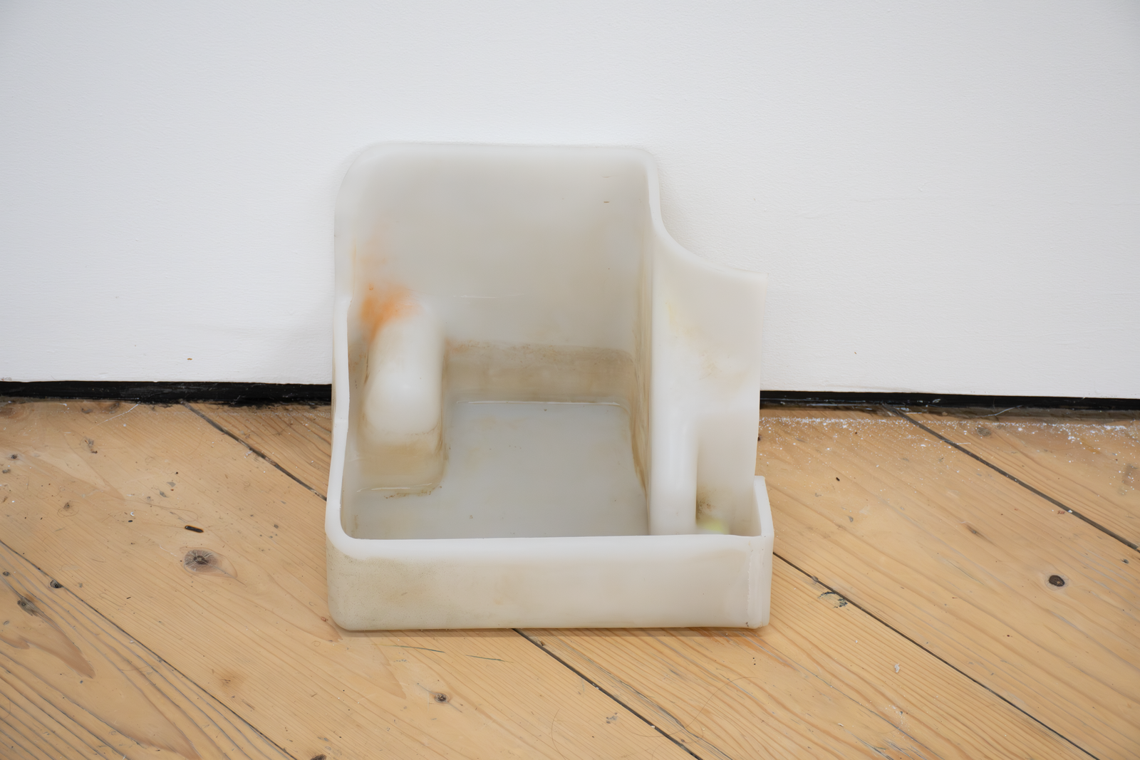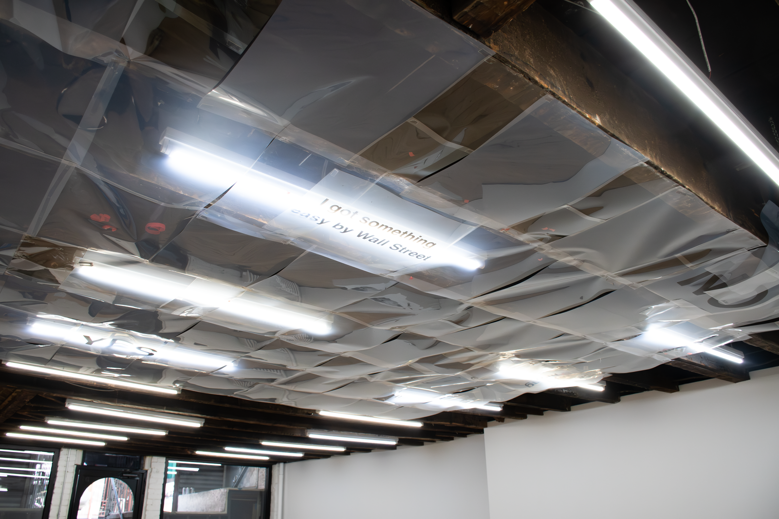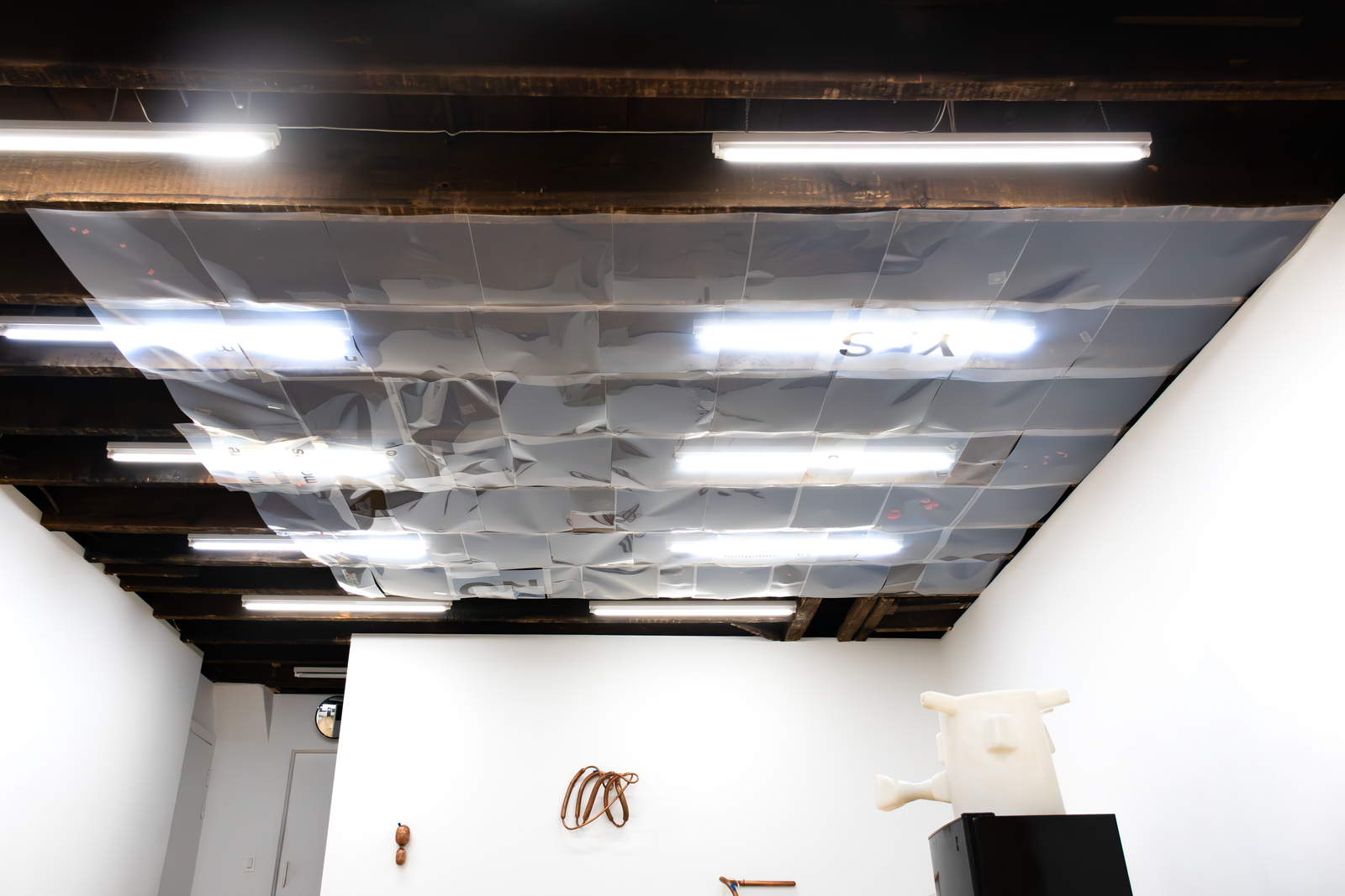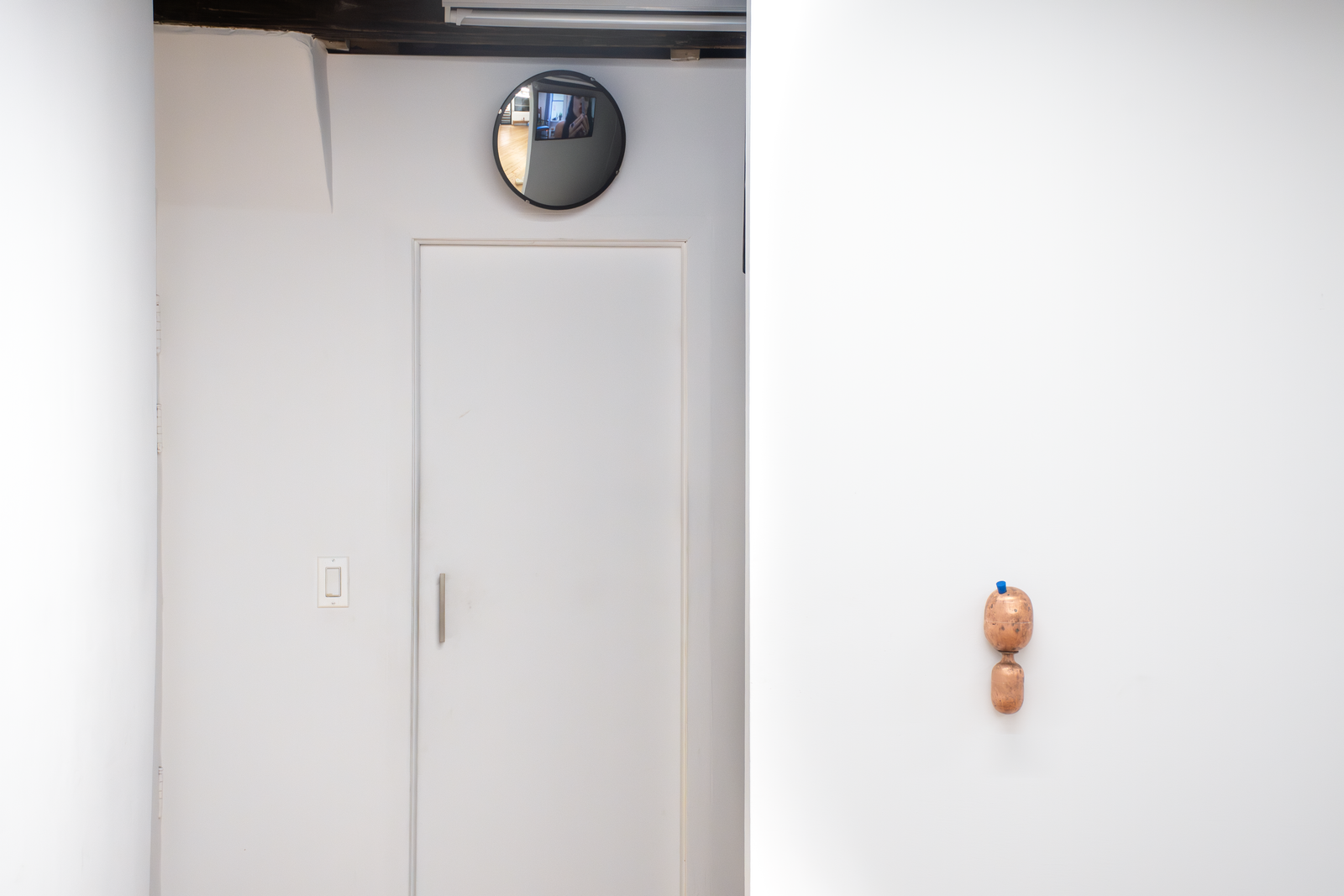 substation and the underground Cooper Square network feeder to a transformer under Henry street, the 24 Rutgers service meter, and a Foreign & Domestic outlet. Connected to this outlet, an air conditioner’s internal condensing coils turn the breath of a woman in the gallery into water. It trickles into a bucket weighing down a Coagulator.