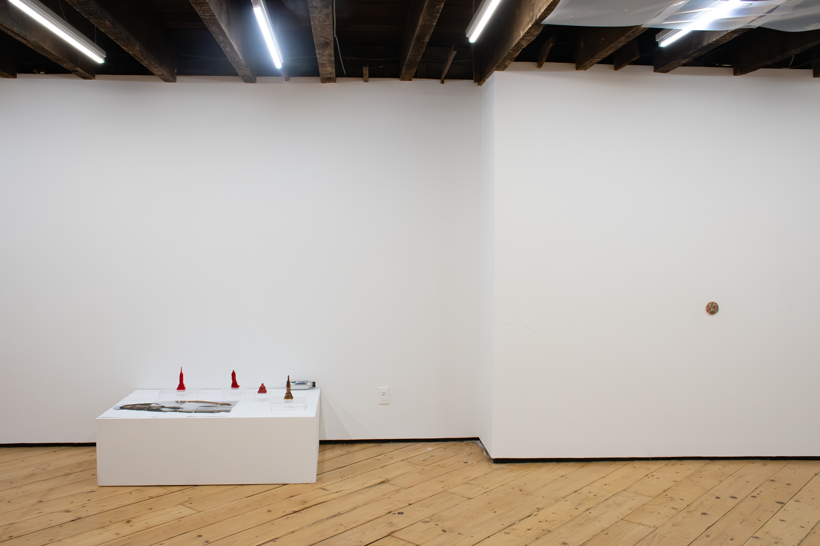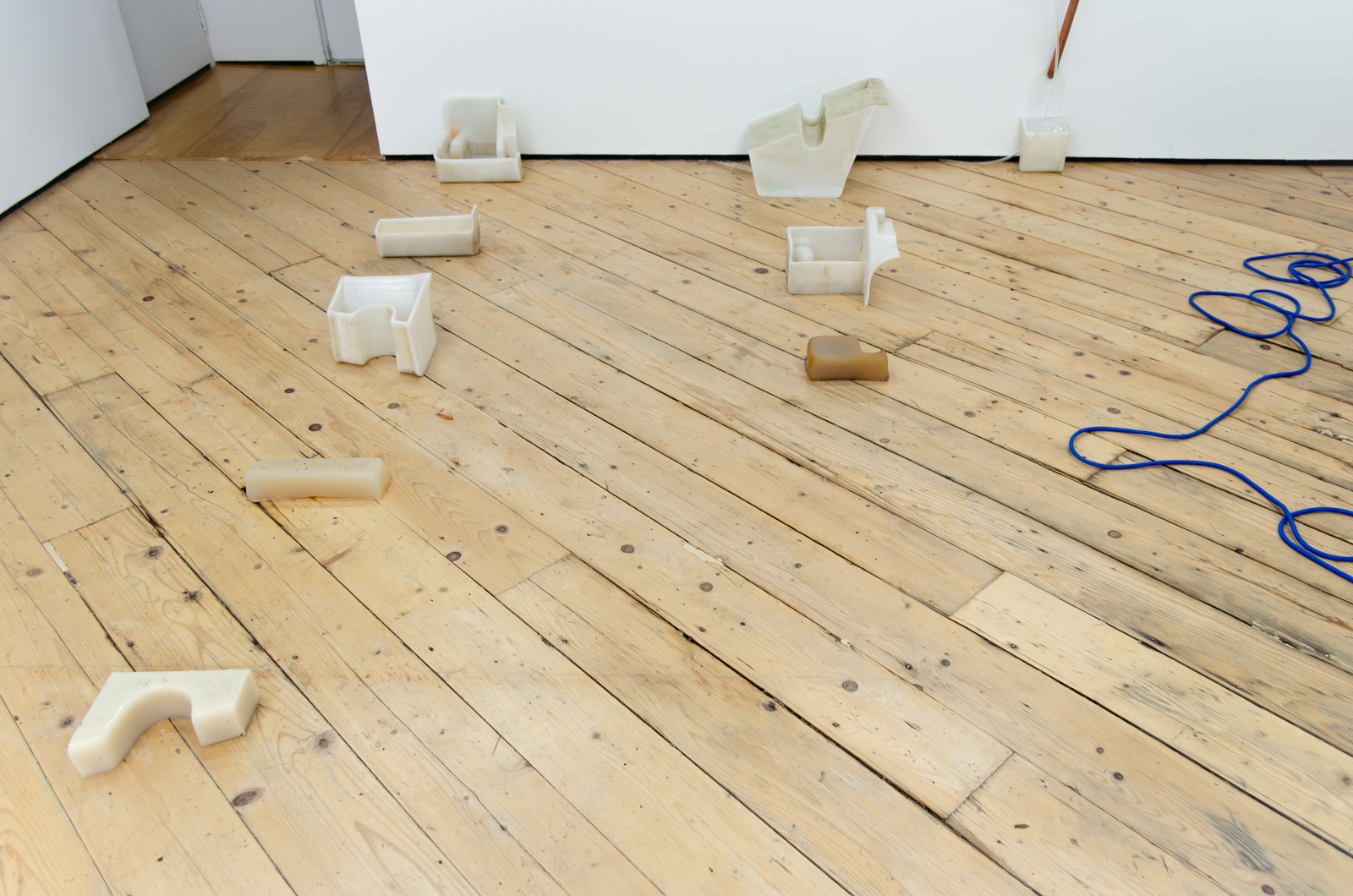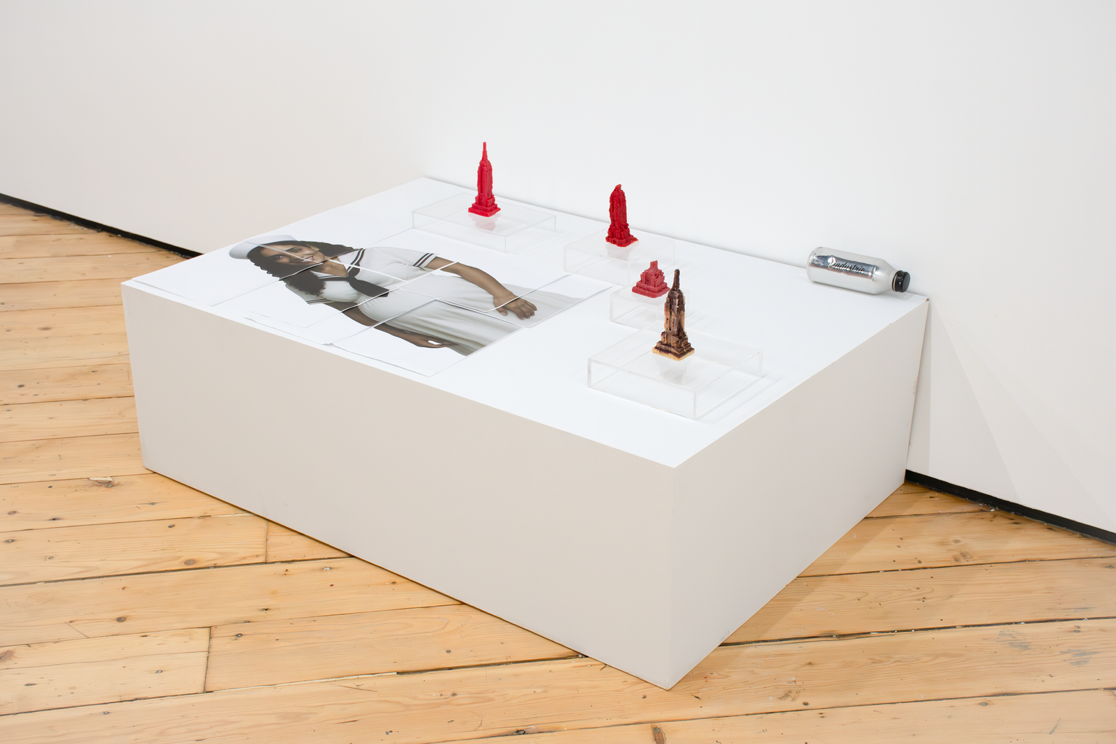 Both artists in Amenities attempt to slow down infrastructure by placing the human body in-between infrastructure and its functions. Zurita’s action of kissing a miniature Empire State Building infantilizes an iconic building while caring for it. By kissing it, she establishes a desire to incorporate it within herself; similar to the hosting of life. In Iribarren Vazquez’s system of Coagulators and Cooling Units’, bodily actions like breathing become material that generates new matter. In Amenities, we find edible sculptures: a chocolate cast of a miniature Empire State Building and cast gelatin made of human breath. Both sculptures are meant to be eaten, the act of eating becomes the last gesture of incorporation.