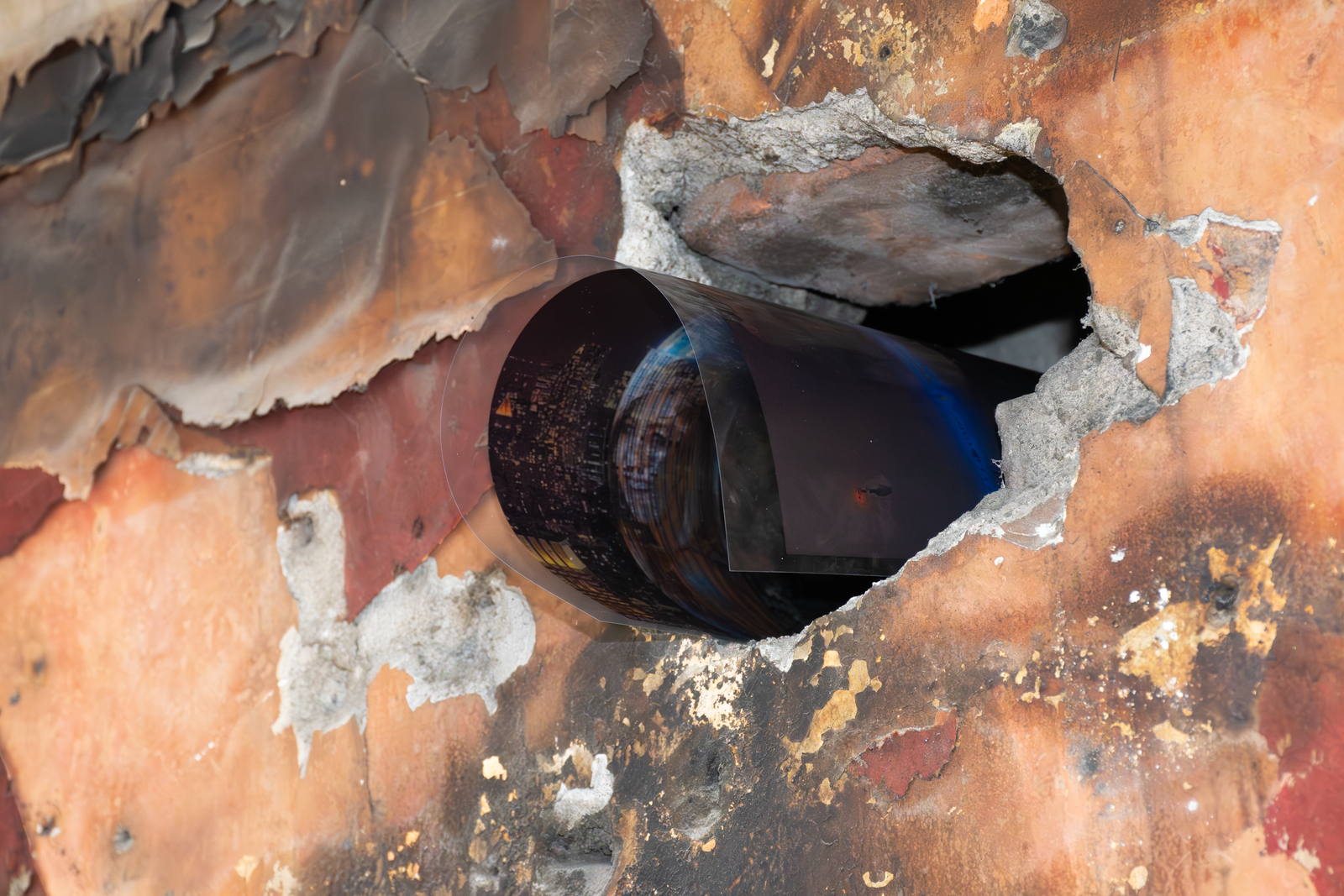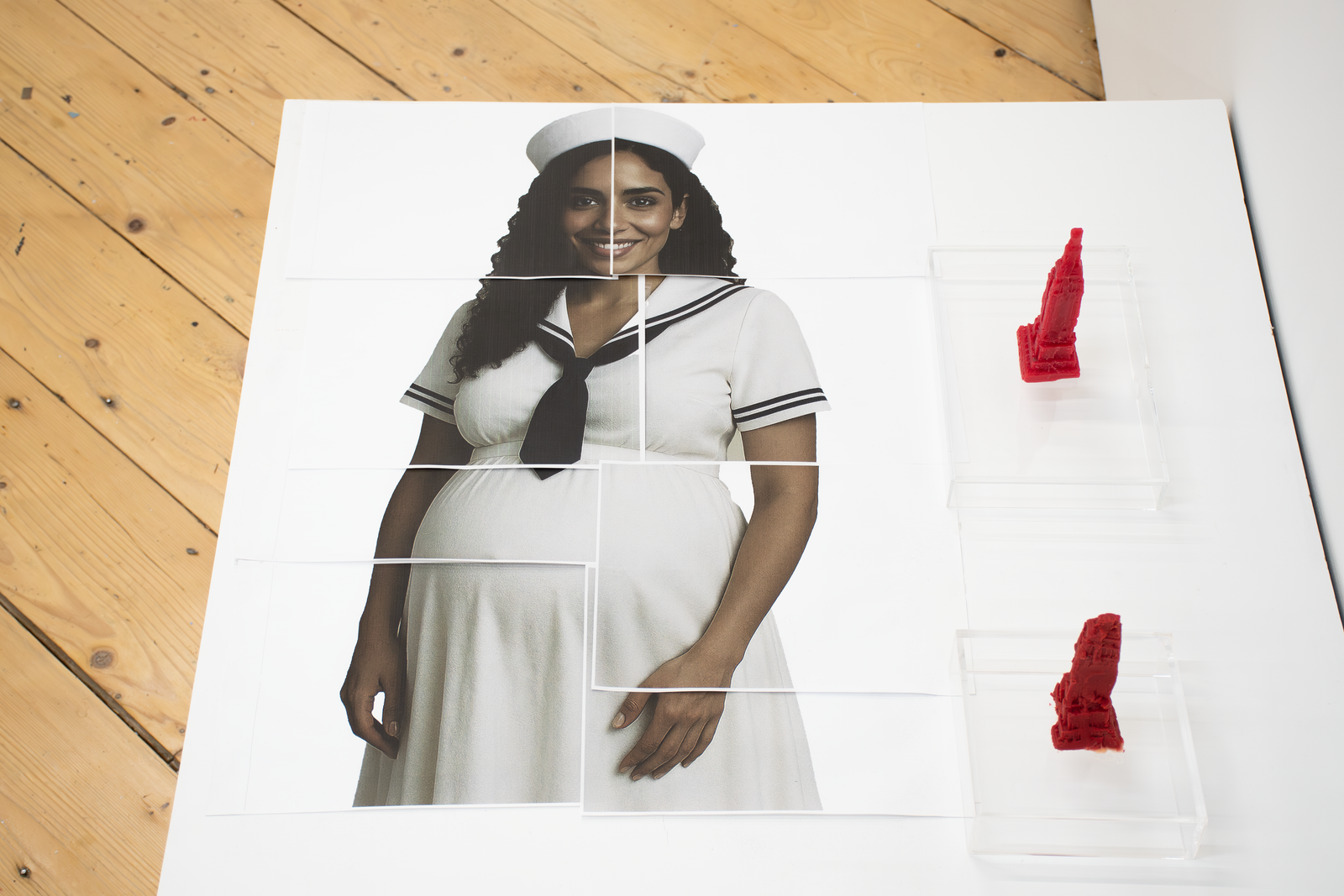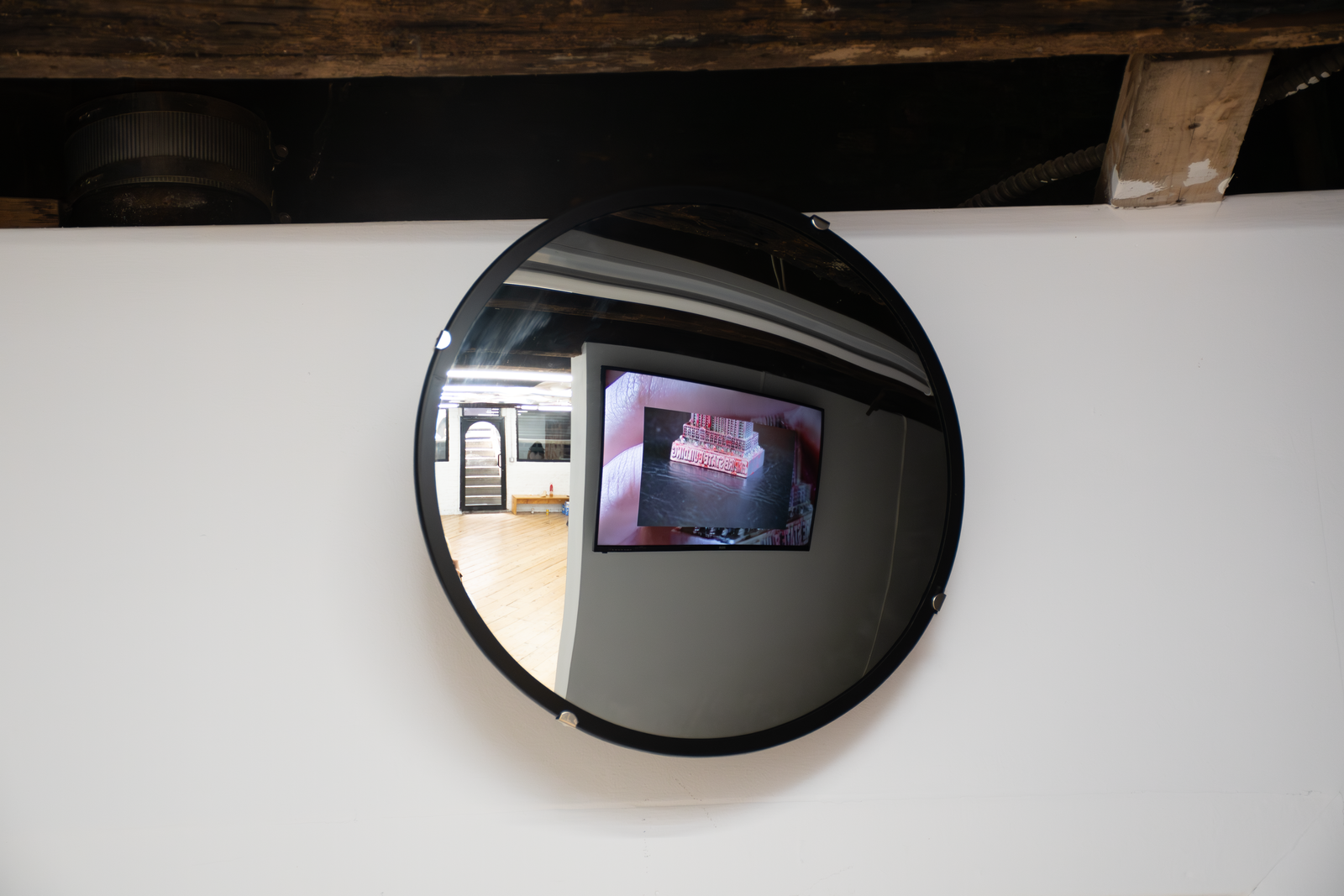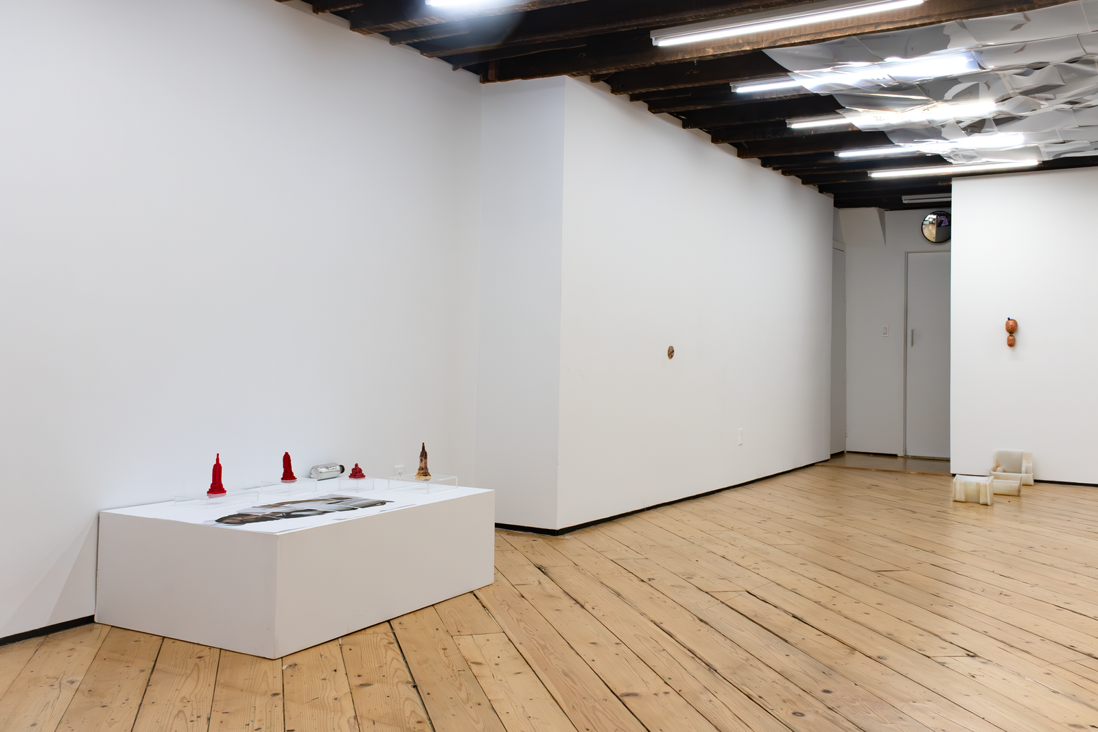 Both artists in Amenities attempt to slow down infrastructure by placing the human body in-between infrastructure and its functions. Zurita’s action of kissing a miniature Empire State Building infantilizes an iconic building while caring for it. By kissing it, she establishes a desire to incorporate it within herself; similar to the hosting of life. In Iribarren Vazquez’s system of Coagulators and Cooling Units’, bodily actions like breathing become material that generates new matter. In Amenities, we find edible sculptures: a chocolate cast of a miniature Empire State Building and cast gelatin made of human breath. Both sculptures are meant to be eaten, the act of eating becomes the last gesture of incorporation.