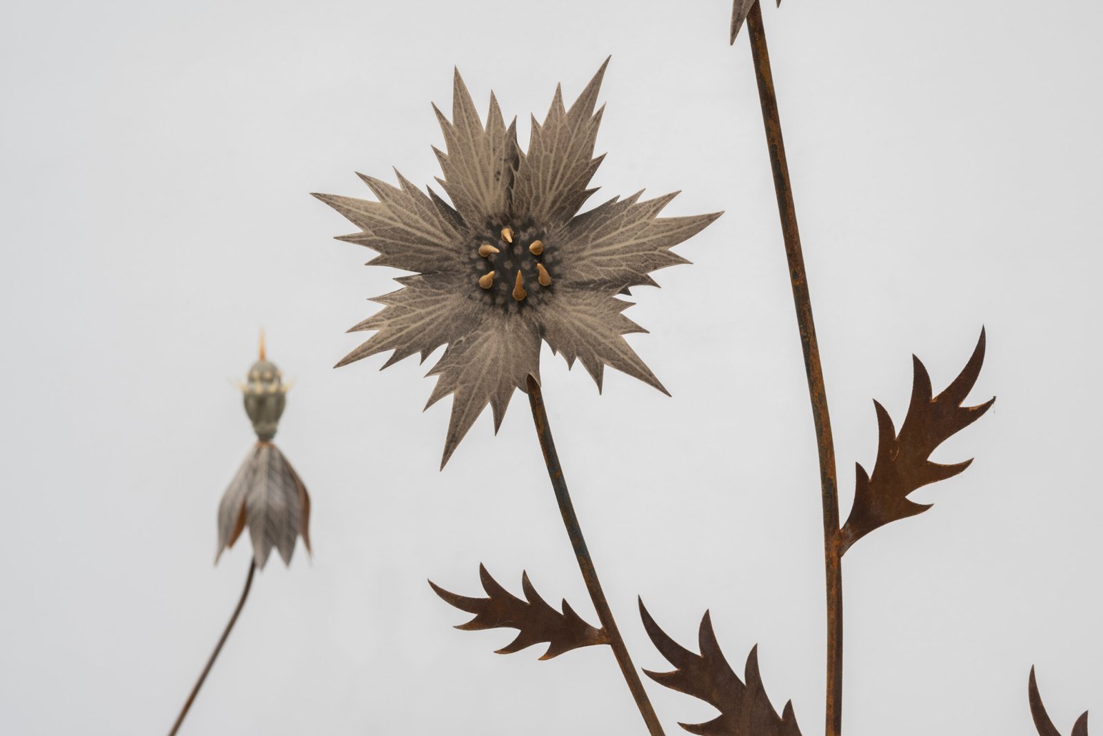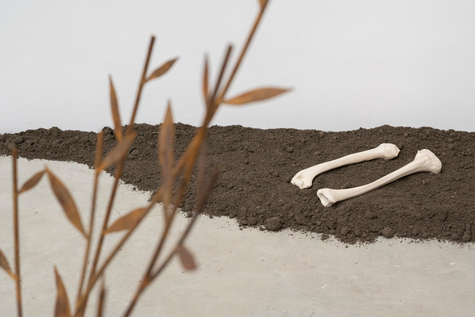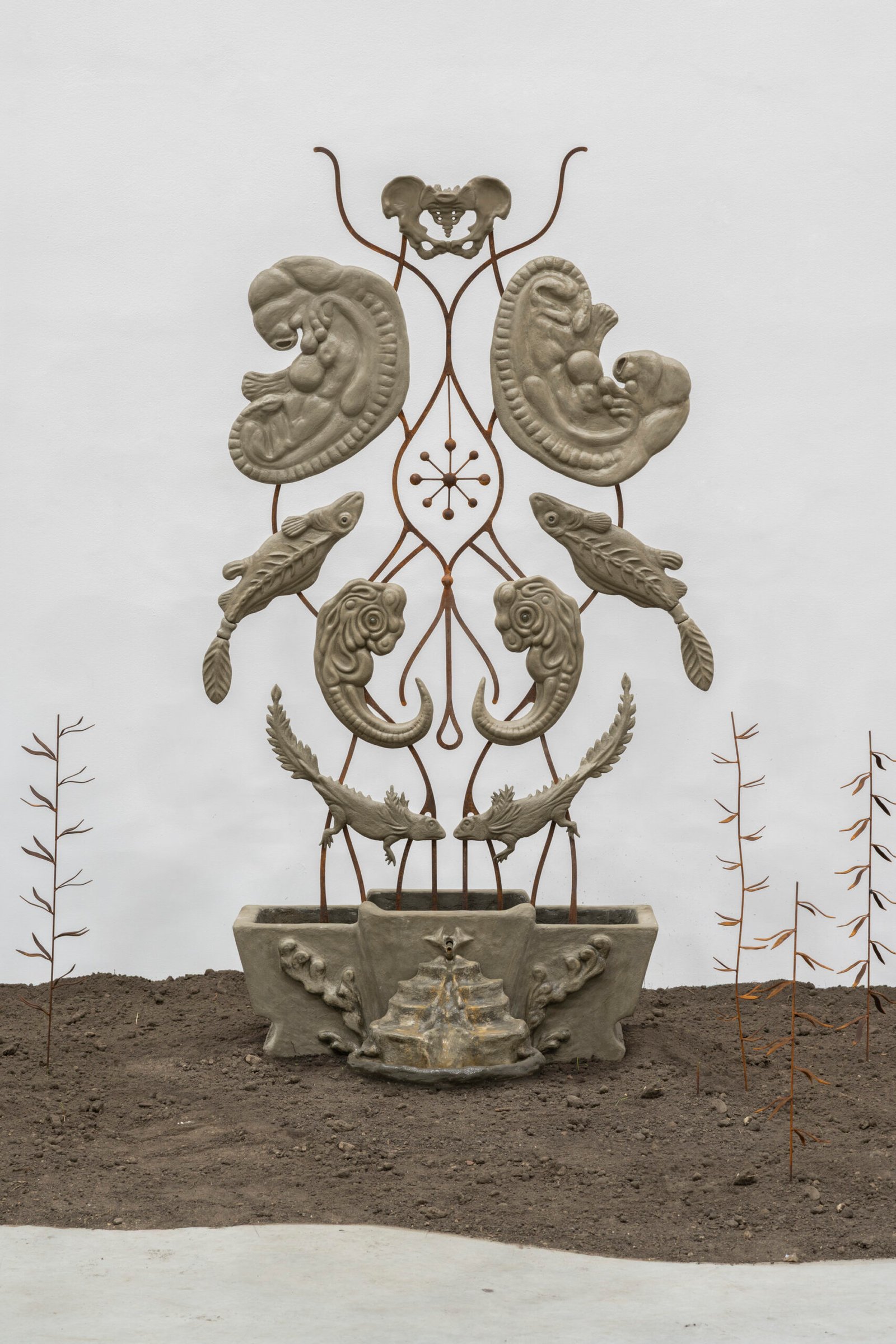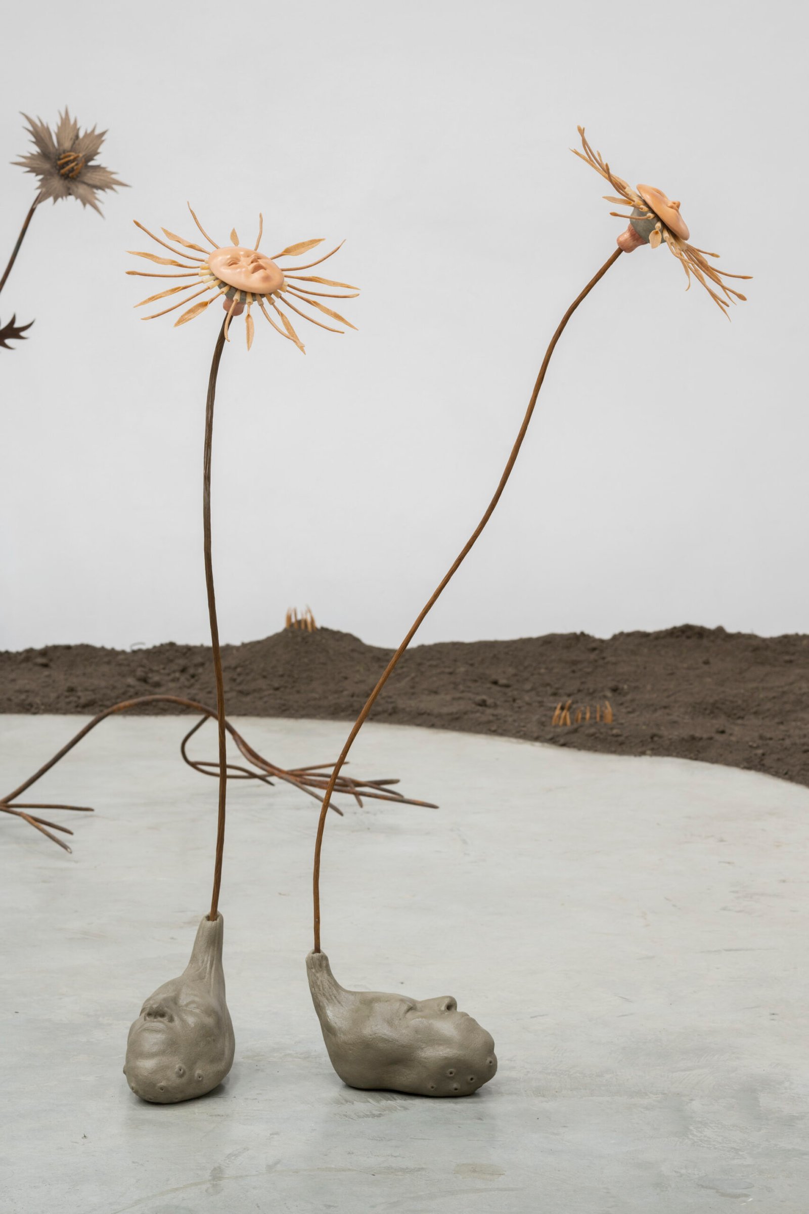 “The inspiration for this landscape-like site-specific installation was Hany Istók, a child found in the Hanság marshes in 1749, who features in many Hungarian legends. The few surviving records indicate that the naked boy, who could not speak, was perfectly at home in the aquatic world around the lake. He could swim like a fish and ate only grass, raw fish, and frogs. Fishermen took him to Kapuvár Castle, where the “wild” eight-year-old boy was dressed and baptized. Attempts were made to teach him to speak, but without success. The circumstances of the boy’s later disappearance remain as mysterious as his origins. According to the most popular version of the story, Hany Istók escaped his cruel “guardians” by jumping into the water and returning to the world from which he came. Over time, more fantastic descriptions appeared, in which he became a fish-man, a frog-boy, an amphibious child, a half-animal with a body covered in scales. The legend can be read as a story of a return to nature, in which Hanság becomes a new paradise. By shedding his clothes, the hero regains his lost identity. Karina Mendreczky and Katalin Kortman Járay fill the space with sculptures of plants and hybrid human-plant figures. Responding to the contemporary climate catastrophe, the artists create a fantastical setting that questions the division between the civilized and the barbaric.”
