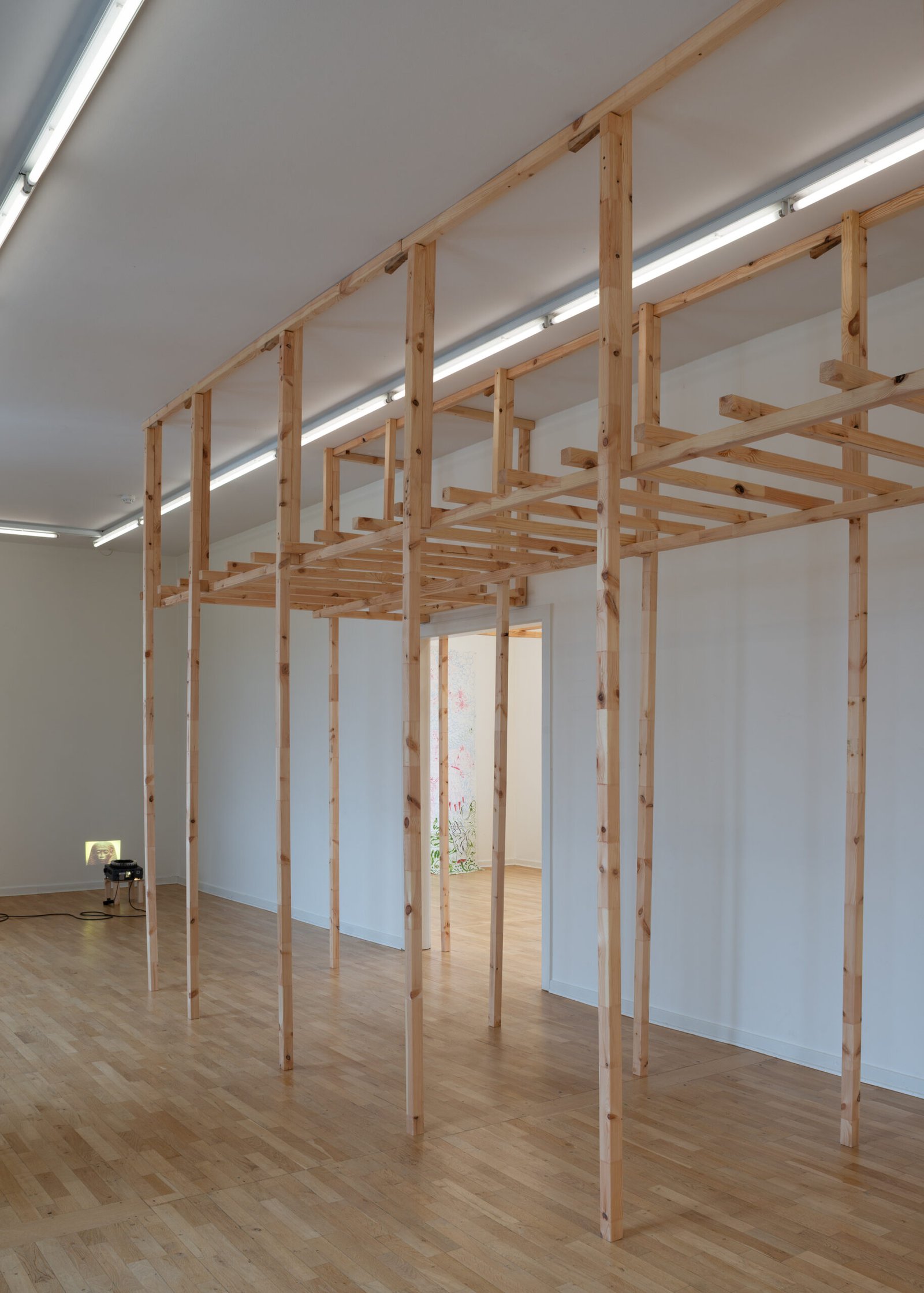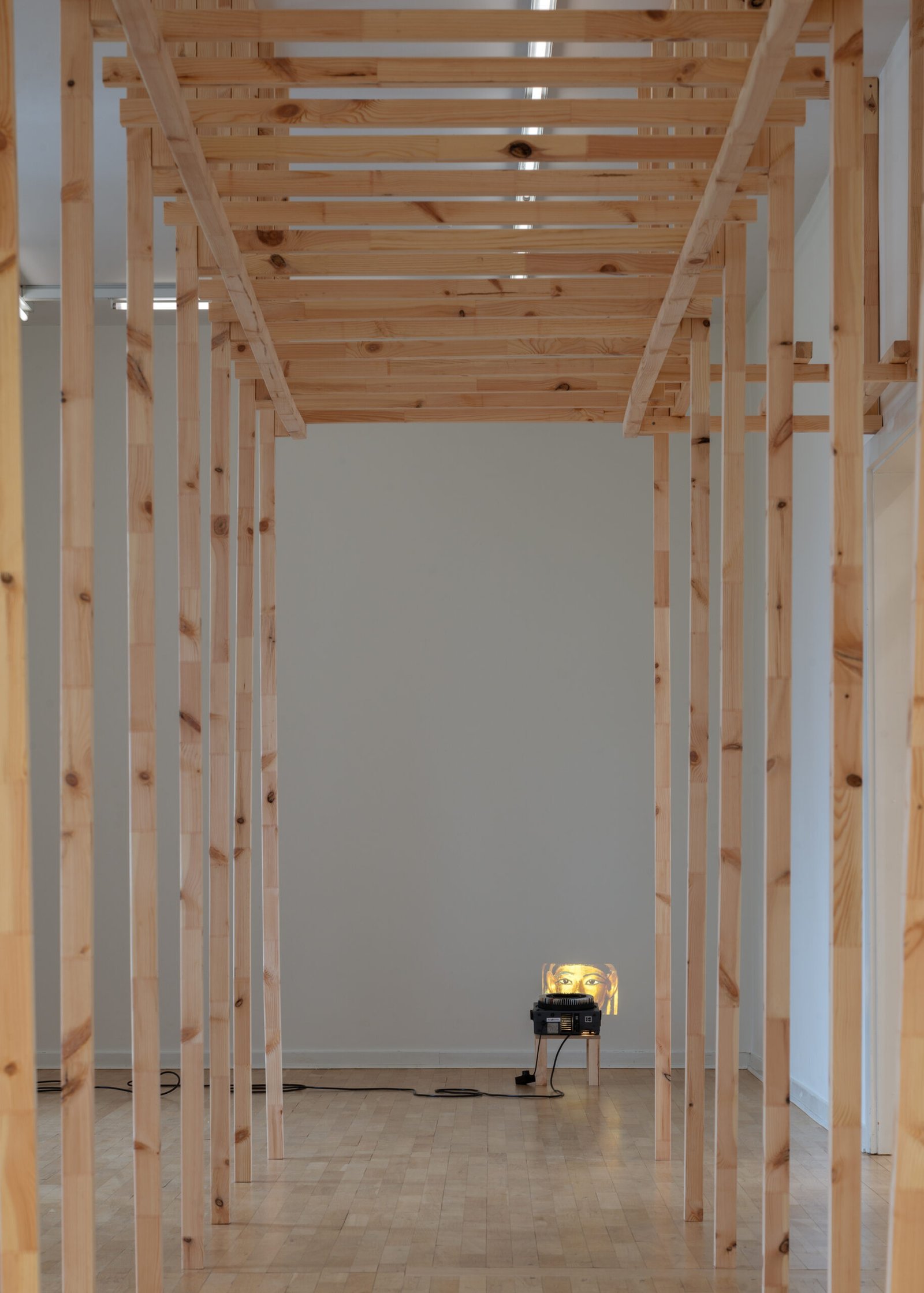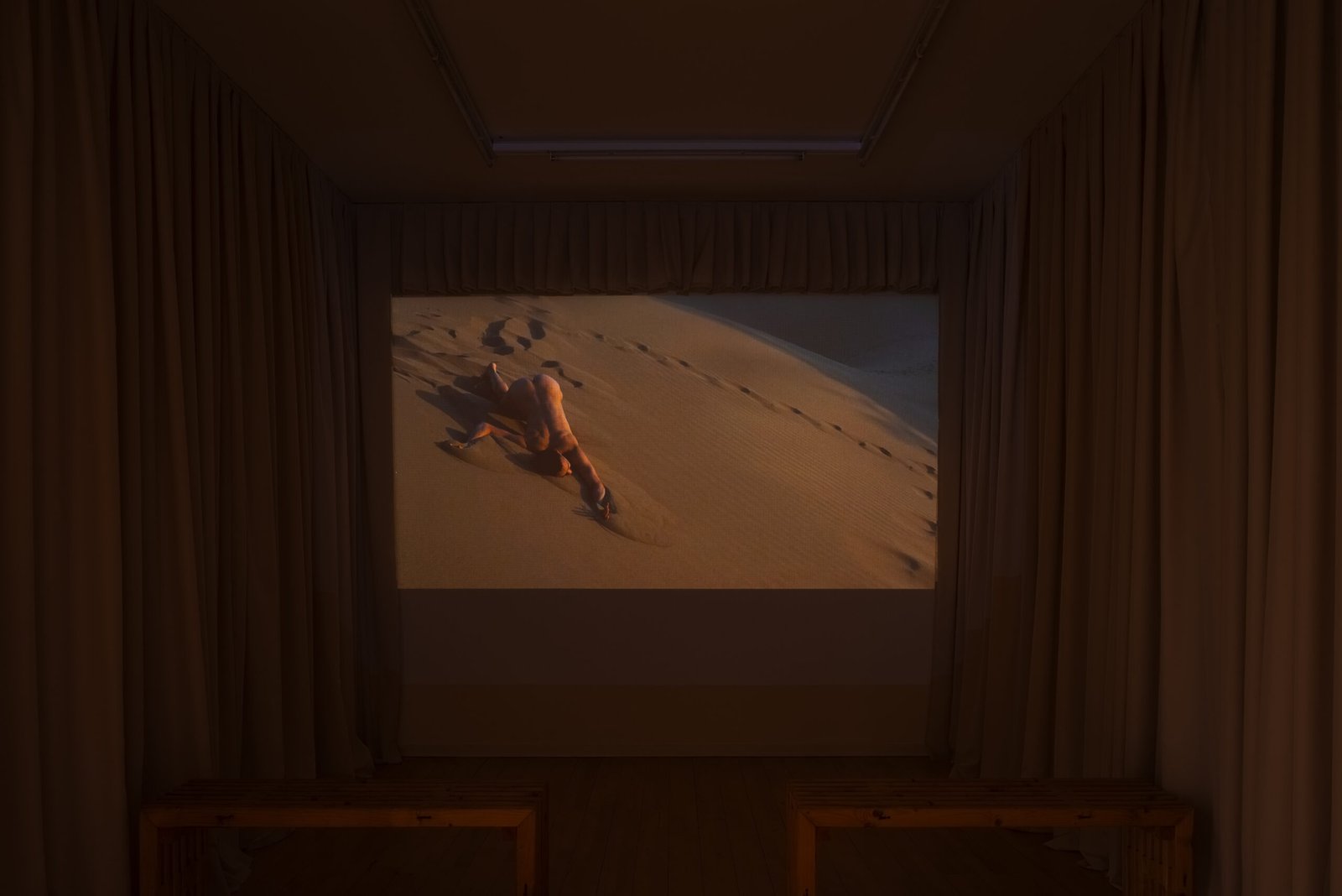 Positioned low and intimate, the projection resembles both cinema and shelter, less symbolic than atmospheric, a trace of lived presence entering the institutional interior. Rather than resolving into a story, the exhibition operates as a constellation: a suspension of bodies, spaces, and histories that coexist without hierarchy, where the gallery becomes at once architecture, landscape, and memory.