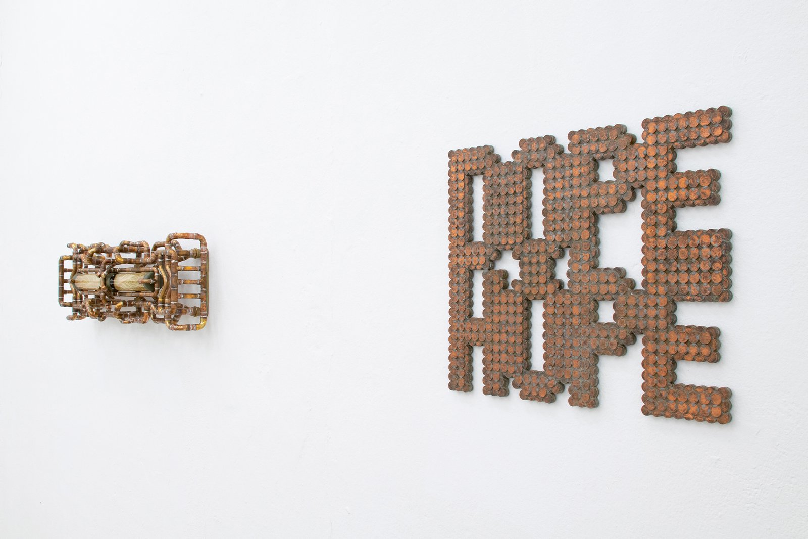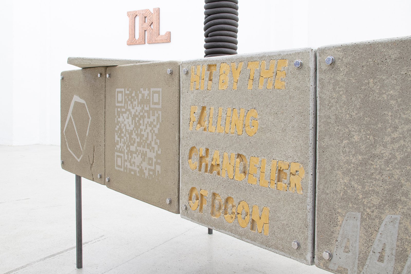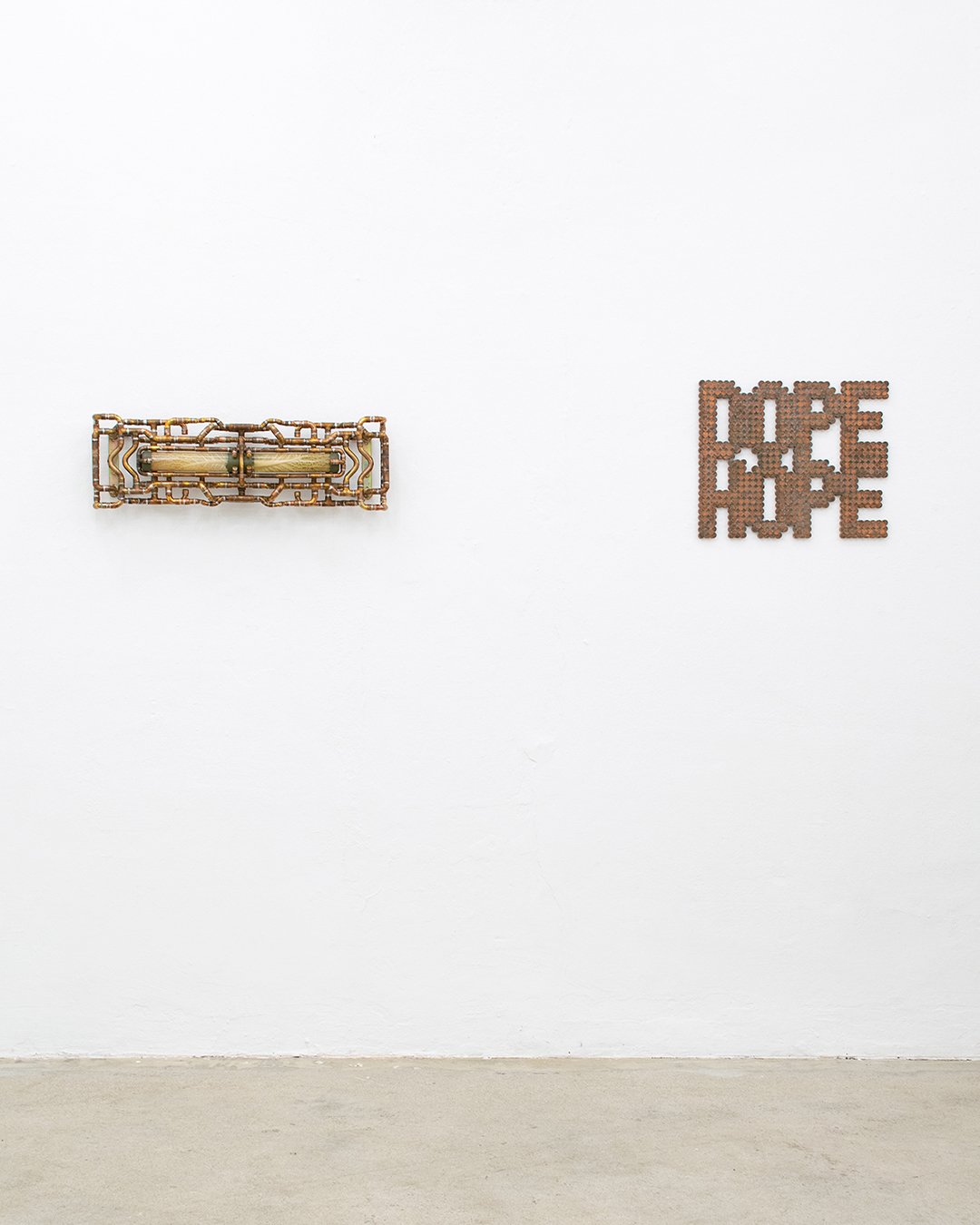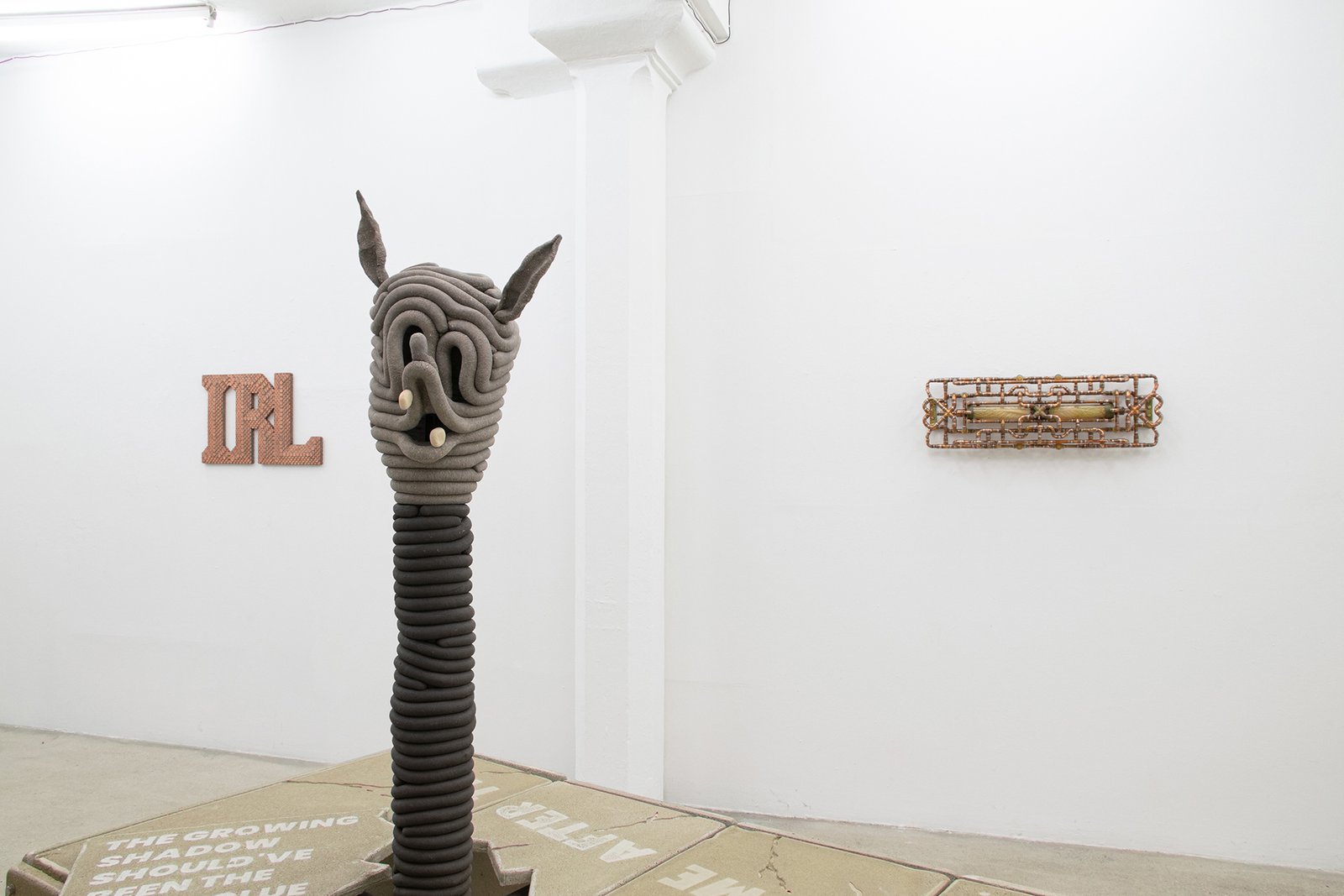 Beside the real life exhibition, there was an intentionally installed surveillance system of four cameras to also give a filtered reality version of the show on screen that could be viewed in the backroom of the gallery.
