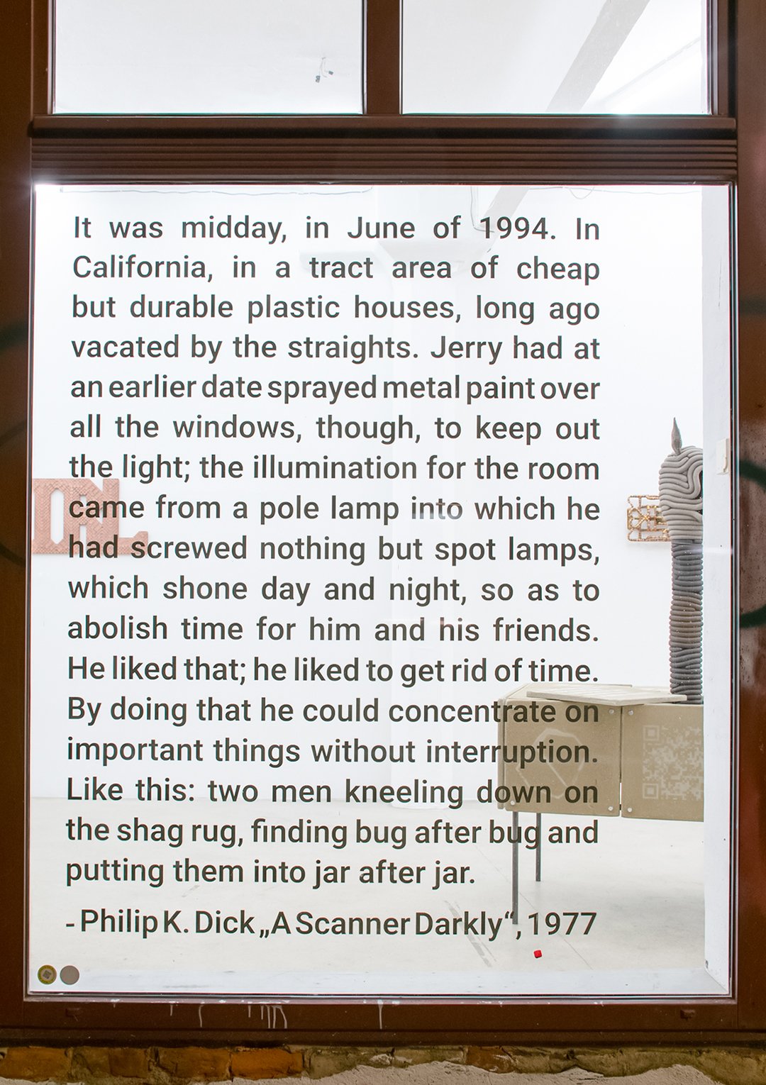 The exibition was accompanied with an excerpt from Philip K. Dick’s novel ‘A Scanner Darkly’