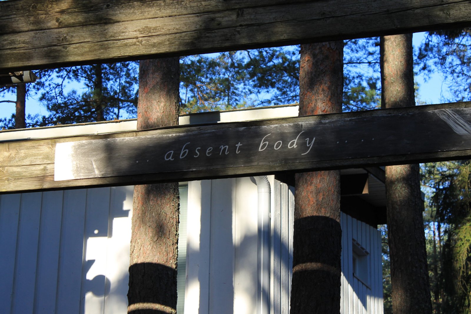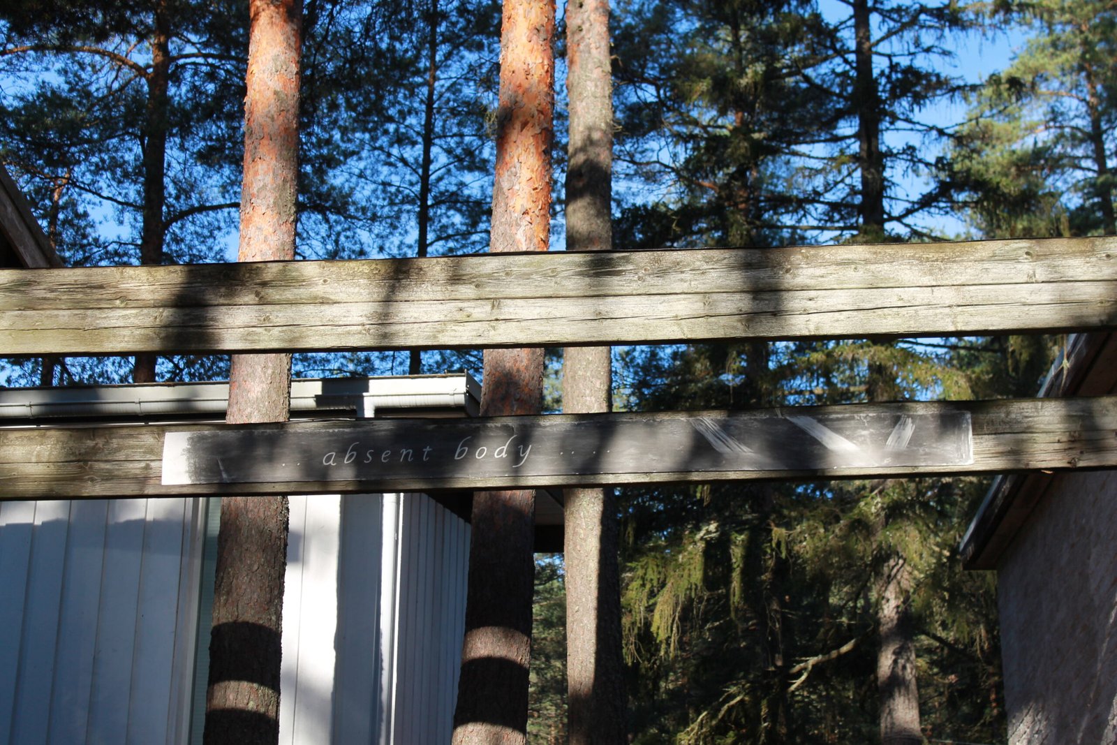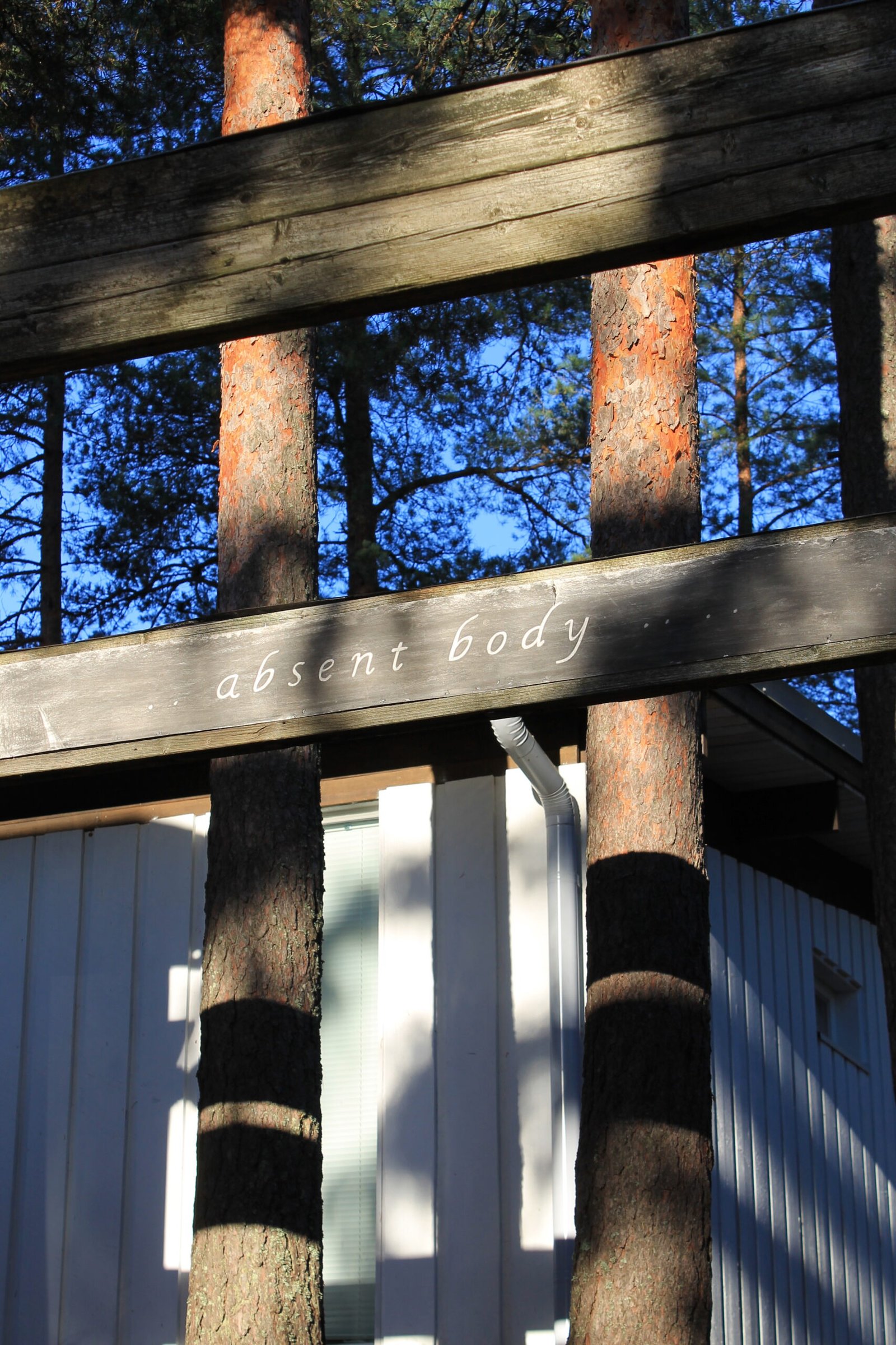 The bodies are displayed in an interplay with the frames of the house’s architecture built with the verticality of the surrounding trees.