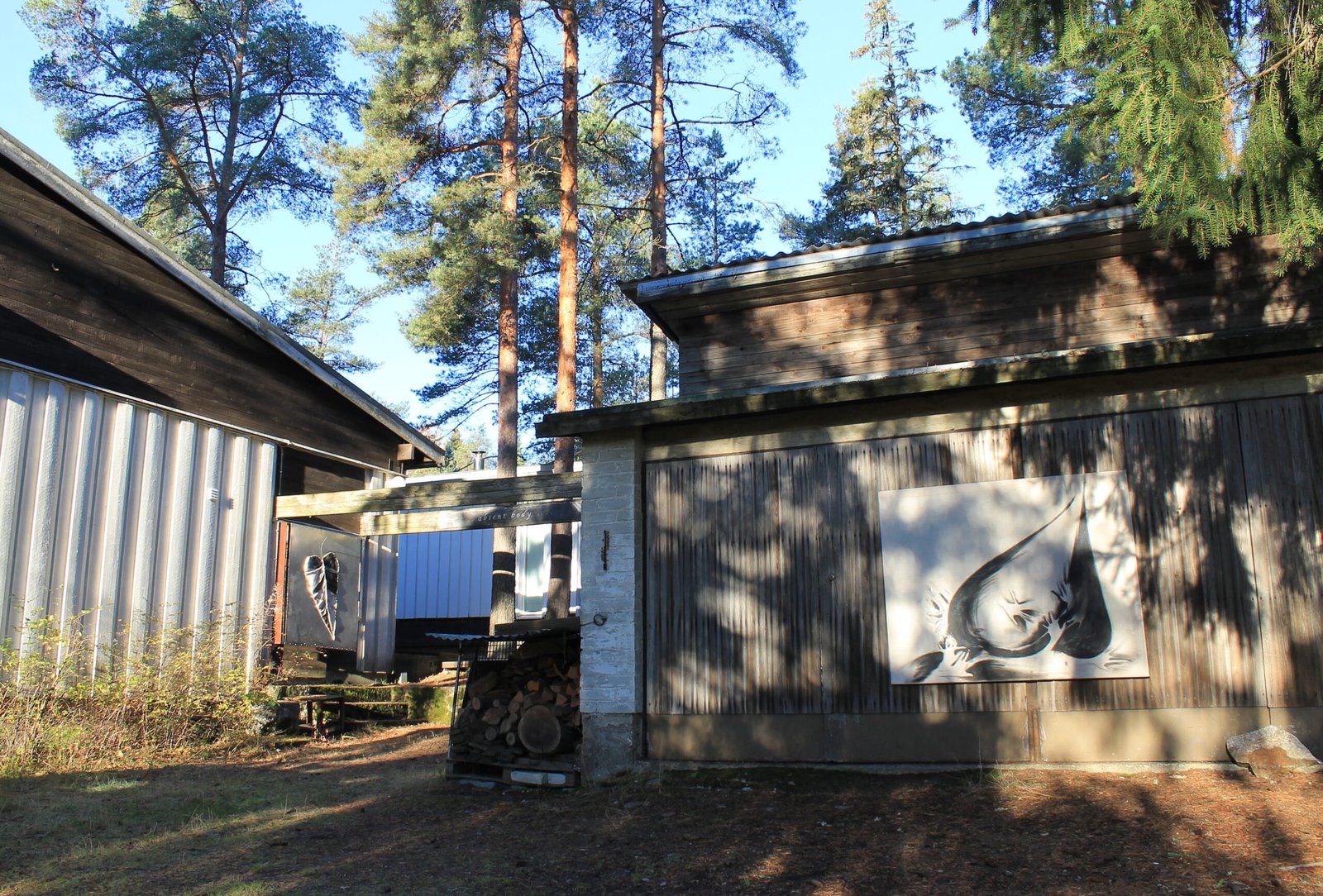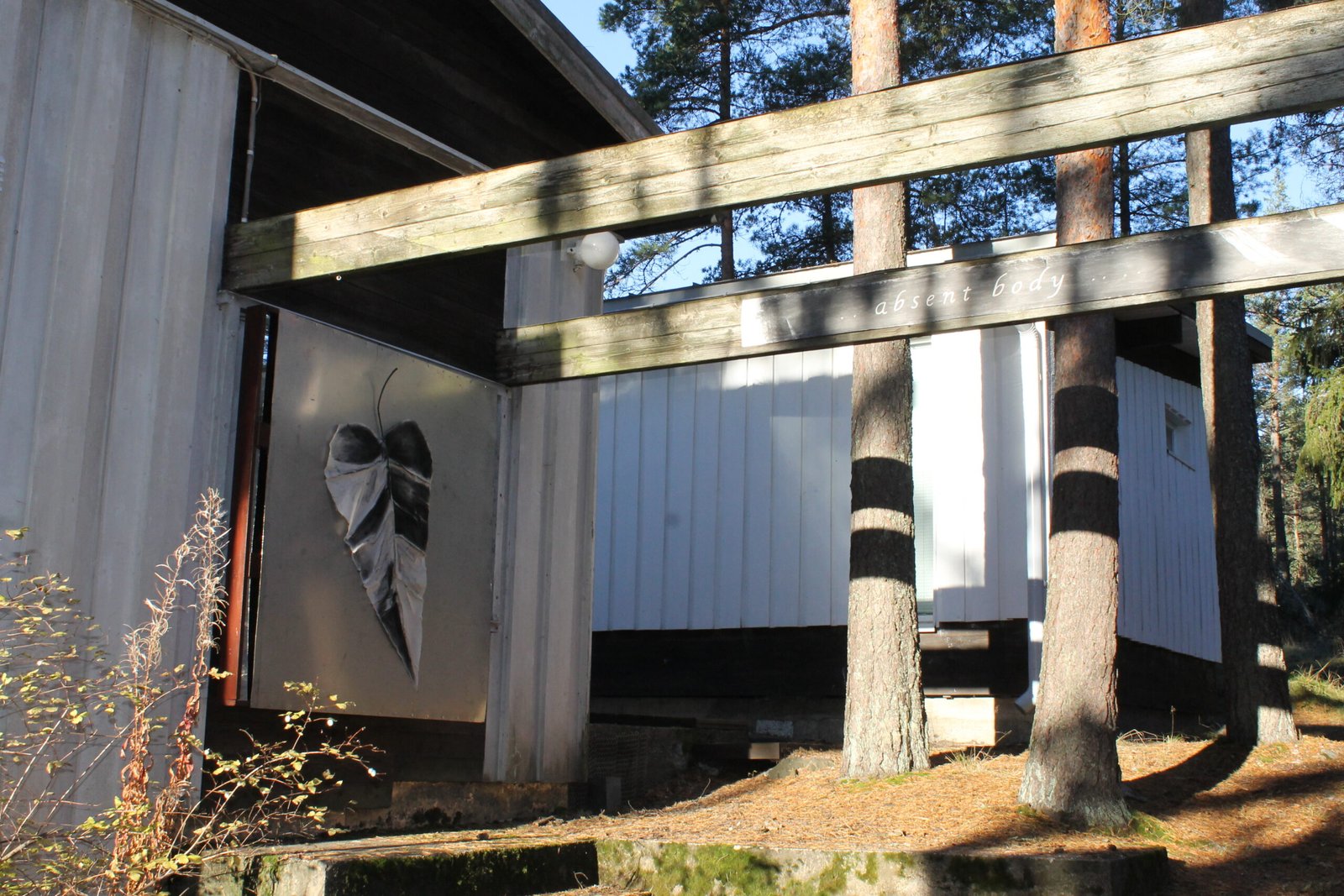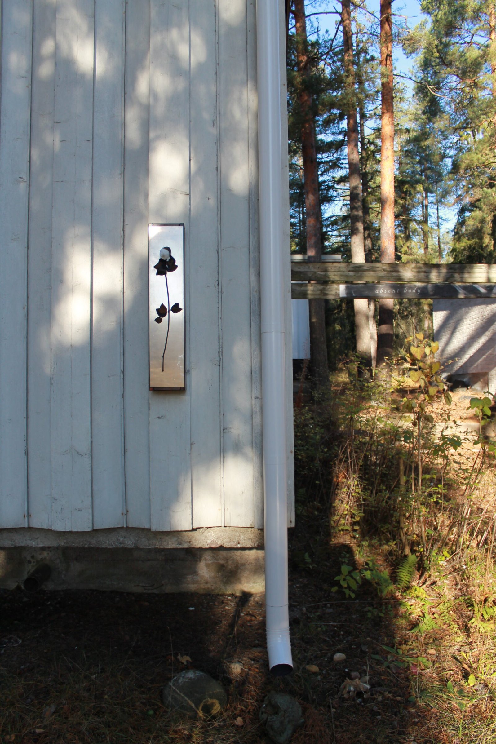 The bodies are displayed in an interplay with the frames of the house’s architecture built with the verticality of the surrounding trees.