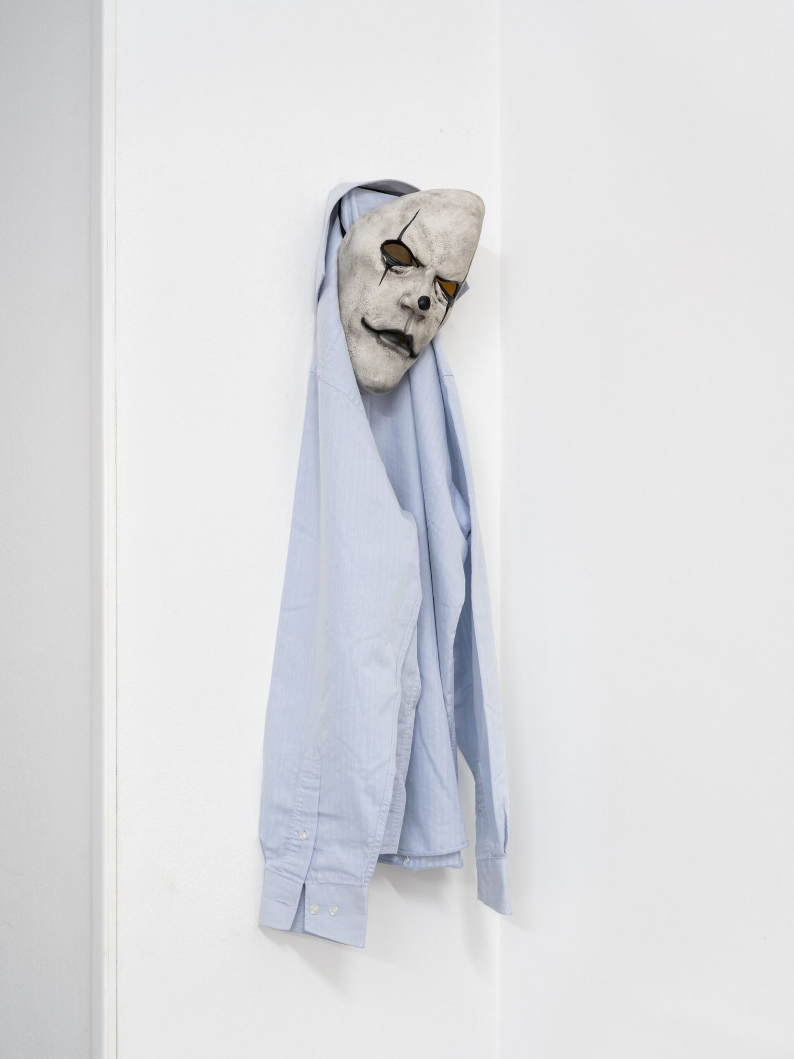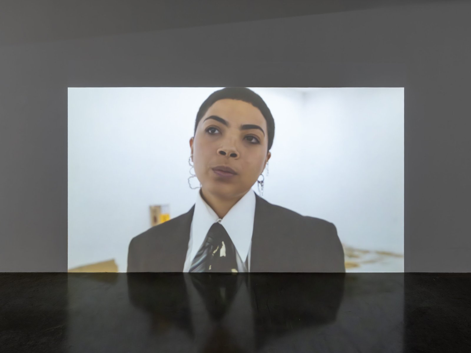 Like the role-playing card castle present in the exhibition, professional life forces us into the balancing acts we must constantly replay or even subvert. The characters discuss the conformity of bodies at work through dress codes. Their own wardrobe allows them to assess and interpret the models embodied by those who employ them. The costumes add to this sense of displacement; they do not fully belong to the characters and contribute to a form of opacity and indeterminacy, a floating space where identity remains unresolved.