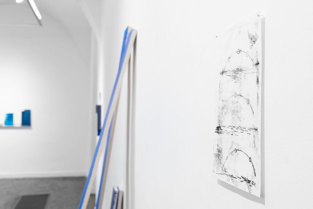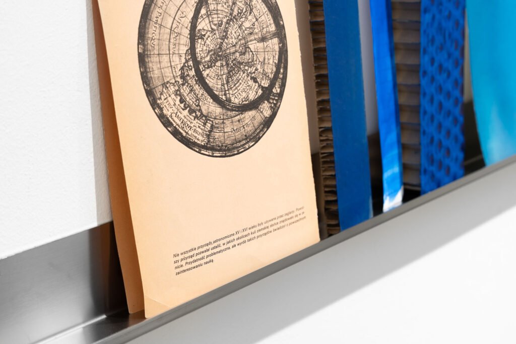 Natalia Czarcińska once again builds her blue universe, presenting paintings and the personal archive intertwined with them within a maritime setting that is close to her heart. It is not the first time she uses subtle nautical metaphors, and yet this time, it is not a story about vast seas and the desire to sail. For years, she has been fascinated by navigation and eagerly references it, just as she finds nautical charts and signal codes inspiring. However, these are more graphic symbols or keywords, literary references that, on dry land, are at best signs of a longing for something more predictable, though not entirely so. Evoking concepts from the world of sea travel is an attempt to “tame” everyday uncertainty through the precision and constancy attributed, for example, to pilotage, which, as a set of regulations and rules of conduct at sea, provides the illusion of safety. It also evokes a sentiment for navigation as a field based on mathematical calculations that save sailors and, one would like, are equally effective in everyday existence, where navigation remains a valuable metaphor for overcoming difficulties.