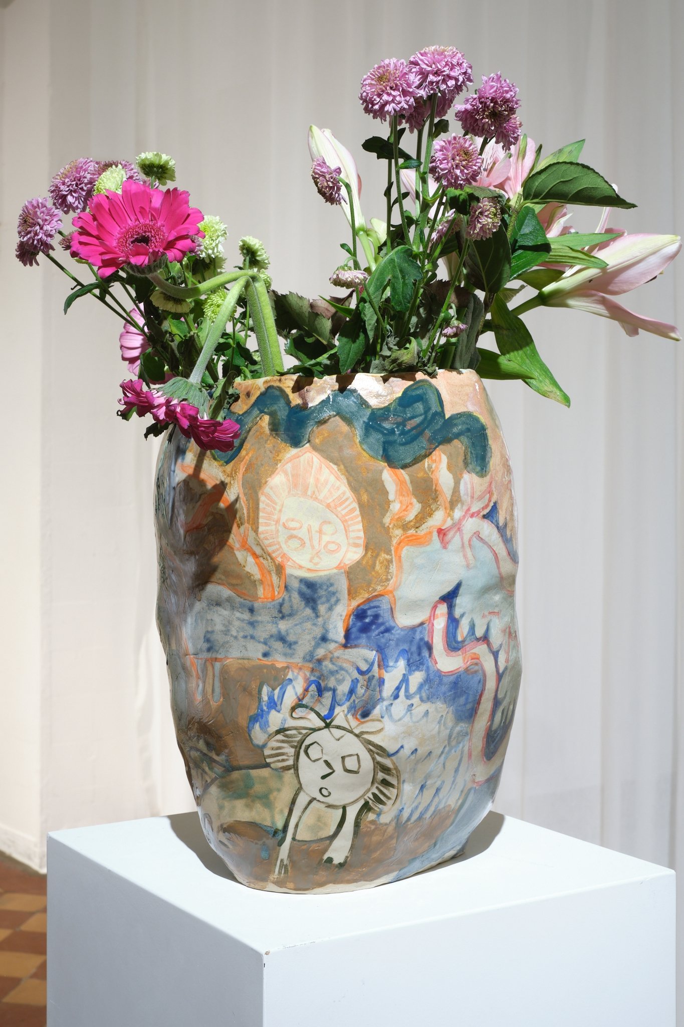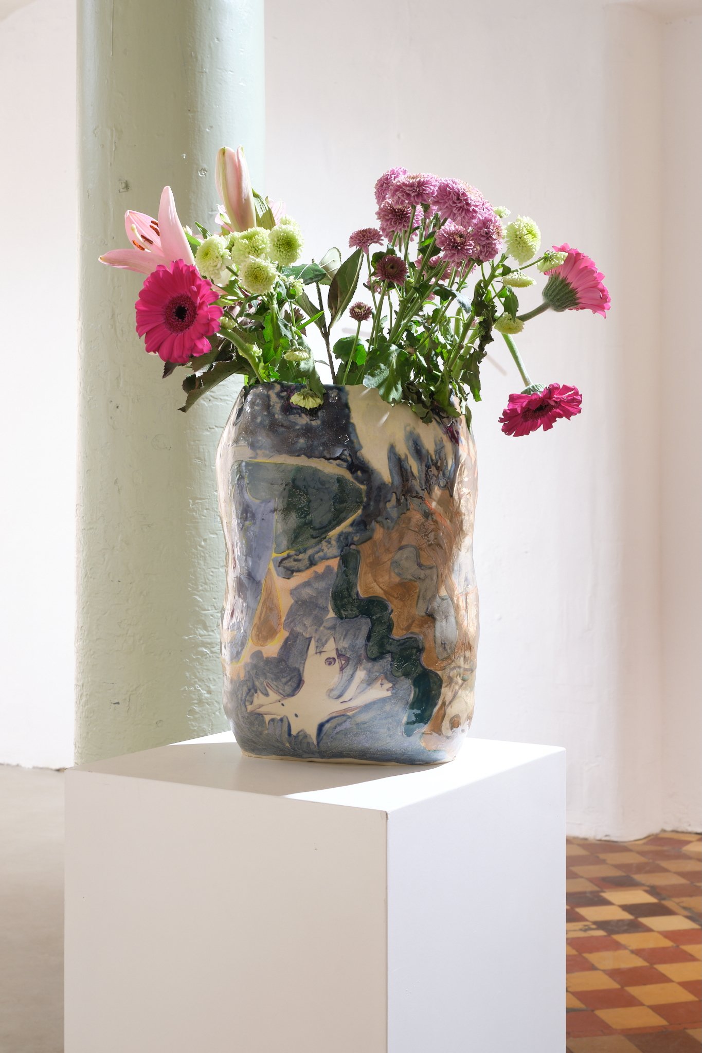 Sara Gassmann’s vessels, which are both paintings and objects, also exist between formation and deformation. A vessel is shaped by its contents just as much as the contents are shaped by the vessel. The vases also function here as an archive that preserves thoughts, impressions, and experiences. Carrier or memories.