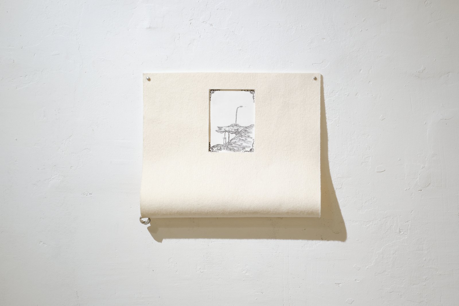 Each of the positions we encounter in DREAMSWORK has a different approach to this very shift, which we encounter not only in dreams, but which we usually overlook when awake: In the title of Camillo Paravicini’s painting alone, we encounter a use of words that only at second glance reveals that they subtly subvert familiar idioms: “A doctor a day keeps the apple away.” Liminal poetry. Landscapes, grimaces, and figures repeatedly emerge from his surreal-looking paintings, only to disappear again just as quickly as they appeared. As with a picture puzzle, viewers see primarily what they want to see—each viewer gives what they see a specific meaning based on their own constitution and experience, which, like a dream, can evaporate at any moment. It lingers like a synesthetic memory on the tongue, which can still be tasted but is difficult to grasp in words. Lizzy Ellbrück’s work makes the corner of the room the object of observation—the corner that can only ever be viewed from one side, and around which one can therefore never walk. Does the corner also have a back side? And why is it always that corner where the daily house dust lands, most of which, as we know, consists of skin particles from the inhabitants of that house? She herself describes it this way: “It is where the unconscious lingers. It is the edge of a space, the limit of perception – yet, within its confines, entire worlds may unfold.”