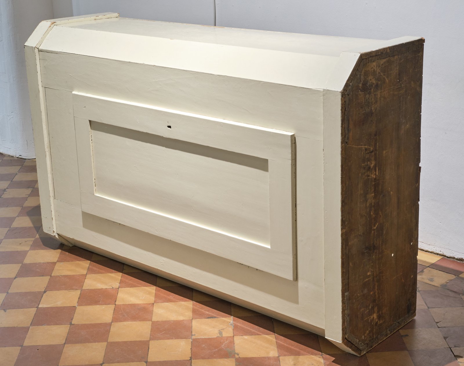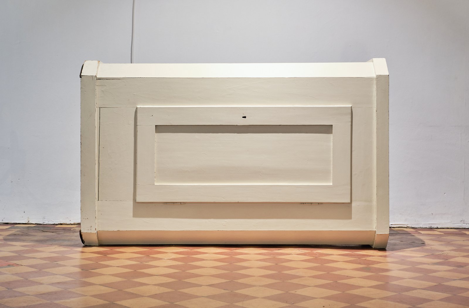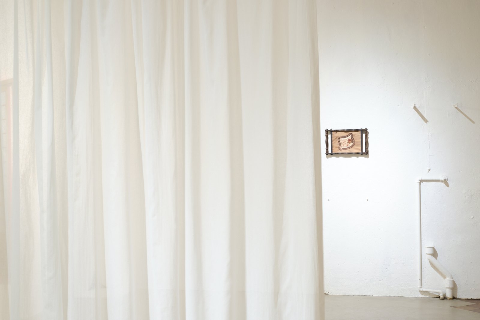 Rafael Jörger’s work, a wardrobe installed on its side, looks like something that has been left behind and not yet picked up. It, too, is a container. A creaking and groaning container —perhaps it is just woodworms, but perhaps it is also haunted by the ghosts of past owners. “Home is where the haunt is,” writes Mark Fisher—and every piece of inherited furniture is charged with hauntings. What is really hidden inside it—objects, a person, a portal to another world—is unknown. It introduces a space for thought that is locked behind the closed cabinet door. Perhaps it conceals the possibility of a new order. And in its mundane impenetrability, it always plays with the viewer’s desire—as in Lacan’s theory of the “objet petit a,” the desired remains unattainable anyway, the door never opens more than a crack. And perhaps it is not meant to, because the desire for revelation remains in limbo. Even in this quality, the mundane object has an inherent sense of the “uncanny.” The concept of the “uncanny” combines the secretive with the familiar. The ghostly, the strange, and the terrifying often hide in the all-too-familiar, in everyday scenes. Suddenly, you find yourself a guest in your own house, or the protagonist in your own nightmare; horror occurs in familiar sheets. Sometimes the abyss can even be found within one’s own body, enclosed by the skin in which we live—people are their own worst enemies. Everyday life becomes the scene of the terrifying, the grotesque—one can neither look away nor look directly at it.