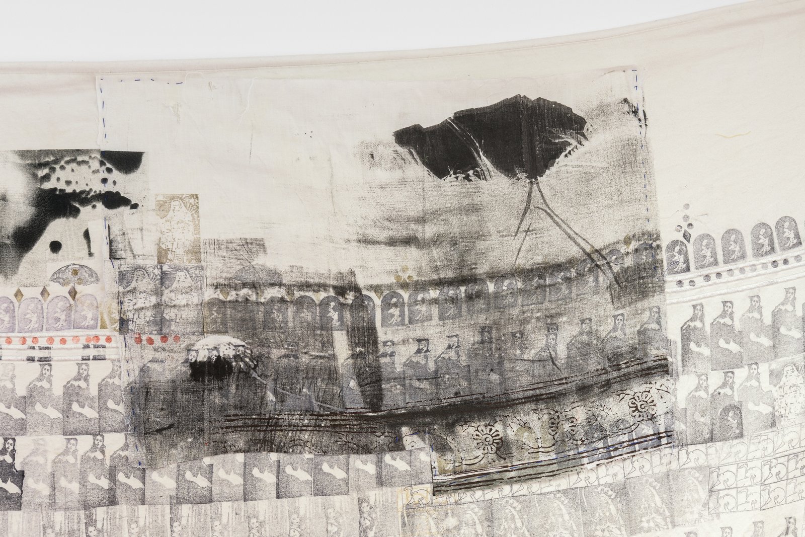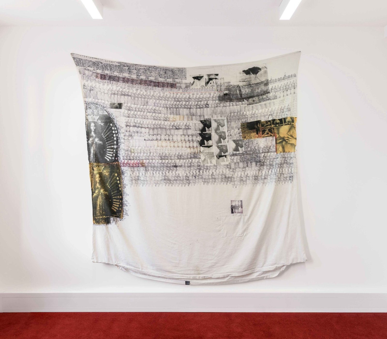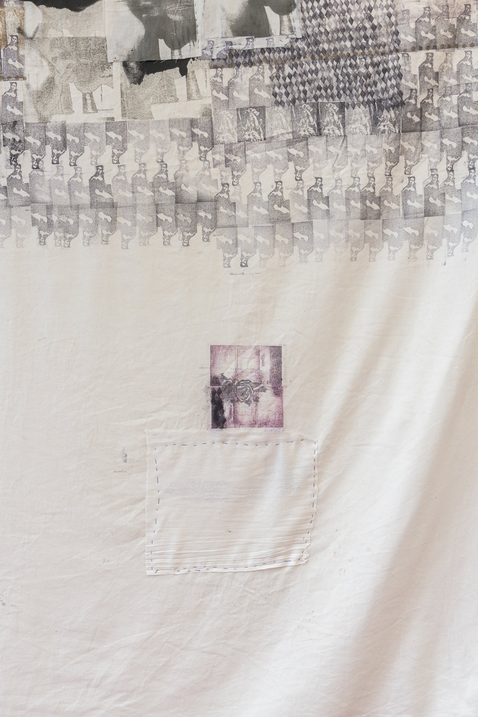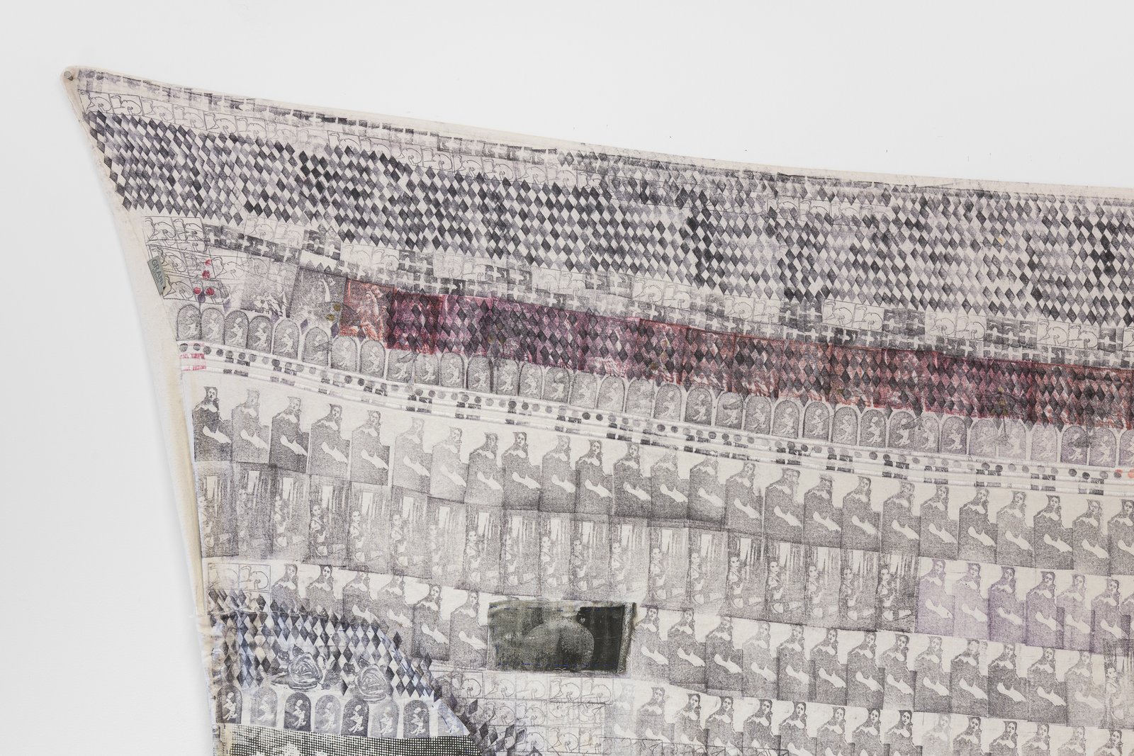 In 5–7 Excelsior Works (2025), a series of block prints and screen prints echoes imagery sourced from the artist featured in pornography, as well as imagery of La Madonna Lactans and La Santa Muerte, printed on a duvet. In these prints, Diamond reinterprets La Madonna’s sacred gesture through a lens of self-representation, pleasure, and labour. The economy of divinity becomes personal and bodily; the artist herself appears in a pornographic scene next to the Madonna, in which a client is sucking her nipples. We see a gesture that echoes St. Bernard’s miraculous renewal, charged with erotic intensity of oral pleasure. True to form, Diamond is blending boundaries between the sacred and the profane.