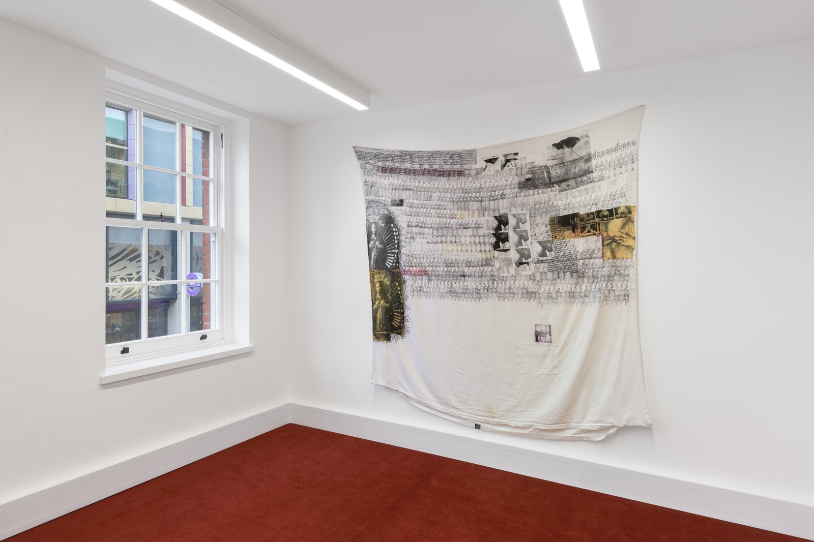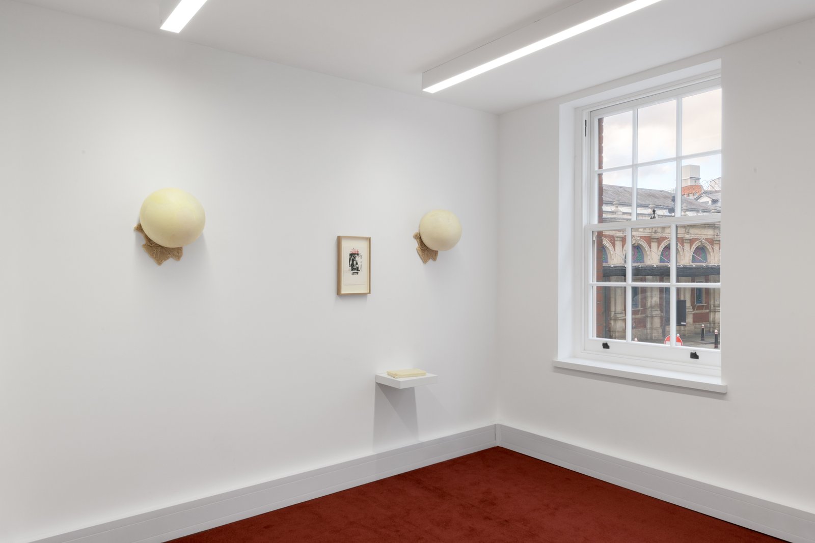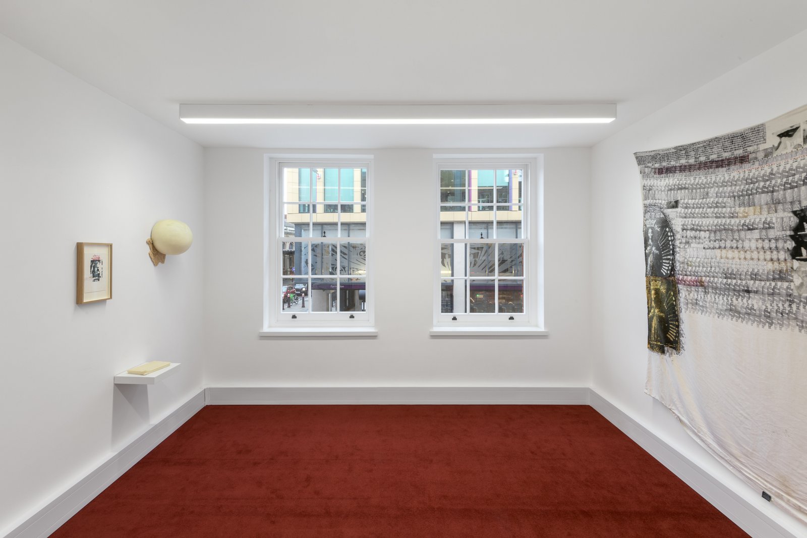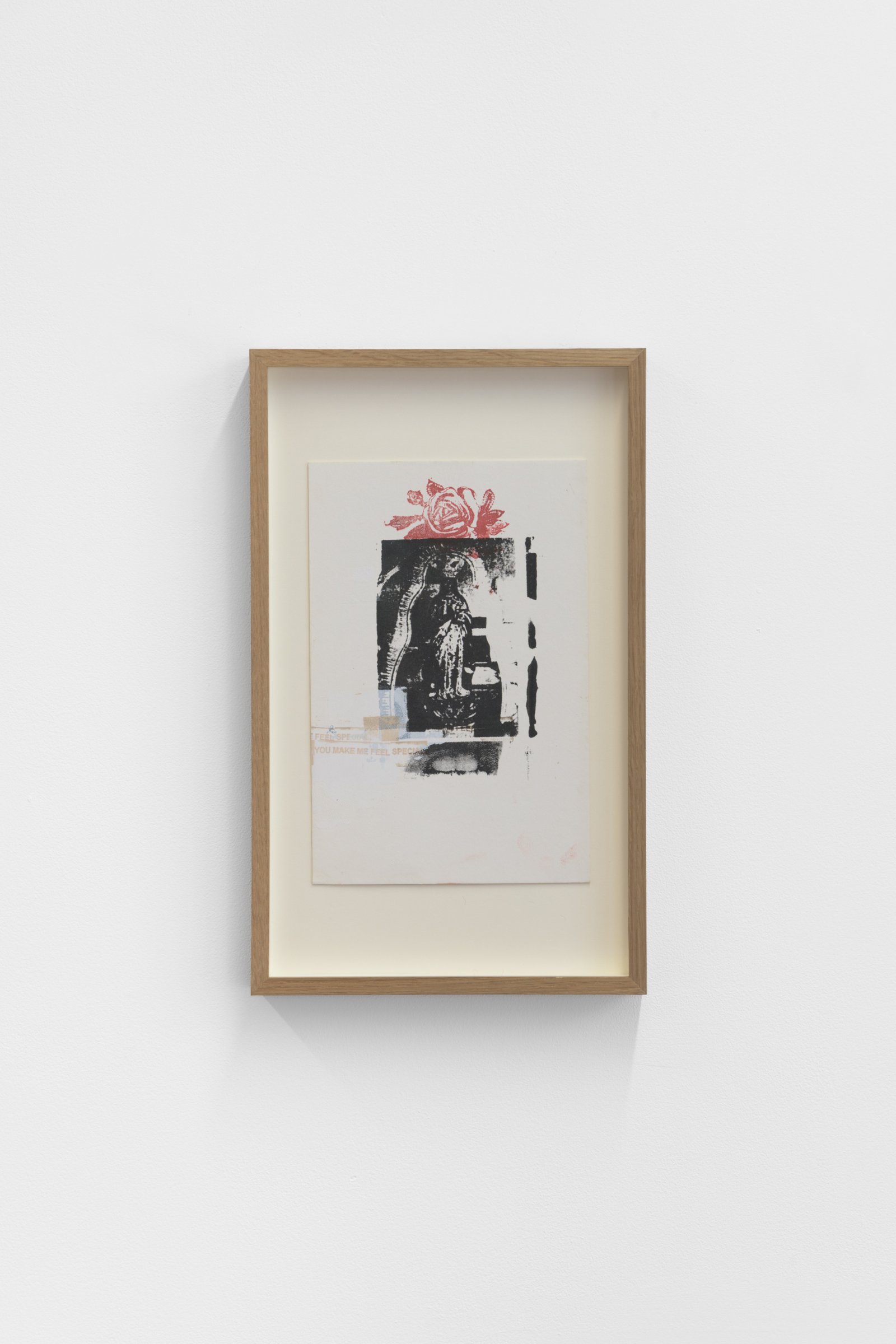 For this exhibition Diamond expands these ideas beyond print into a sculptural installation, recreating the standardised intimacy of the hotel or motel room: lamps cast in soap, a bible, a carpet. Her work meditates on labor, pleasure, sex, and emotional support. The exhibition space becomes a site of recontextualization, a mutable framework reflecting the ever- shifting environments that shape sex work. Diamond’s practice, grounded in an ethos of care, transforms the obscured realms of sexual and domestic labor into a compelling visual narrative, one that fuses the restorative and psychosexual, the therapeutic and erotic, and ultimately questioning the distinction between site and stage.