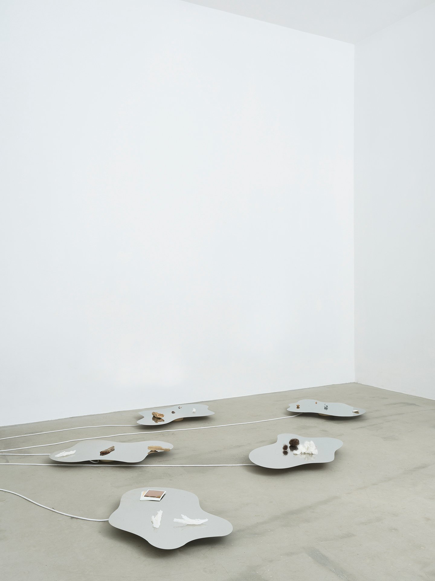 Fire, Water, Earth, Pain is an intermedia exhibition that understands pain as a fundamental natural condition and a processual force that transcends binary divisions between the human and the natural, between the subject and the environment. The three spatial installations stem from the idea that pain is not merely a bodily or sensory experience, but a material-discursive process that emerges in the transitions between the individual, the community, natural substances, and the environment.