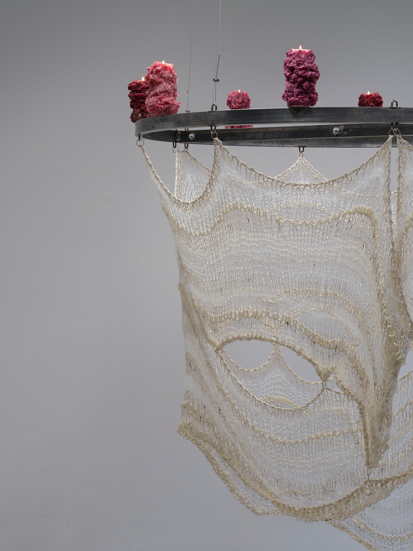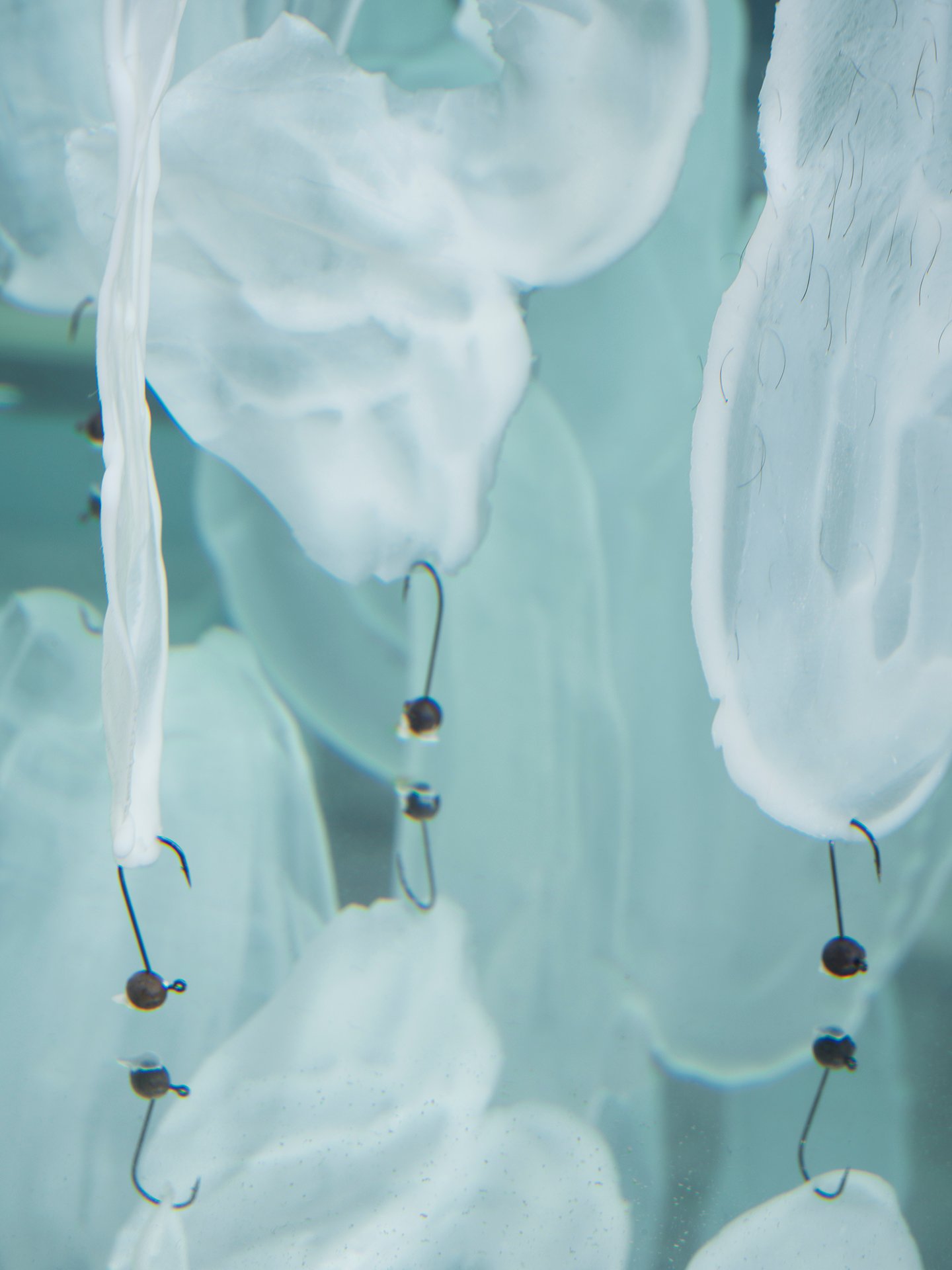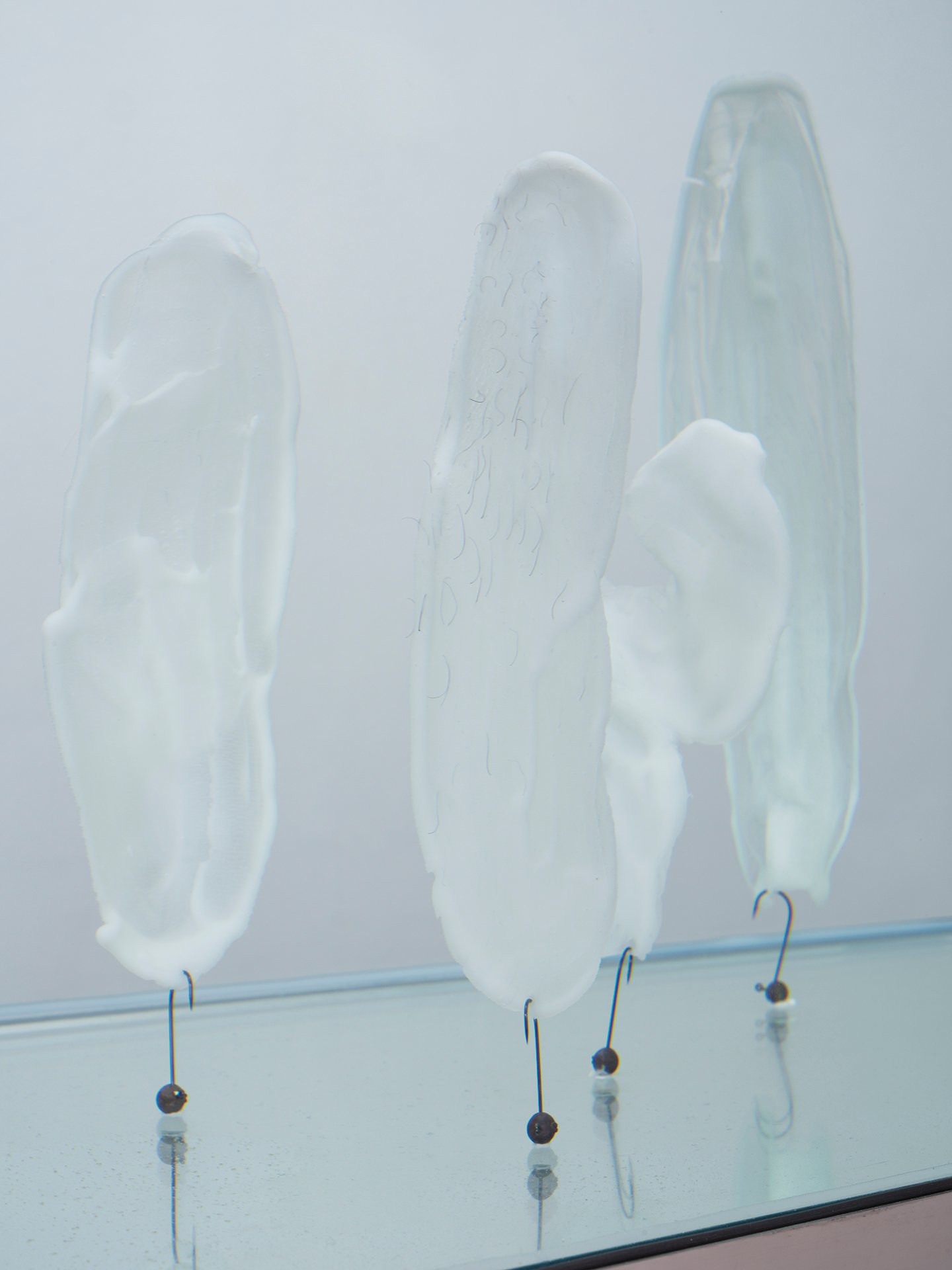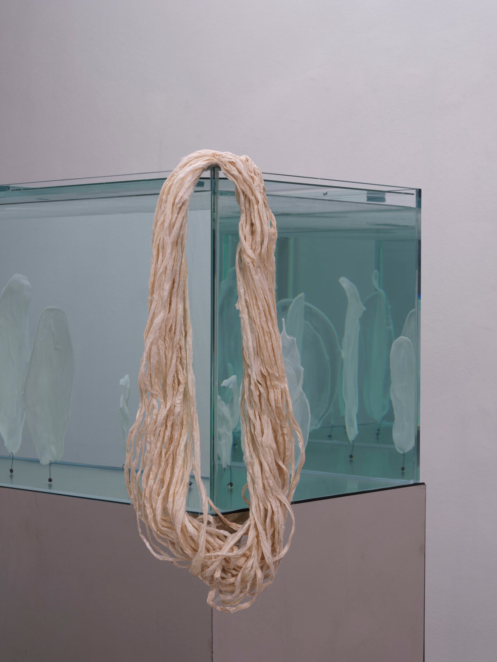 In the exhibition, pain appears as the interlacing of fabric, as preserved artifacts in water, or as vibrations within space. Through selected materials, the artist reveals that pain does not disappear but continuously transforms, accumulates, and resonates within the relations between bodies and their environments. The project thus highlights the reciprocity between nature and the human and offers a way of understanding pain as a fundamental dynamic that organizes both natural and cultural systems.