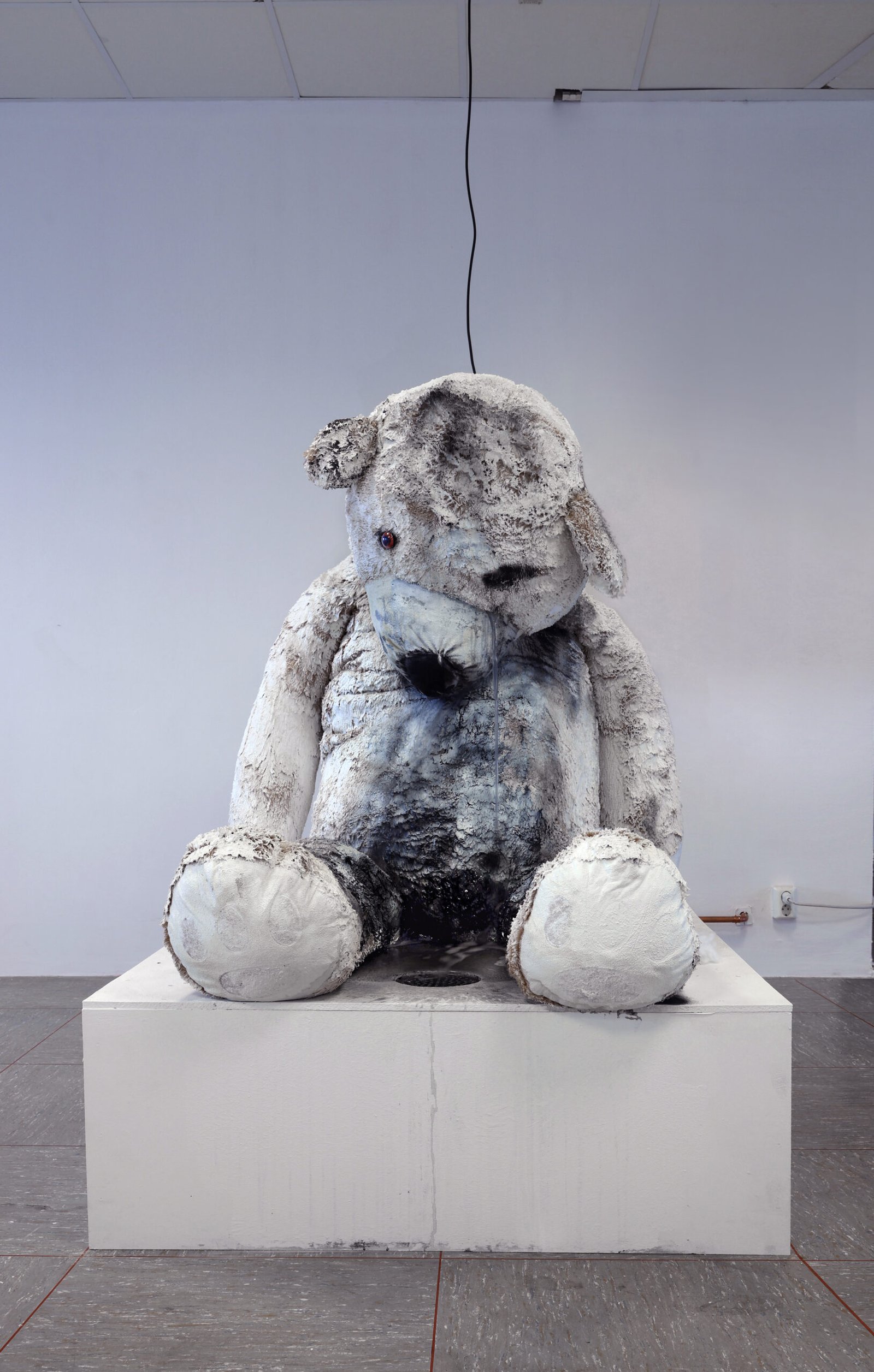 Fountains can be read as an allegory of climate breakdown, but also as a meditation on the loss of innocence and on what happens when the symbols we trust to protect us begin to fail. Like the world they mirror, these bodies are damaged but still present and it is a slow leak from our collective subconscious. The work offers no easy consolation, but it does not retreat into hopelessness. Instead, it creates a space of tension between care and destruction, vulnerability and responsibility. The bears are marked by both love and abandonment.
