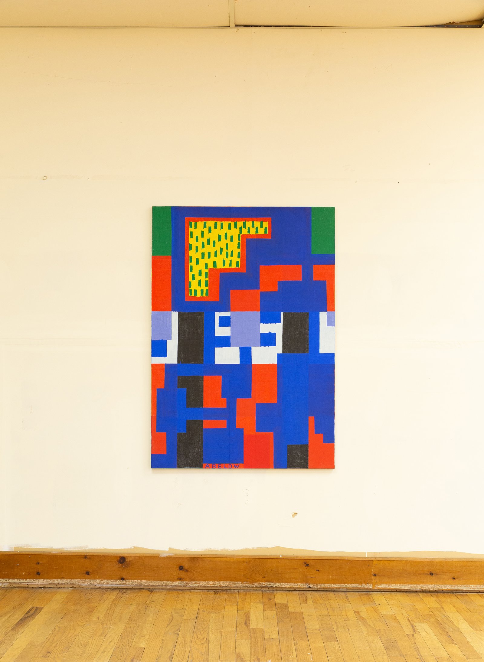 These Leaky Abstractions are representative of a glitch, though. Other works from the same series were initially presented consecutively, as a two-part series, at Magenta Plains in Manhattan back in 2021. The term ‘leaky abstraction’ was first popularized by the software engineer, Joel Spolsky, to describe a design flaw, in which an ‘abstraction’ — something in software that makes a computer program more accessible while hiding any details that may make things more difficult for the end user — becomes exposed and the underlying complexity of a system is revealed to users, often forcing them to have to troubleshoot the issue(s) and essentially become fast-learning, entry-level computer nerds themselves. Abelow applied this notion to painting — the process of making, exhibiting, consuming, digesting, and discussing it. He did so in response to the COVID pandemic — a major glitch in our real-life matrix, for sure.