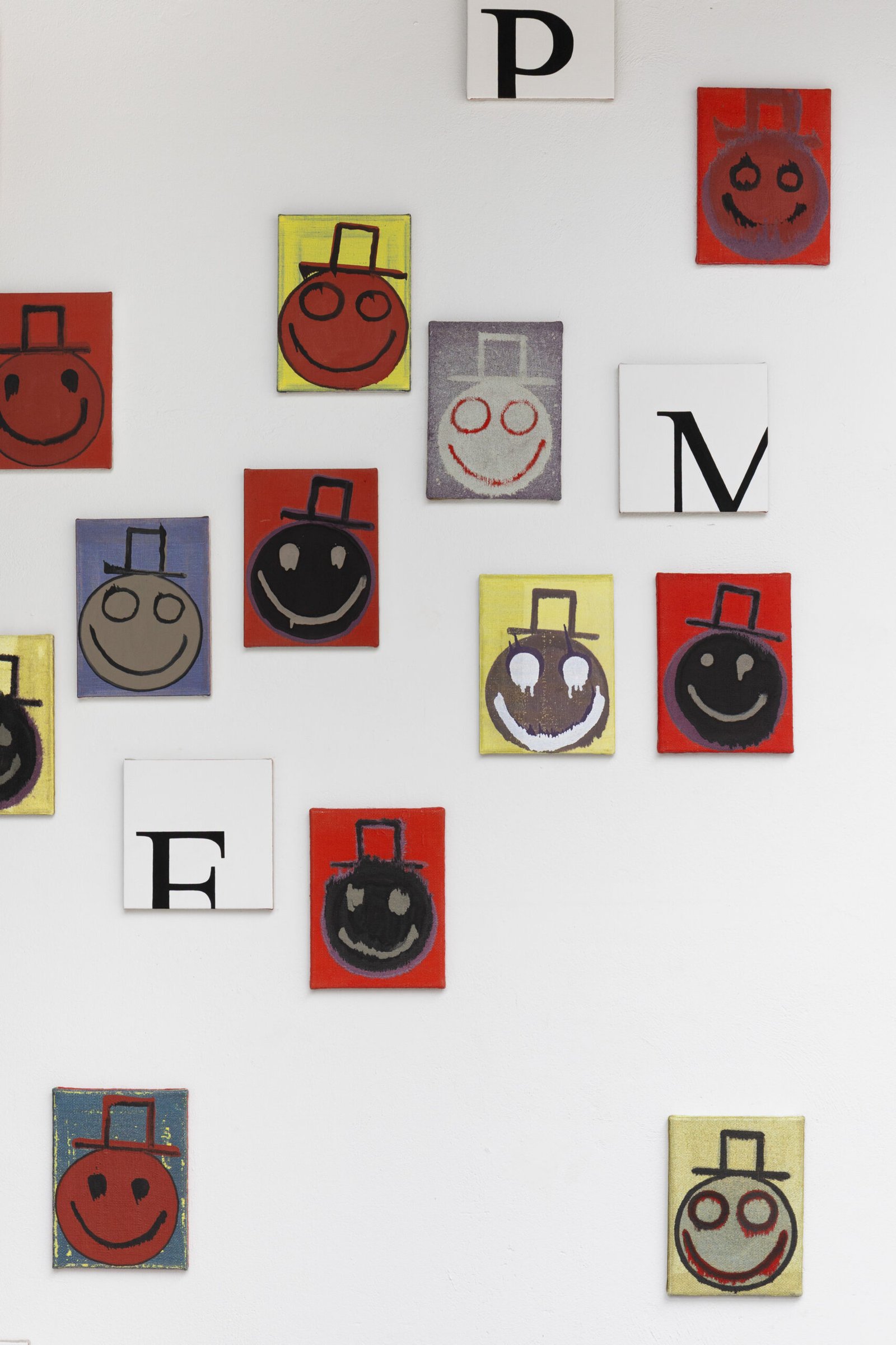 Tisch: Yeah, they make me laugh, but the laughter is coming out of a sort of defensive uneasiness. The smiles seem more deranged and menacing than happy. The faces bleed into the surfaces as if they are back from the dead. They leave me wondering whether I might become one of them, or if I already am – like trying to put on a happy face when actually things are pretty dark.