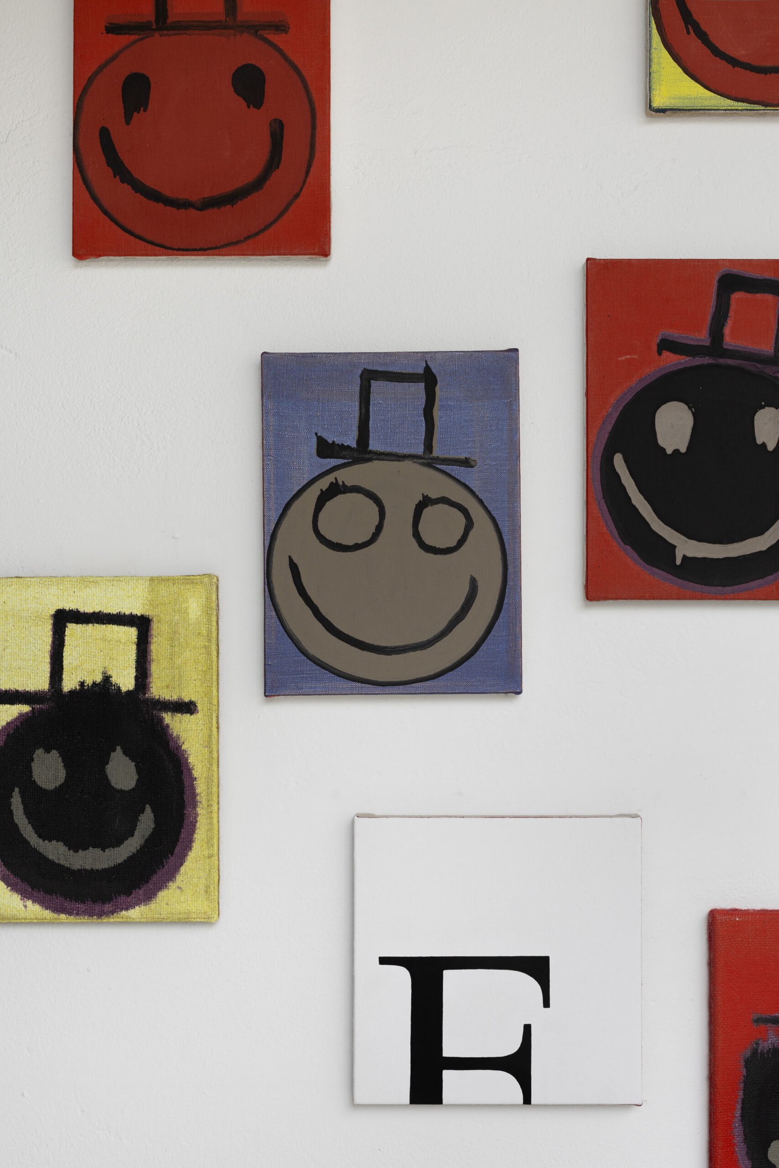 Joshua: That must’ve been before irony became the primary purpose of communicating with symbols. [laughs] I remember being irritated by the “Don’t Worry, Be Happy” song by Bobby McFerrin because of its lack of irony – I just kept thinking, what if I don’t want to be fucking happy? FUCK OFF! Also, apparently, the smiley face that Cobain designed for Nirvana’s logo in the early 1990s was inspired by one he saw on the marquee of the notorious Seattle strip club called The Lusty Lady. It said, “Have an Erotic Day!” I’m very attracted to inversions of meaning through simple gestures as well as appropriating an appropriation. Now that I’m thinking about it, the smiley face is as banal as New Times Roman font. It’s interesting that we are both using these pre-existing, well-known things as springboards for our work. Tisch: Yeah, I feel like we’ve both often gravitated toward loaded simplicity (also an inversion) in our work. Maybe it’s because we grew up in quintessential American suburbia, but with layers of family trauma just below the surface. Our work addresses the cognitive dissonance of today’s status quo for sure.