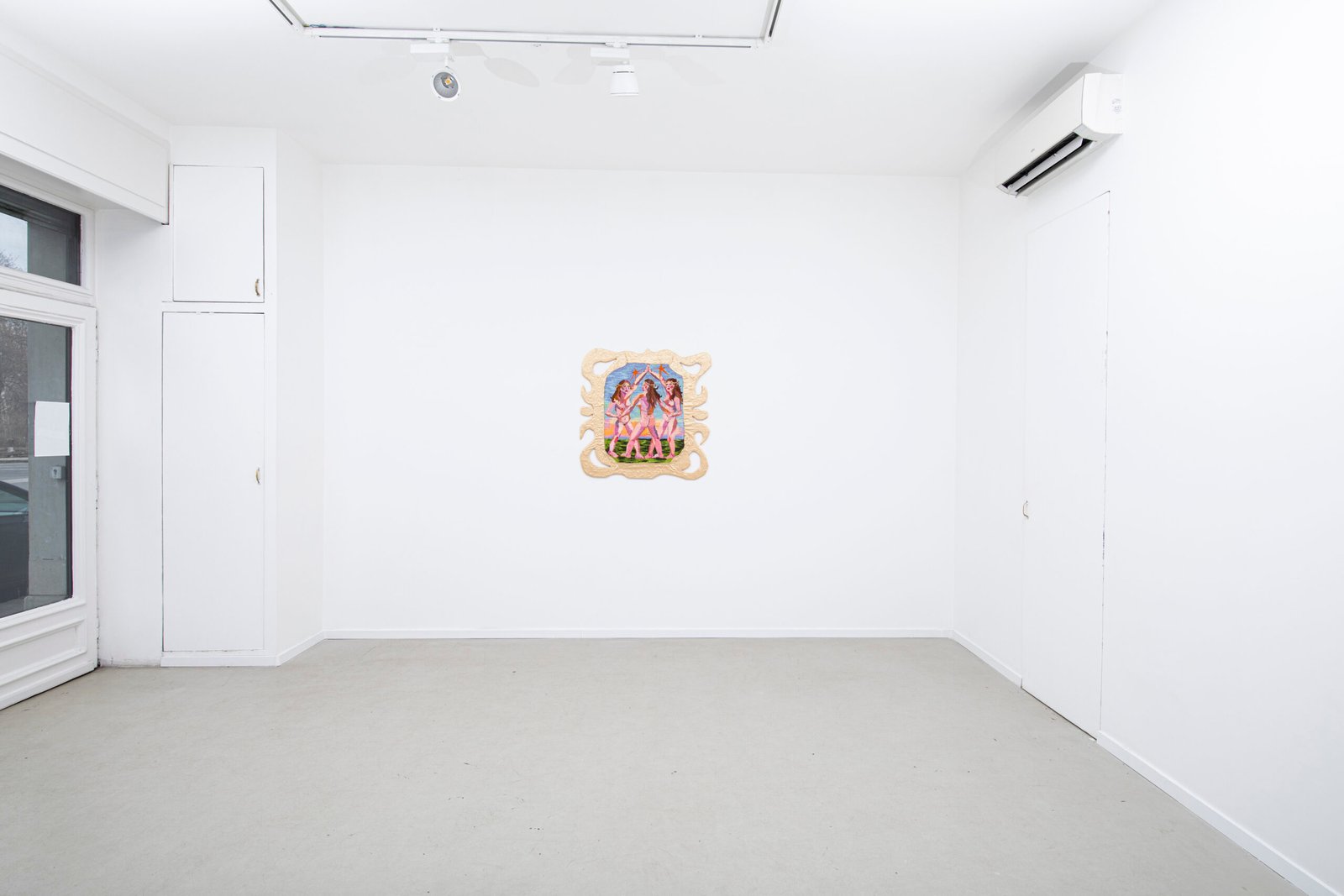 In this exhibition Dankó’s textile works are exclusively populated by female figures who travel from mythology into the present. They appear within well-known art historical and cultural scenarios, yet their presence delicately reaches beyond these inherited frameworks. They move through continuous states of becoming. Women overtaking masculine roles, human bodies gladly evolving into animals as their femininity intensifies, remaining open to further metamorphosis meanwhile rejecting the idea of the human as the highest evolutionary form.