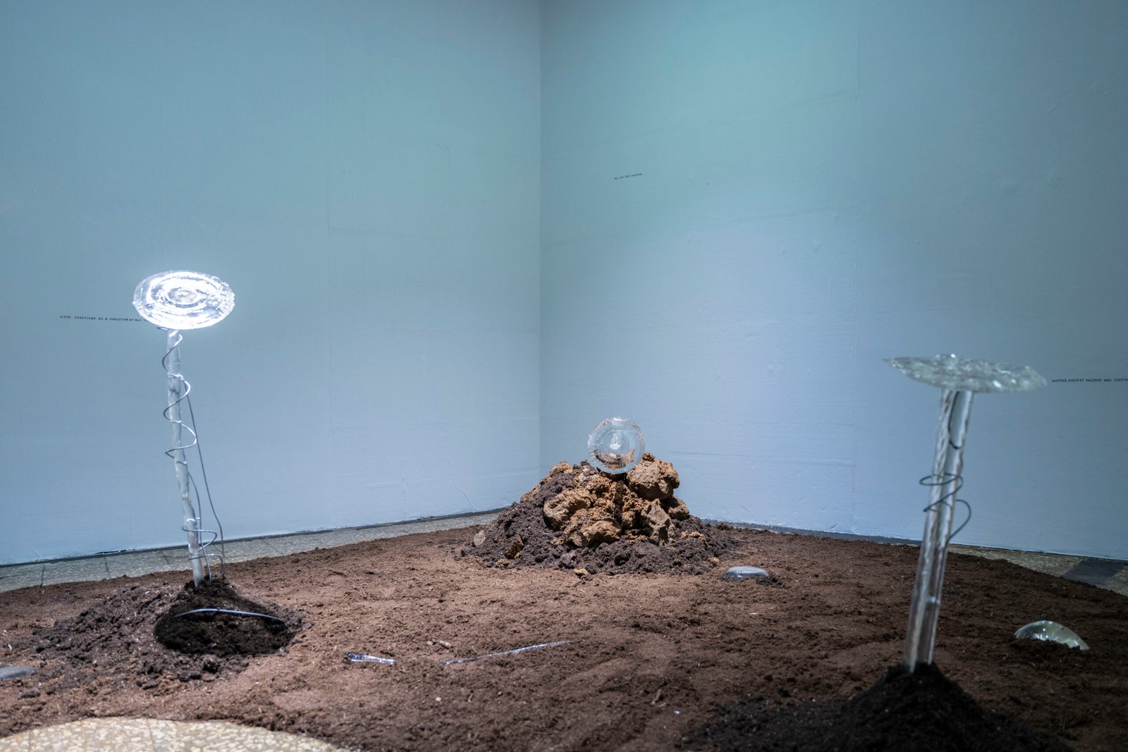 In a dynamic network, where natural and social elements intertwine through co-creation, mediation, and collective survival, a hybrid and inevitable reality emerges for safeguarding ecological and social equilibrium. Within this configuration, conceptions of agency grounded exclusively in the human are surpassed, opening new pathways for posthuman perspectives and multi-agent interactions. Luiza Thaqi and Lena Violetta Leitner reveal this continuously shifting dynamic—between species, among different entities, and across time. “Garden of Hybrids: Cultivating Realities” by Luiza Thaqi highlights Bruno Latour’s reflections in We Have Never Been Modern (1991), which argues that nature and society are inseparable networks that, as a result, produce a complex and layered system of meaning. In this context, the hybrid soil of her installation traverses composition, movement, reconstruction, and interaction—both materially and conceptually. We are thus immersed in the garden of hybrids; an earth that is never fixed: fragments of soil that carry memory, seeds that migrate, architectures that adapt and ceaselessly reshape themselves through repair and recreation. It is a recognition of how every gesture, structure, or decision resonates across the networks of human and non-human relations within a functioning system,