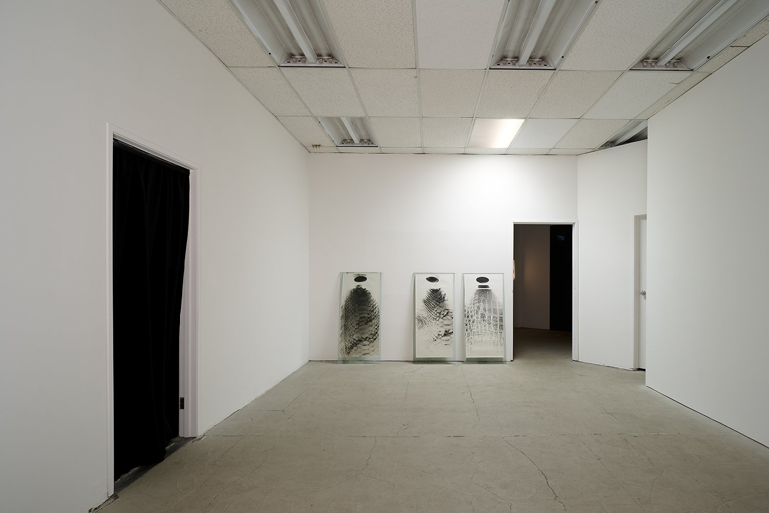The children who performed surgery on their Furby were also making visible what had been hidden. Instead of obscuring the apparatus, the works on view expose the mechanics and material contrivances of image-making. The resulting photographs are not transparent windows to an event or a place, but broken facsimiles we are invited to spend time inside, to fill their emptiness, laden by the weight of our own presence in the dark.