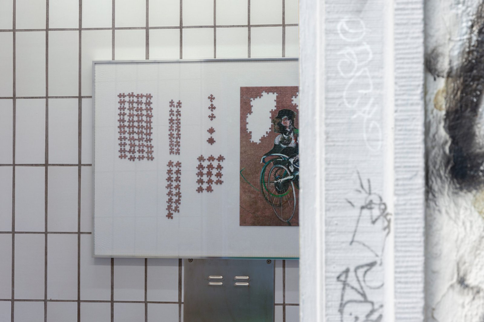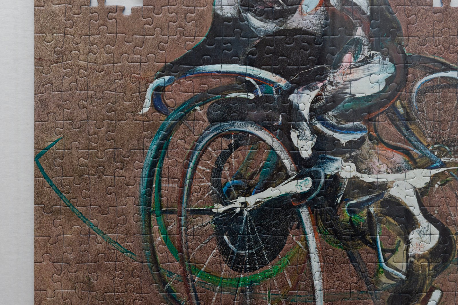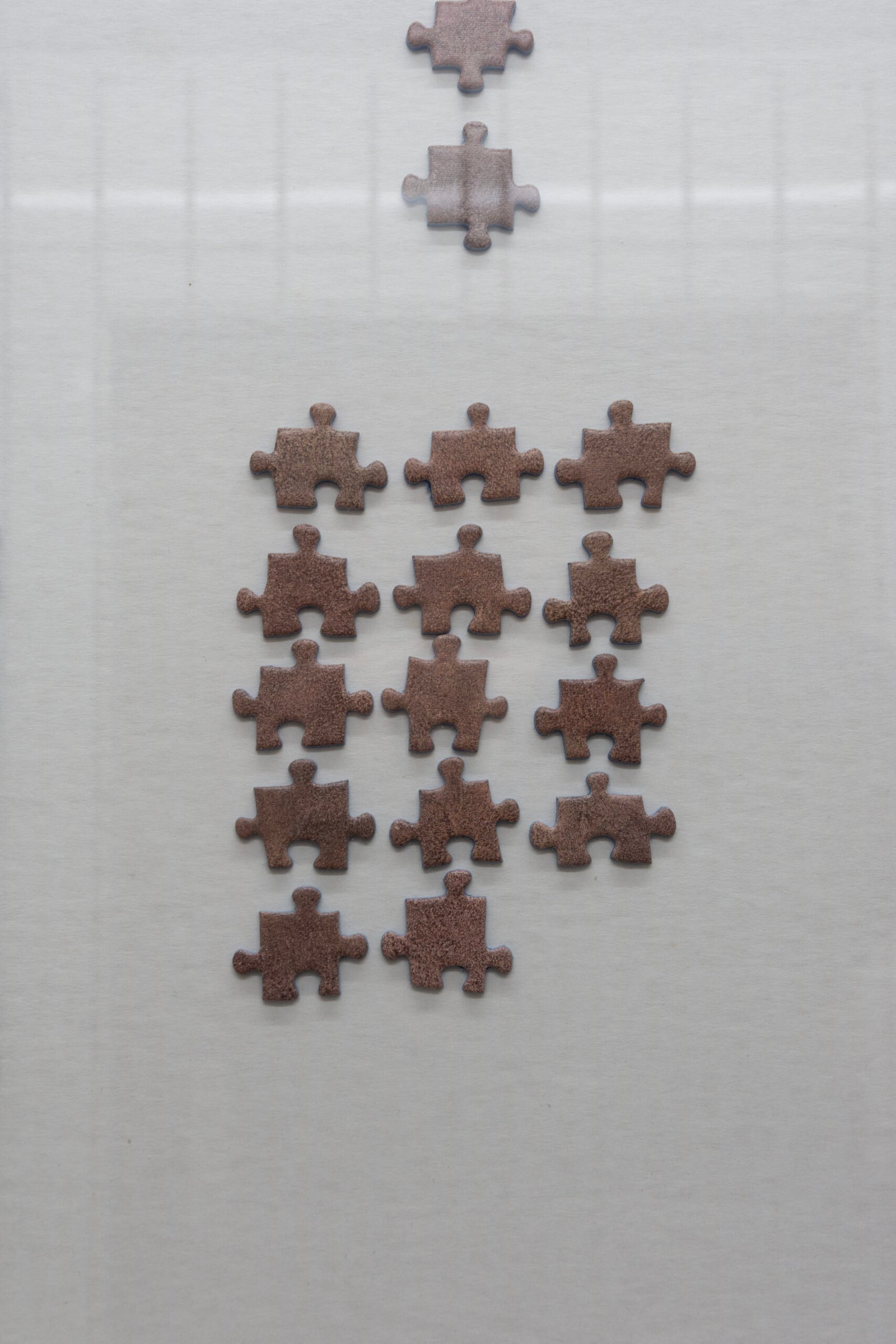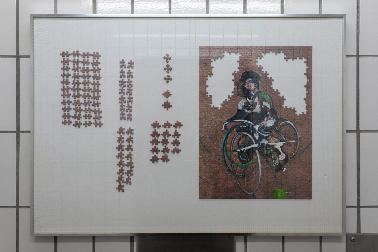 Sibylle and I found this jigsaw puzzle of a Francis Bacon painting at some thrift shop in Basel. It seems someone had bought it at the Fondation Beyeler gift shop but never bothered to open it, and an unopened thrift store jigsaw puzzle is the best kind. We assembled it on the coffee table over several days, starting with the border, then the figure. Once those had been completed we set in on the background. This part was a struggle; we even organized the remaining pieces by shape to help us place them. And after some hours of painstaking assembly, it was abandoned.