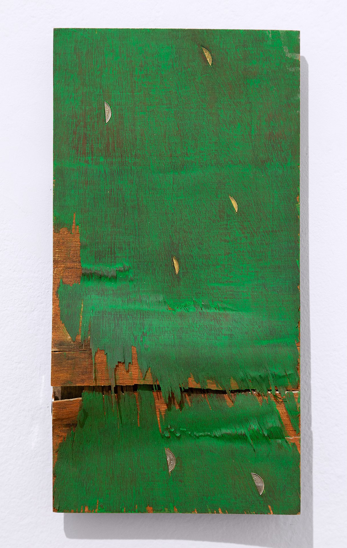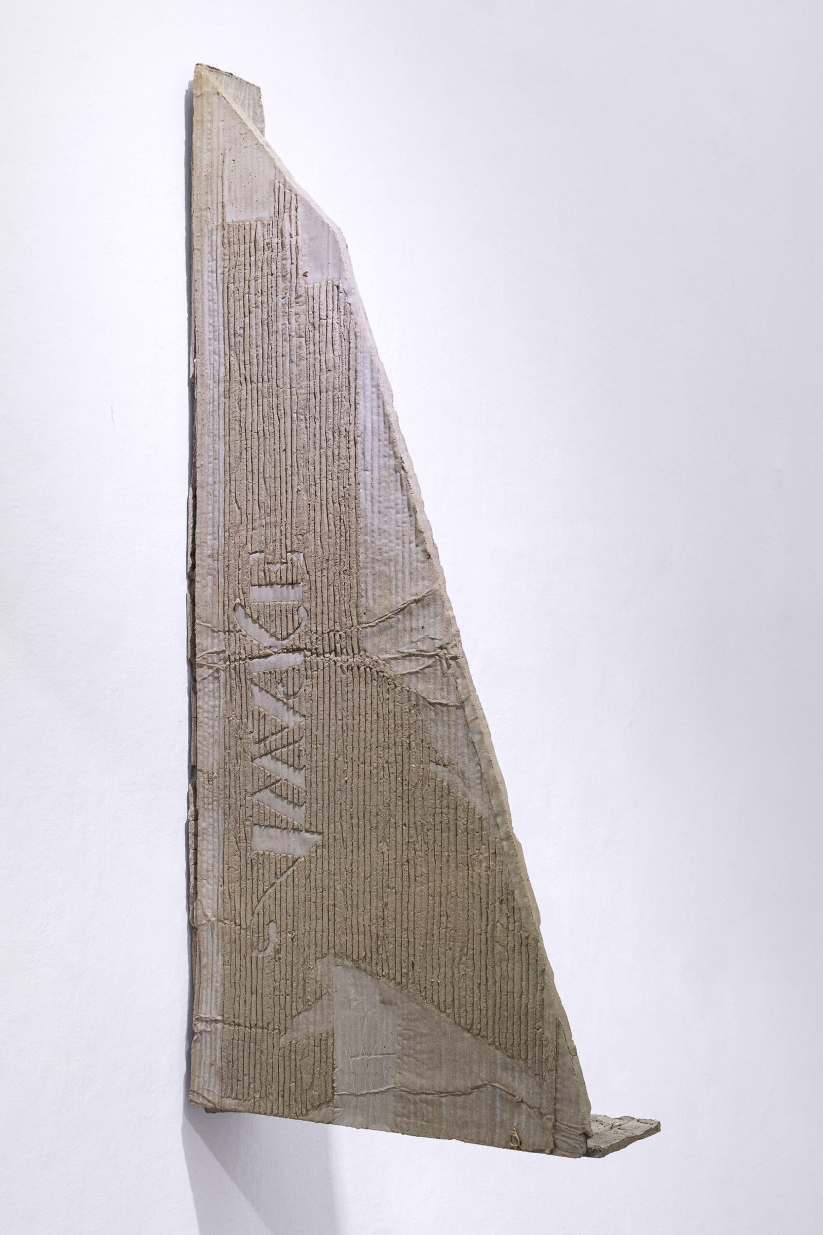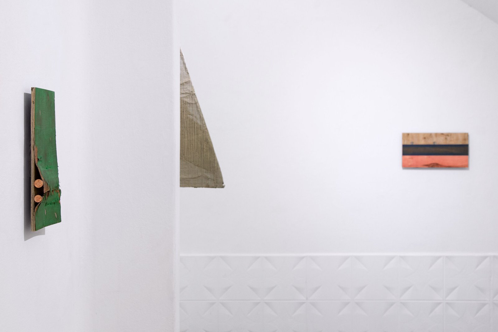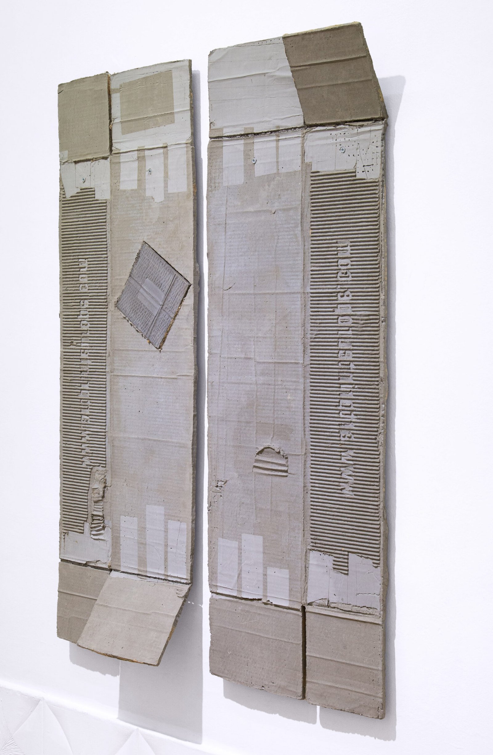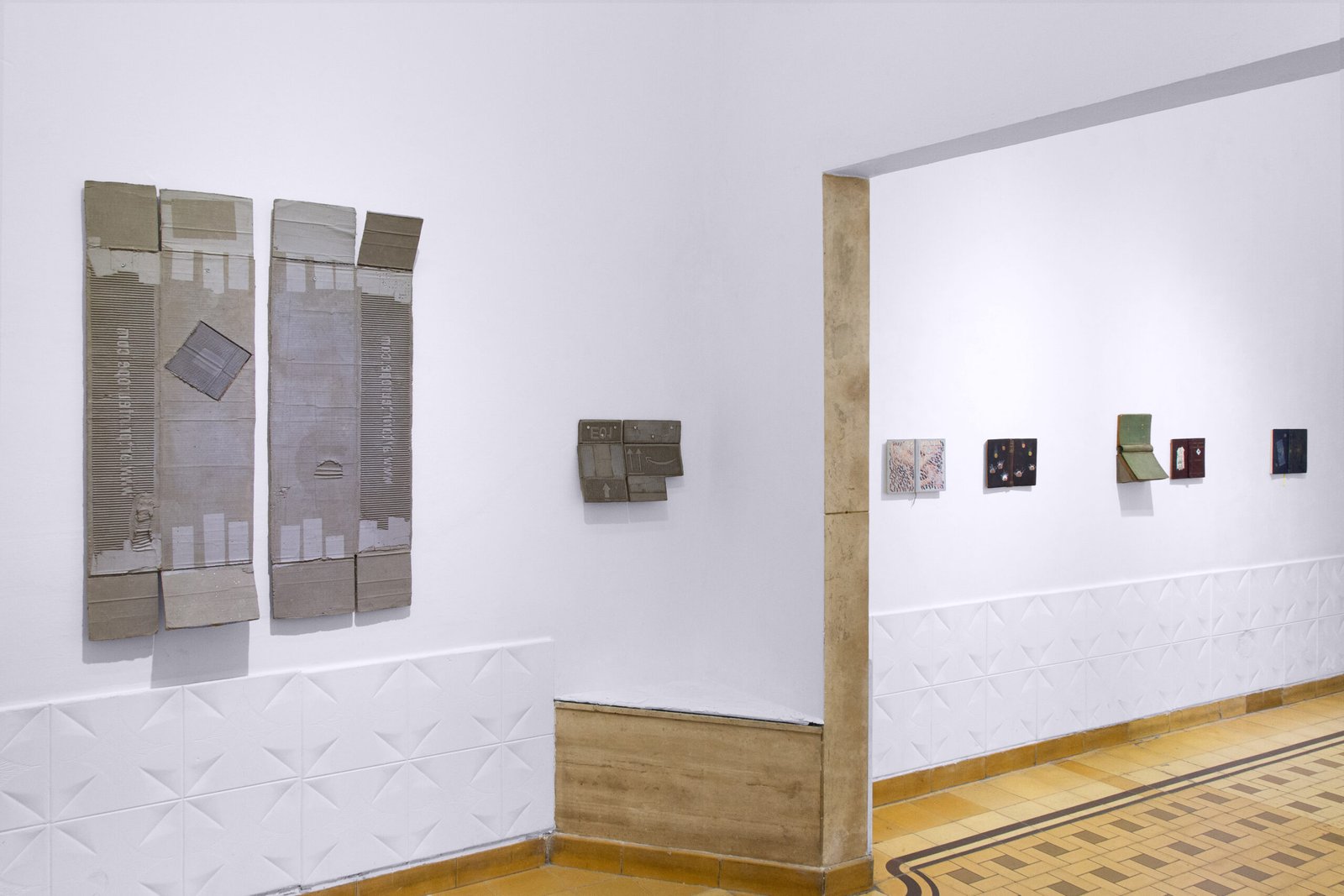 Within his studio orbit the dilemmas of planned obsolescence and the paradigms of conservation, alongside the artist’s own personal trajectory in a foreign city. He applies formulas and operations to produce a stable materiality of permanence from disposable artifacts such as cardboard. He explores the interstices of different supports—plywood, plastic, textiles—endowing them with air, body, and hidden spaces. He discovers fissures, opens cracks, and inserts findings that correspond to his own poetic code, his own force of material attraction.