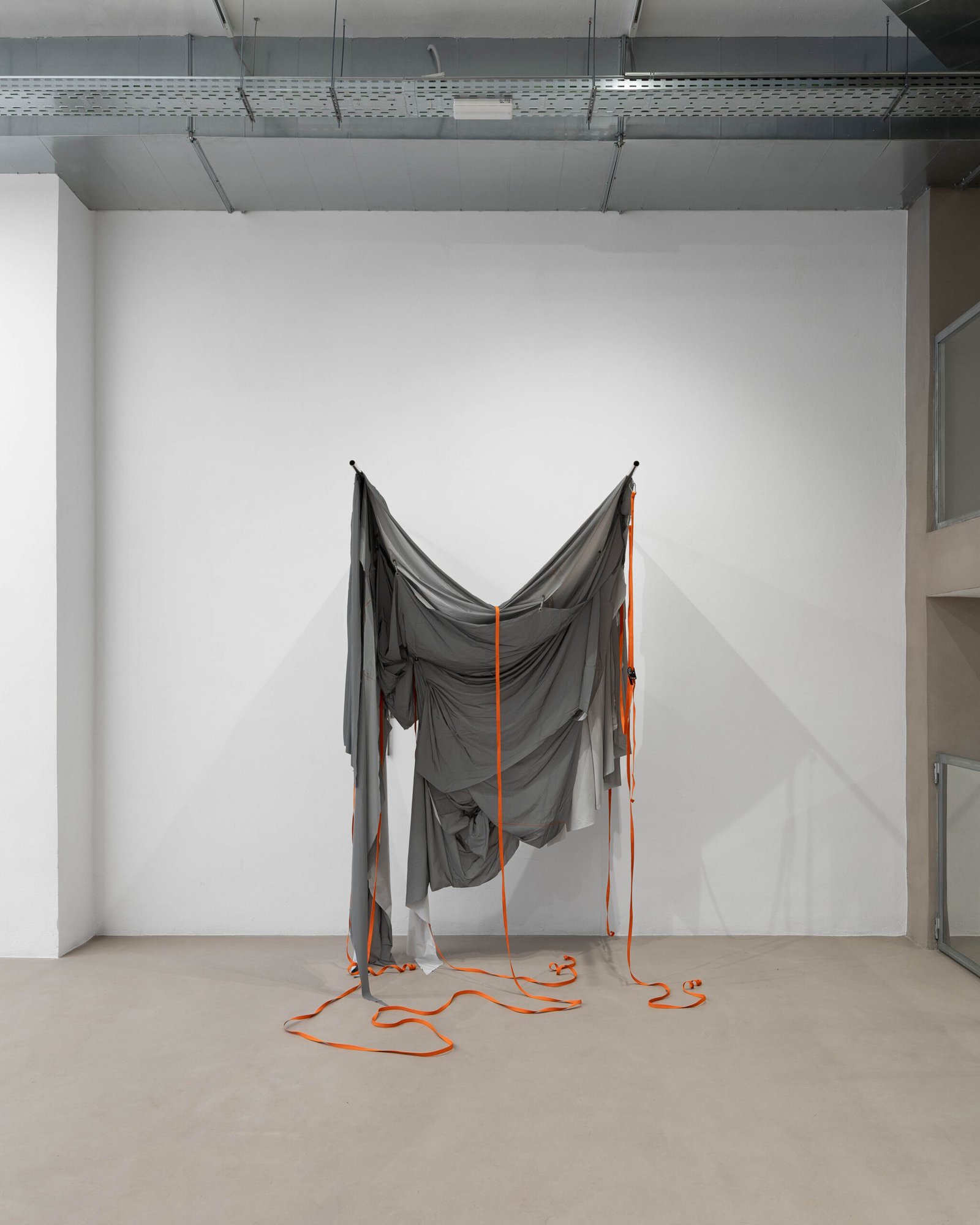 Finally, Claudia Pastomás rehearses gestures of care and protection by working with fragile materials and privileging process over the finished object. She explores the limits of the materials she works with, approaching a critical point not to cross it but to inhabit it, unfolding gestures of attention and care from within that threshold. Her site-specific installation engages with the column as a defining feature of the space, embracing it and softening its edges.