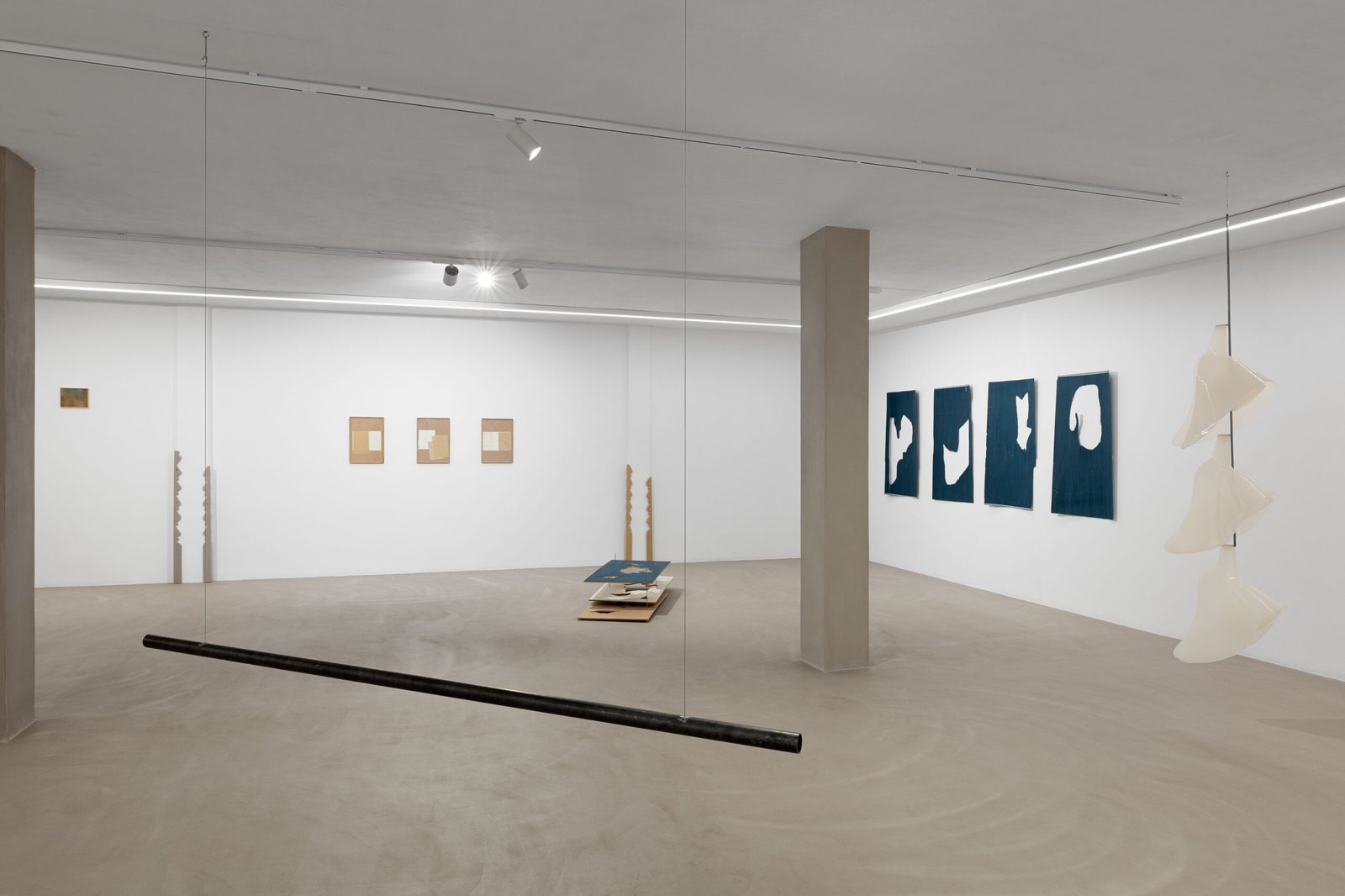 La densidad, la fatiga y la gravedad también están presentes en el trabajo de la artista portuguesa Vera Mota. A través de sus propuestas escultóricas y acciones, explora el comportamiento de los materiales y su tendencia a transitar entre estados. En Performing Matters (2024), la caída lenta de la silicona desde una barra de metal suspendida del techo activa una tensión entre control y abandono, mientras una nueva escultura colgante permite activaciones sonoras en el espacio.