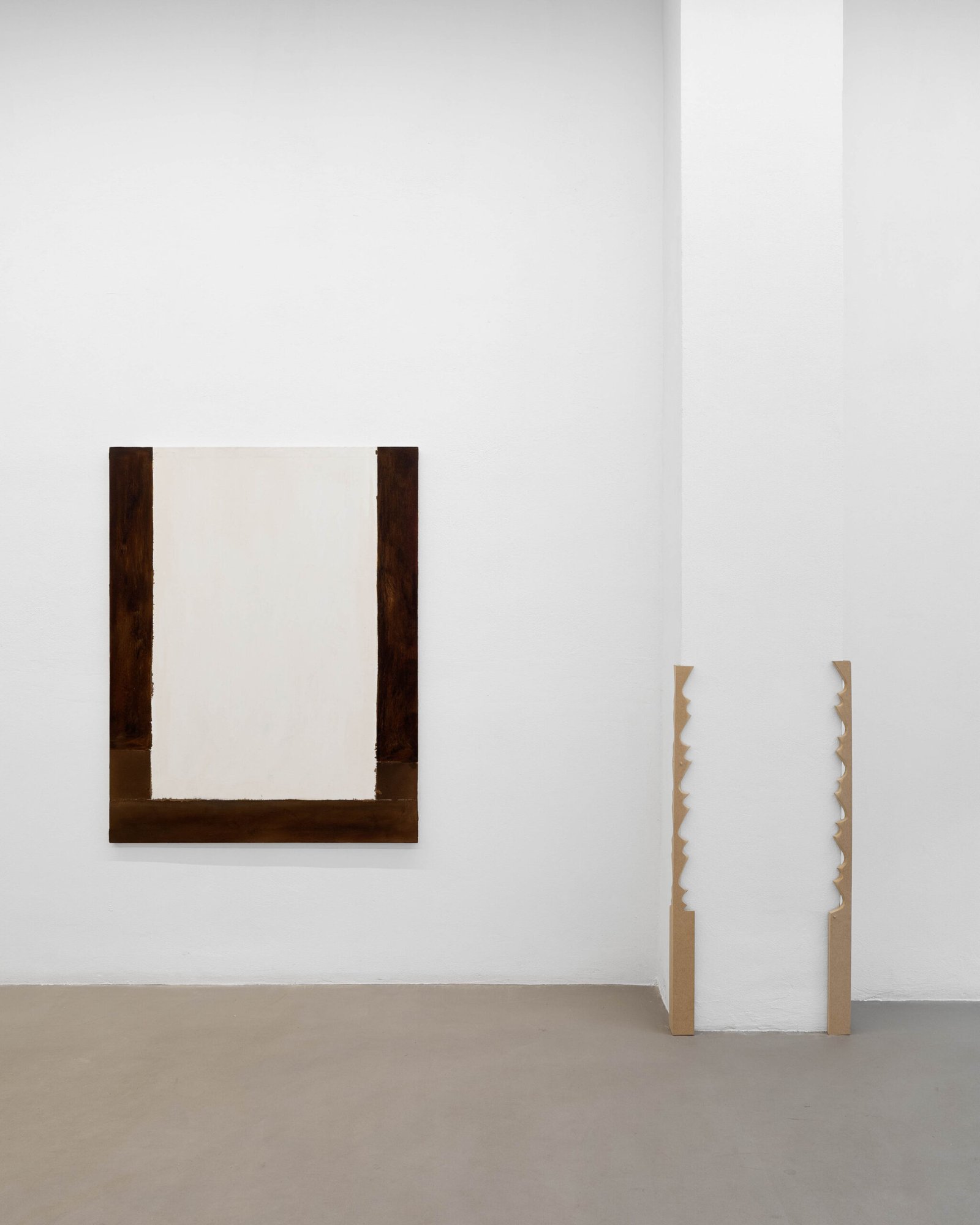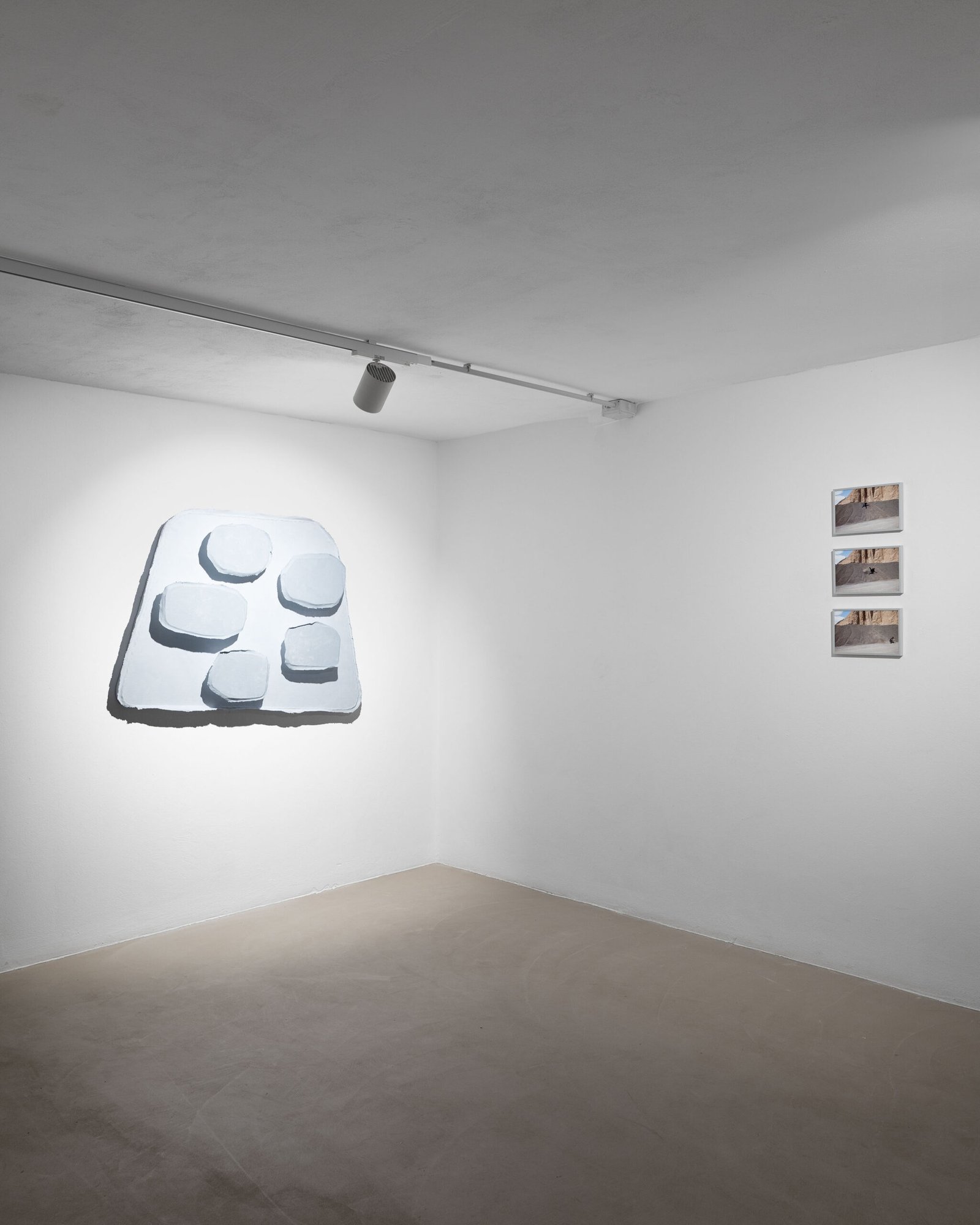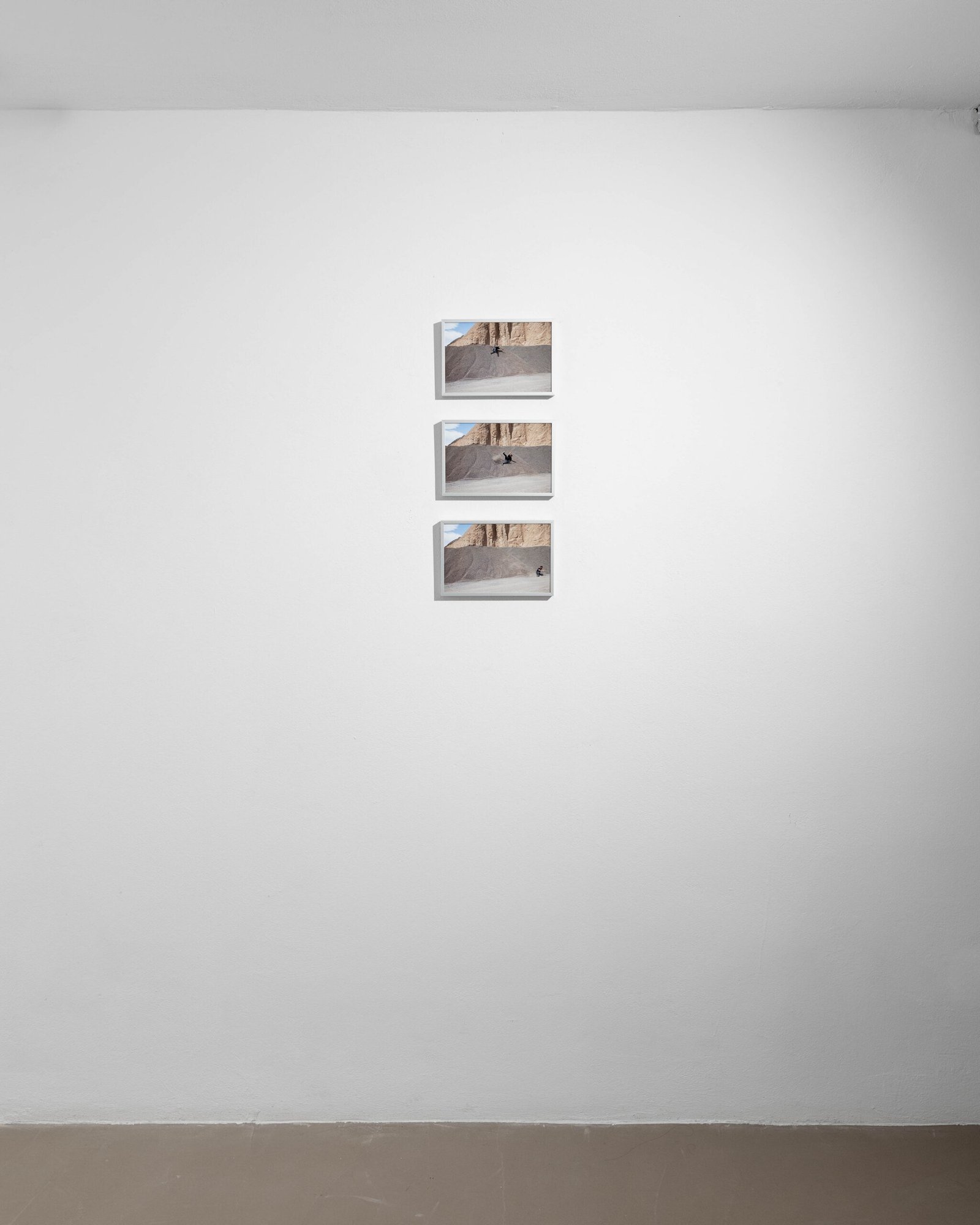 La caída también aparece en el trabajo de Álvaro Porras, que se deja caer por una ladera empedrada en Opera (2025). Esta acción en tres actos recoge ecos de artistas como Bas Jan Ader o Giovanni Anselmo, inscribiéndose en una genealogía de gestos mínimos. Frente a esta dimensión performativa, sus pinturas presentan una rotundidad matérica que abraza el vacío al tiempo que plantea una interrogación constante sobre los límites del paisaje.