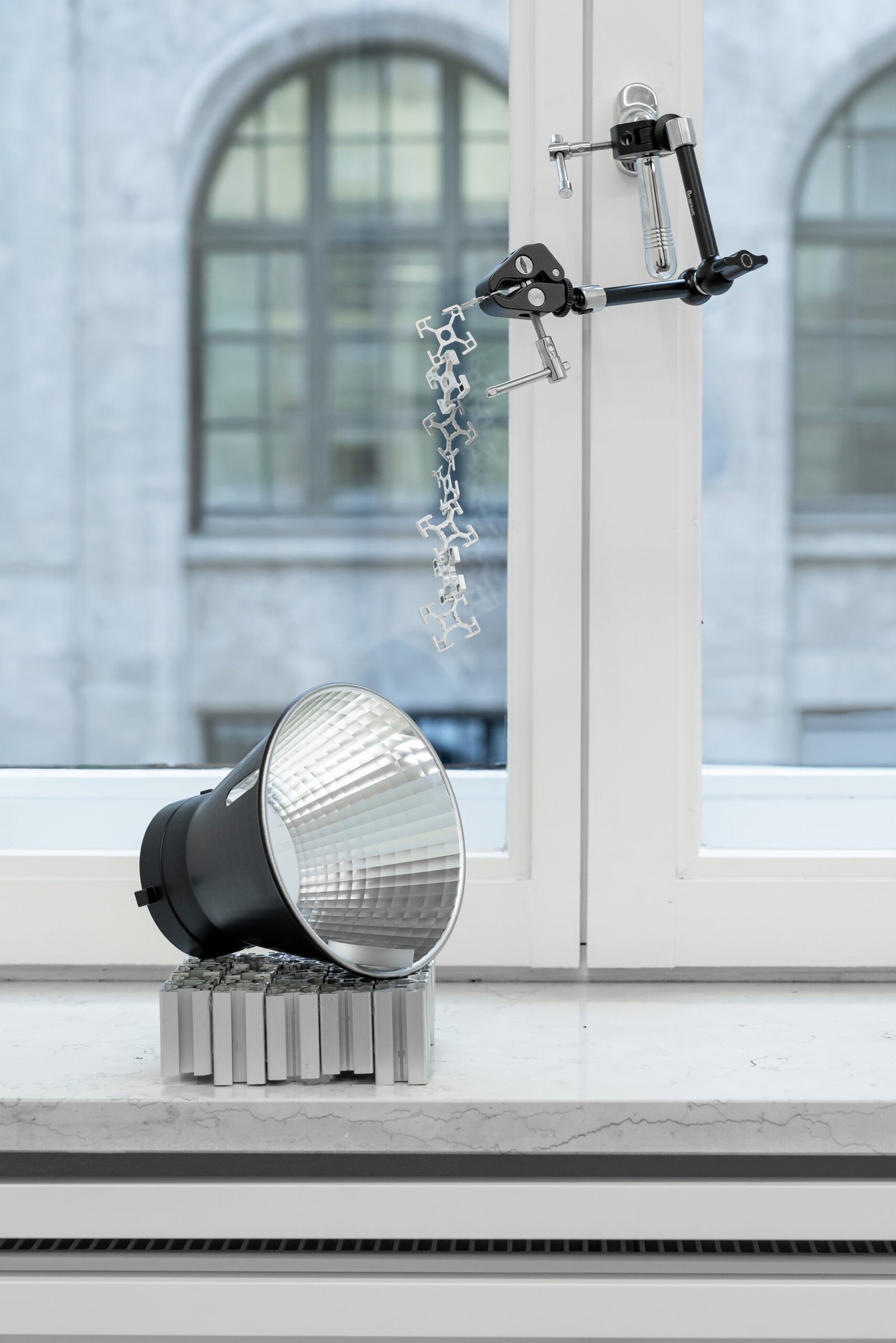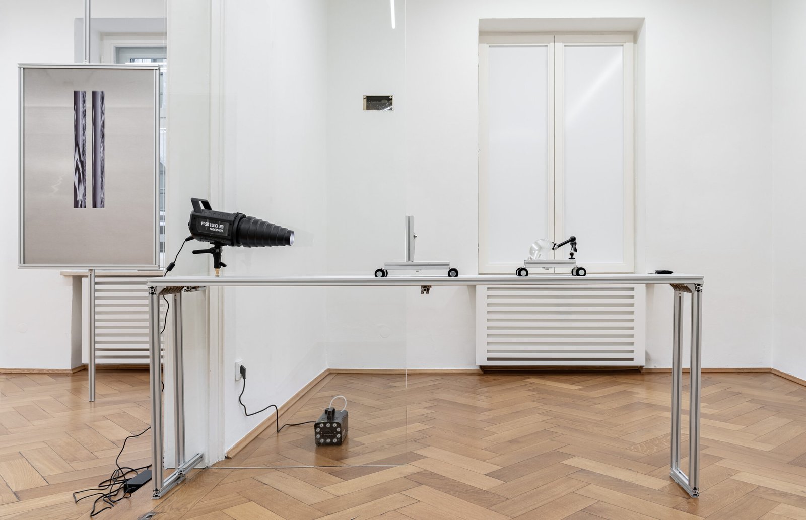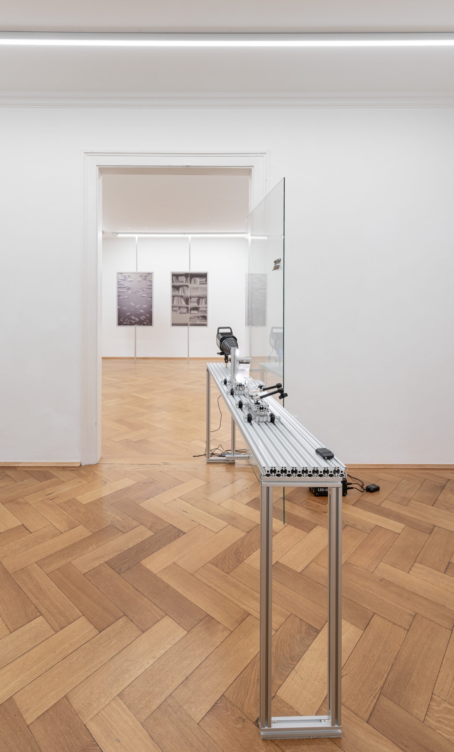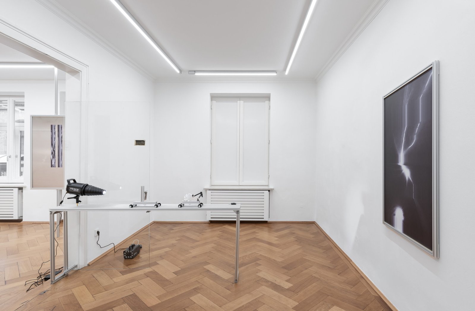 In Tatjana Vall’s first solo exhibition at BRITTA RETTBERG, the Munich and Berlin-based artist examines photography and its inherent production and perceptual promises of memory and time. The exhibited works allow various temporal dimensions to intersect, in which technology-driven uncertainties and potentials of the present converge with historical questions about the technical eye. Photographic experimentation, optical instruments, and technical apparatuses that structure our lives become both subject and method of investigation.