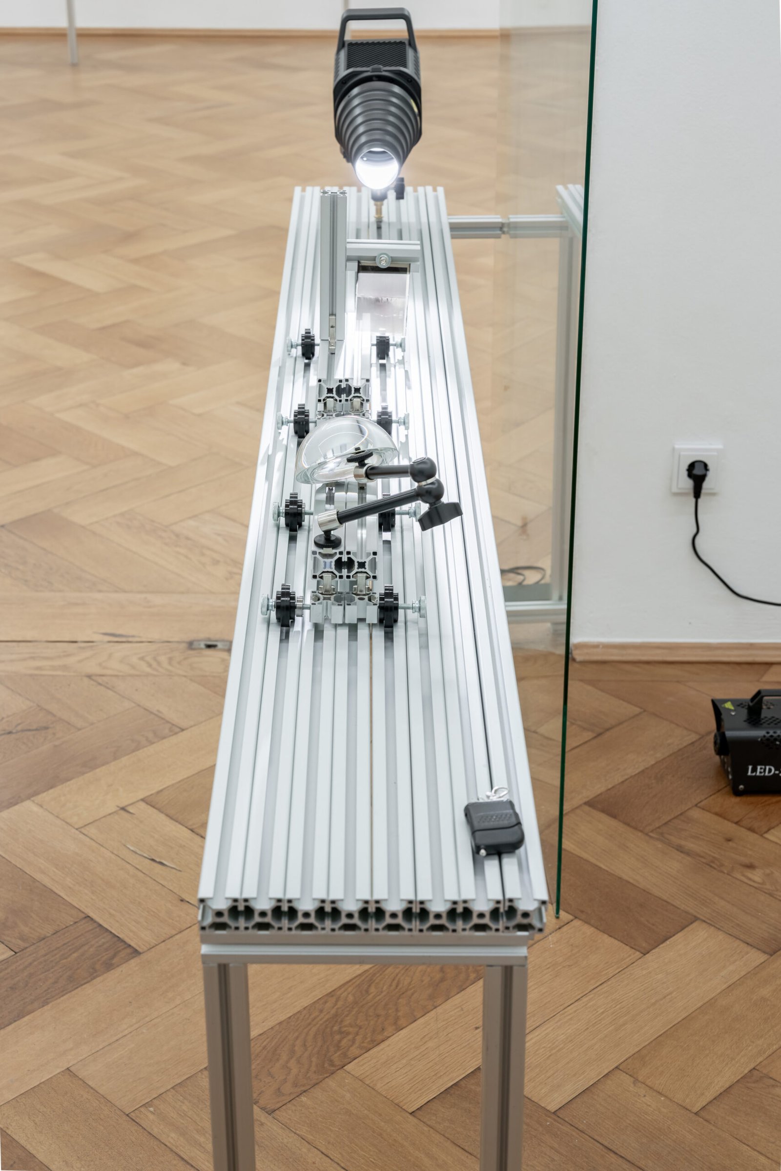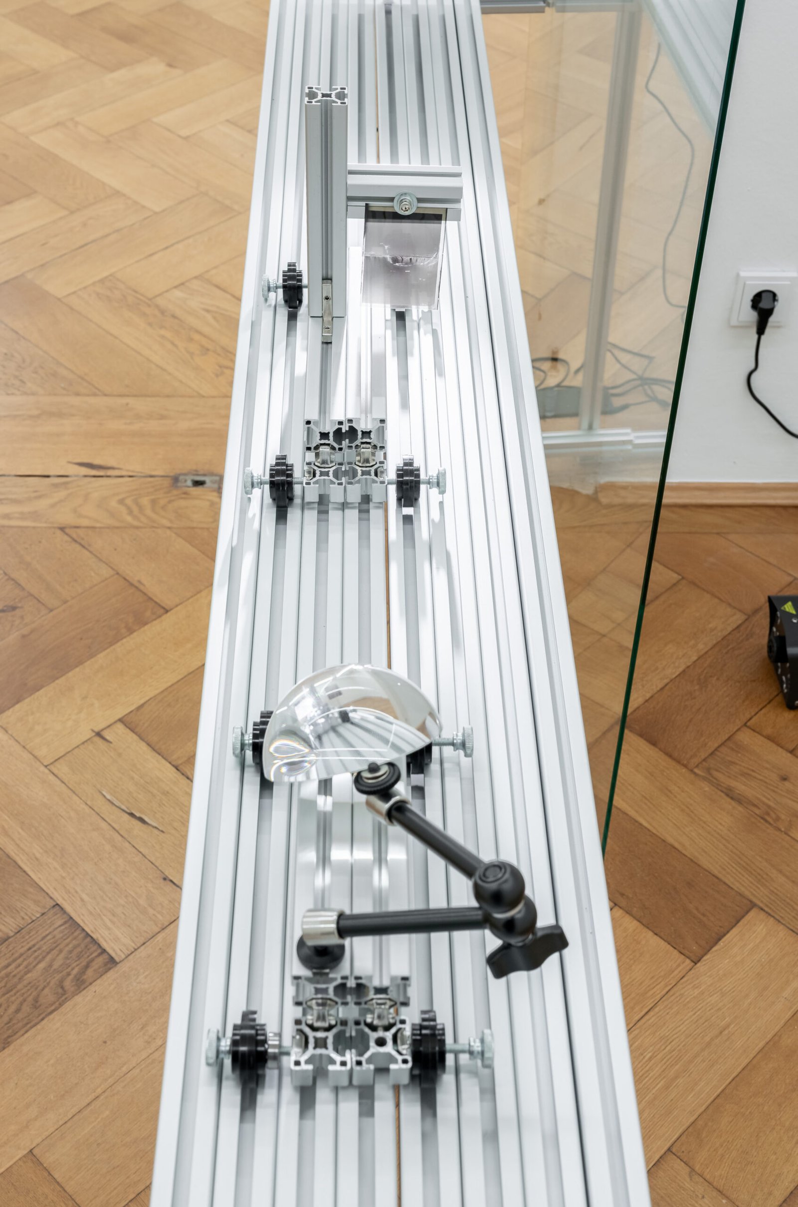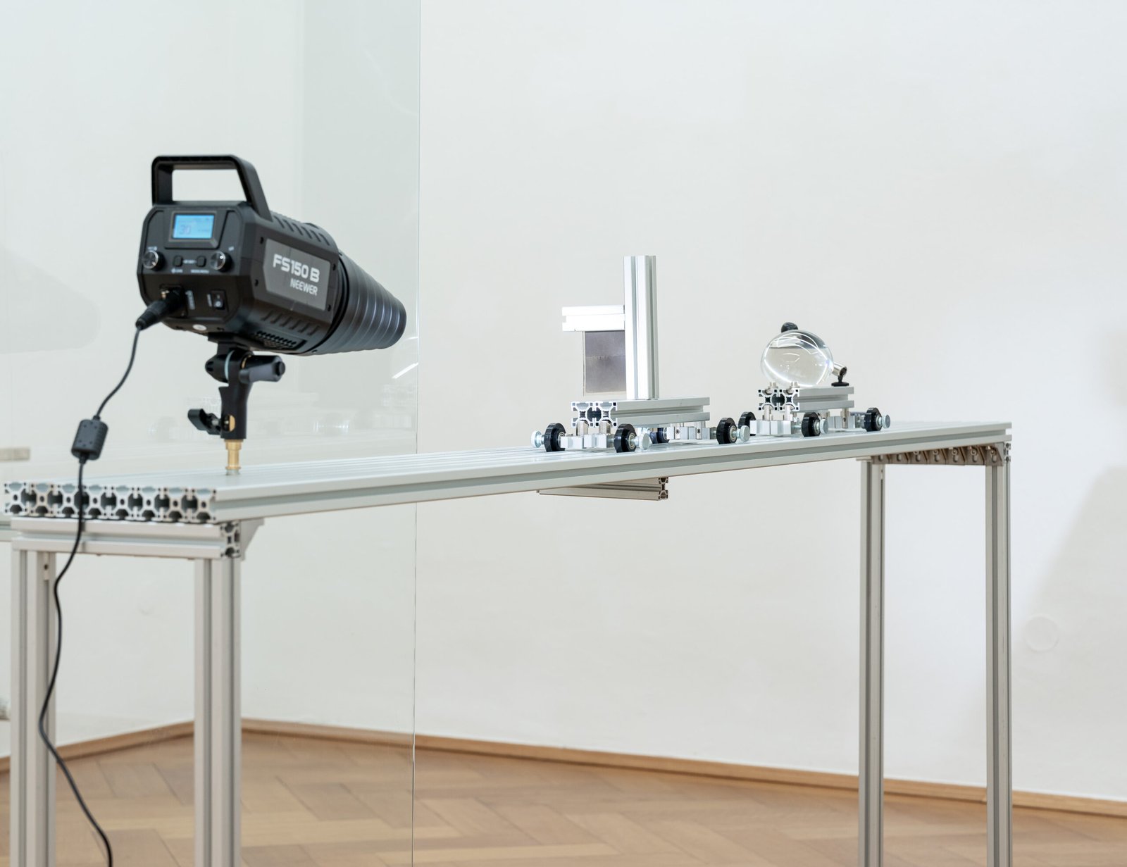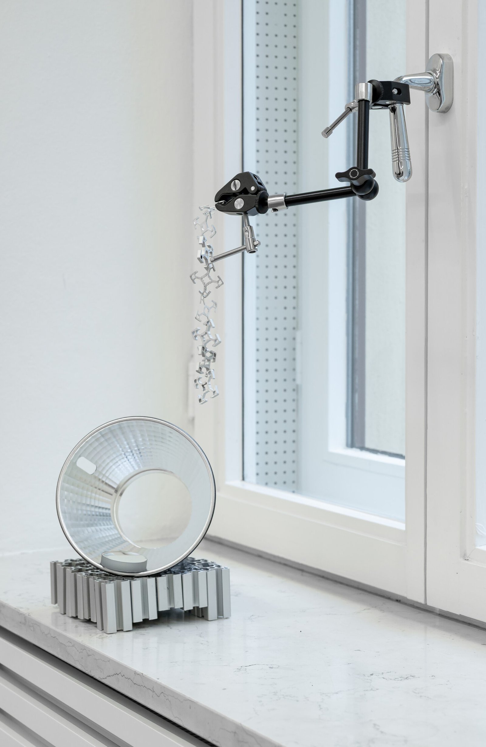 In Tatjana Vall’s first solo exhibition at BRITTA RETTBERG, the Munich and Berlin-based artist examines photography and its inherent production and perceptual promises of memory and time. The exhibited works allow various temporal dimensions to intersect, in which technology-driven uncertainties and potentials of the present converge with historical questions about the technical eye. Photographic experimentation, optical instruments, and technical apparatuses that structure our lives become both subject and method of investigation.