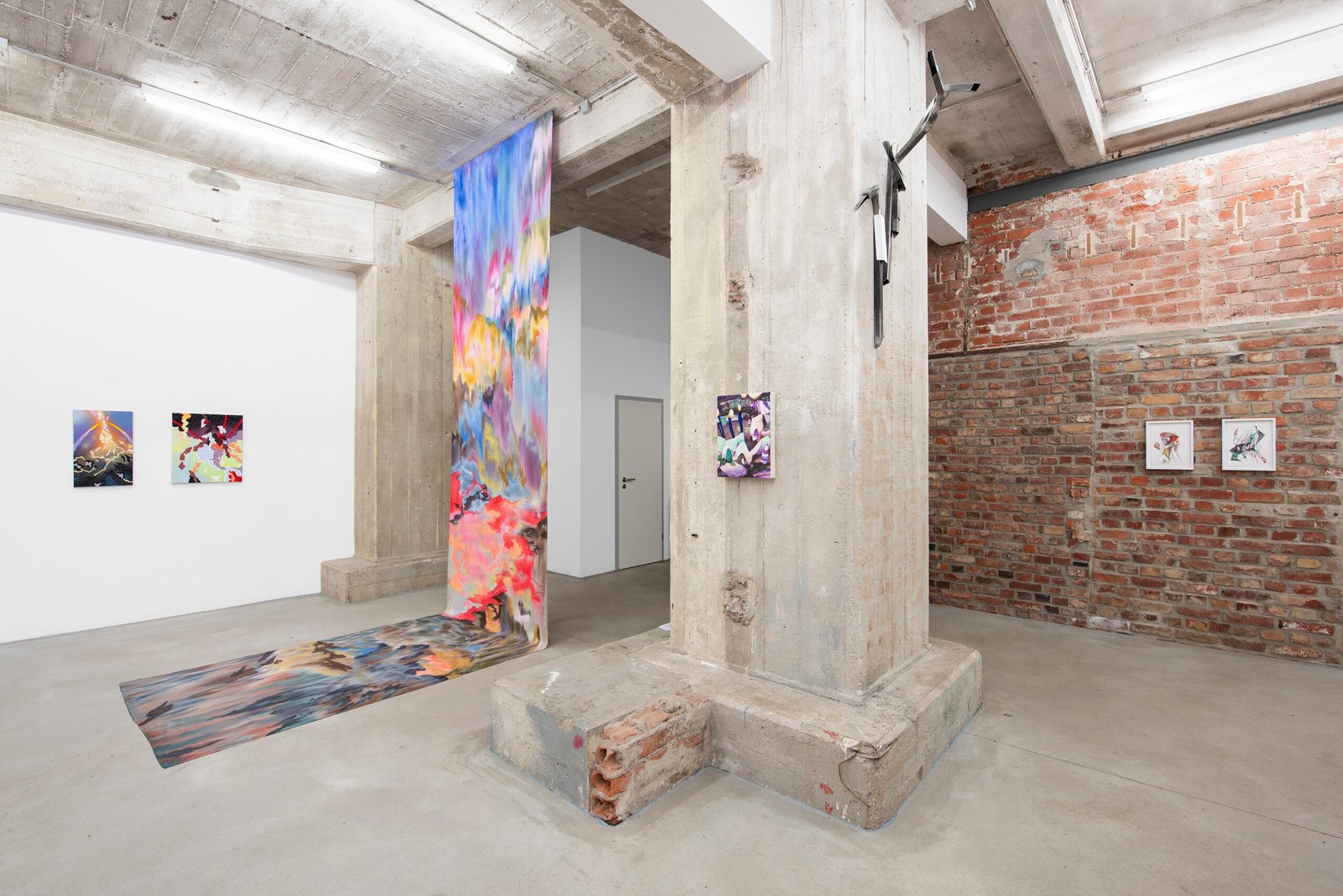 Bright, exaggerated colors create seductive yet threatening pictorial spaces that oscillate between maximalism and dystopian exaggeration. The individual elements stand side by side as equals, competing for attention and transforming the space itself into an active, dynamic structure. Maria Bayer lives and works in Leipzig, where she attends Ivana de Vivanco’s class at the Academy of Fine Arts.