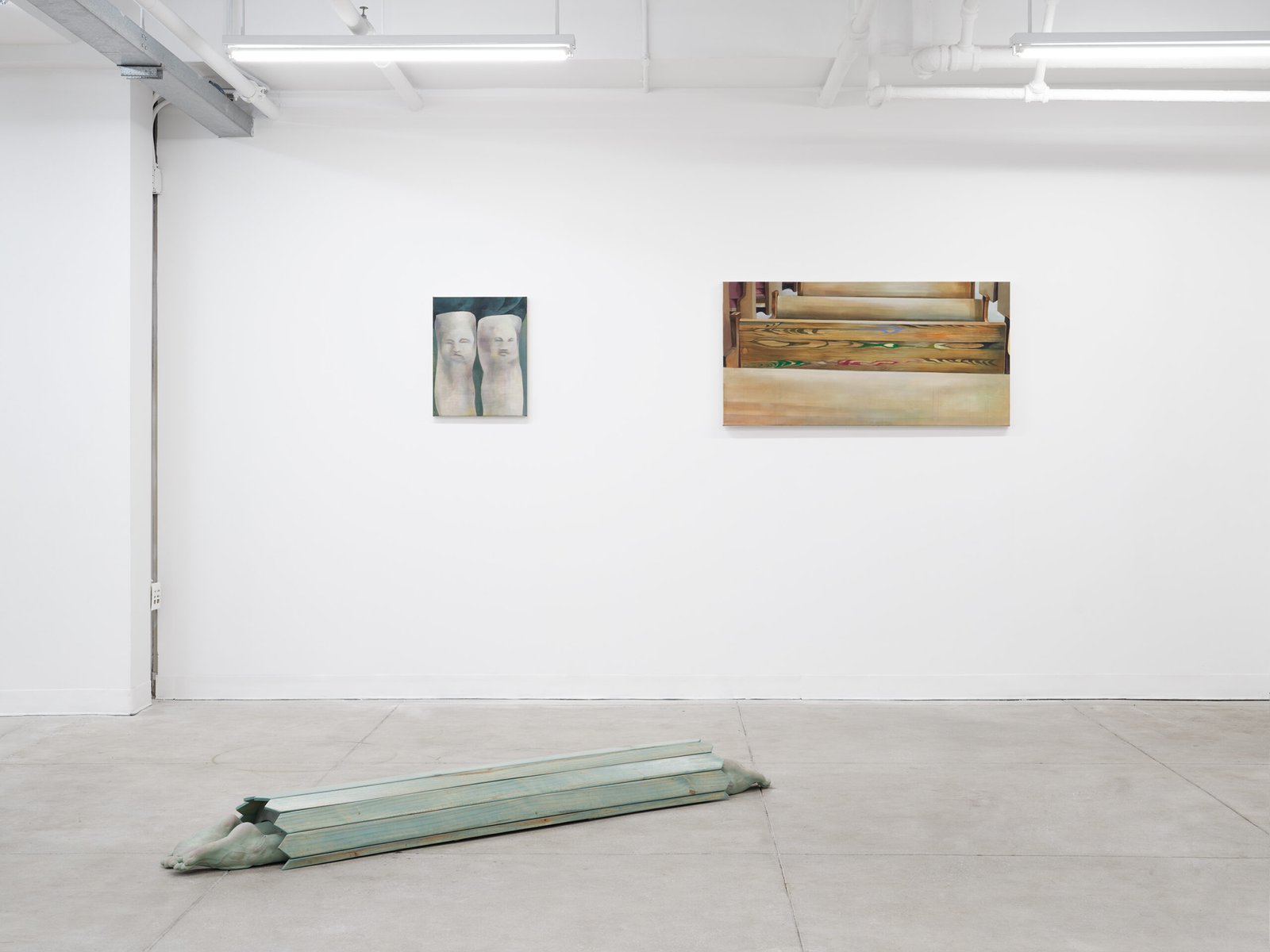 In both In June Park’s paintings and Andrius Alvarez-Backus’s sculptures, fragments of daily life appear out of context, evoking both recognition and uncertainty. Body parts and household objects become self-contained artifacts–details that might otherwise be lost amid the noise of overstimulation. In retraining our focus onto an unseen whole, the specificity of which ultimately gives way to indeterminacy, the artists reenact an increasingly familiar tension: the pull between the human desire for intimacy and a cultural drift toward impermanence.