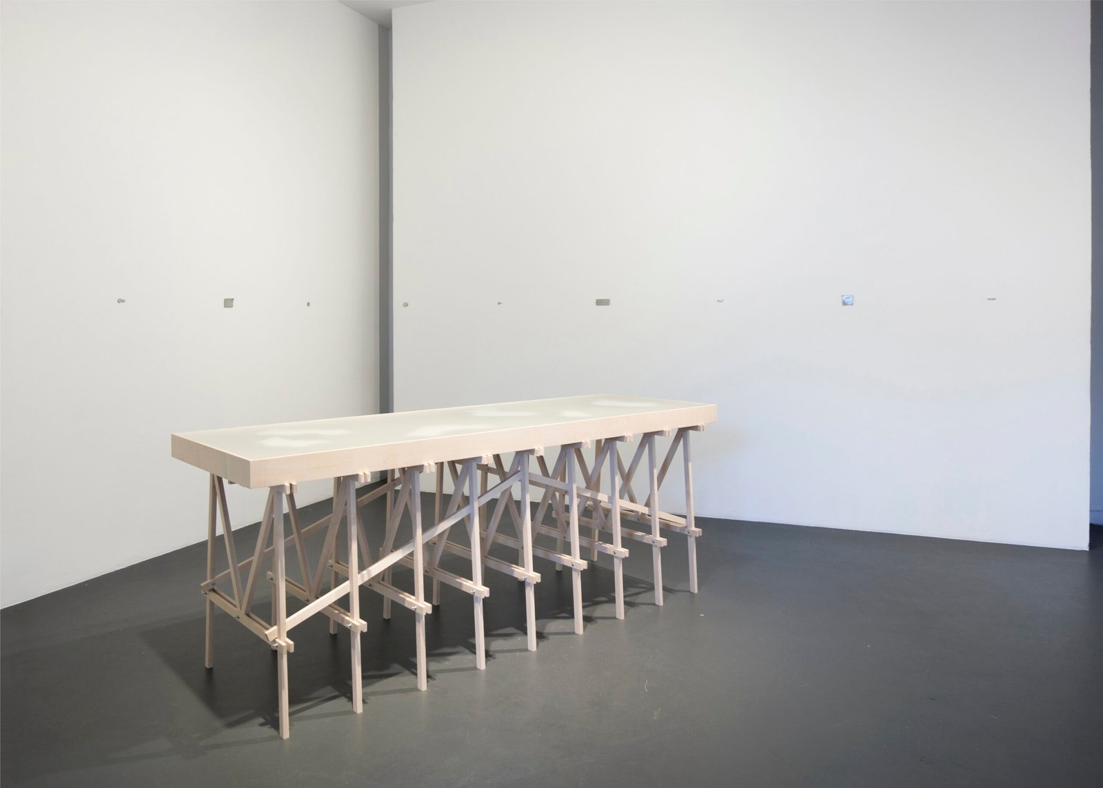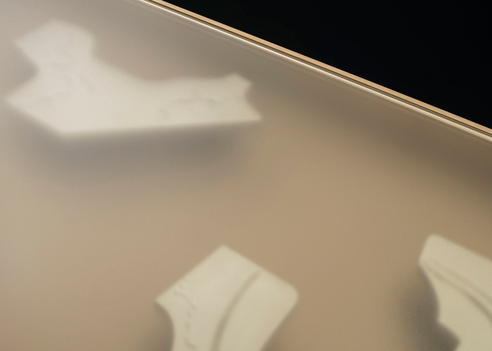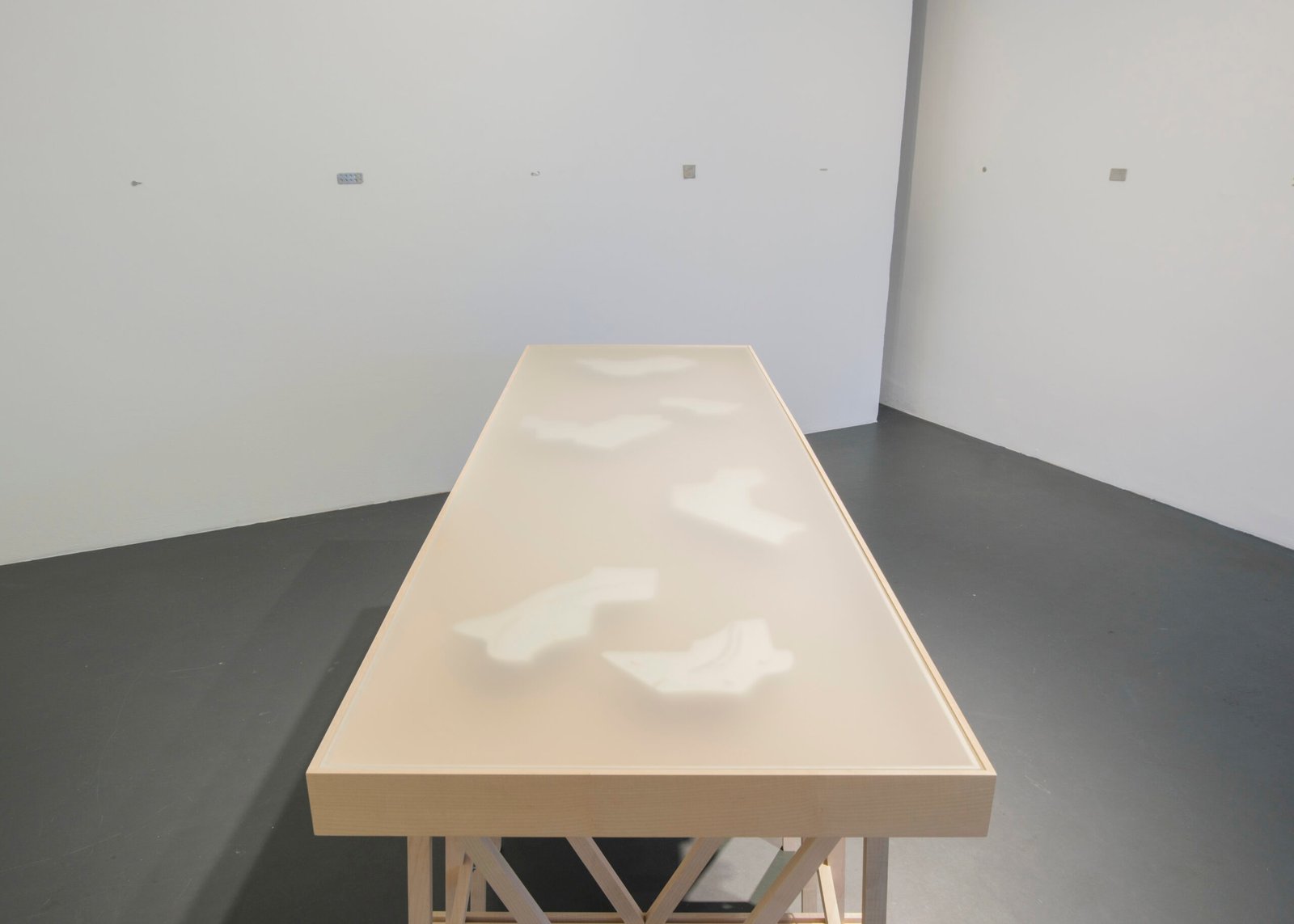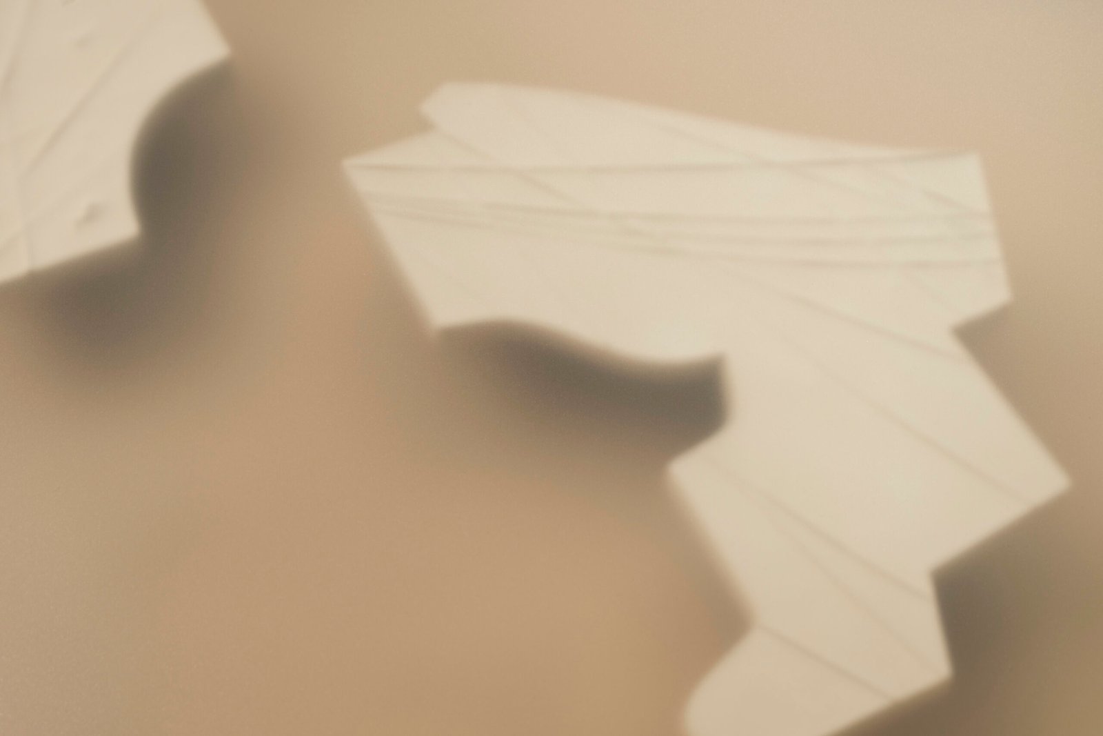 An object, a thing, leaves an impression on a material. Pressed and turned around it makes a mould and transfers a print, an image, somewhere else. The dents and bumps are turned around, processed, set apart from the rest.