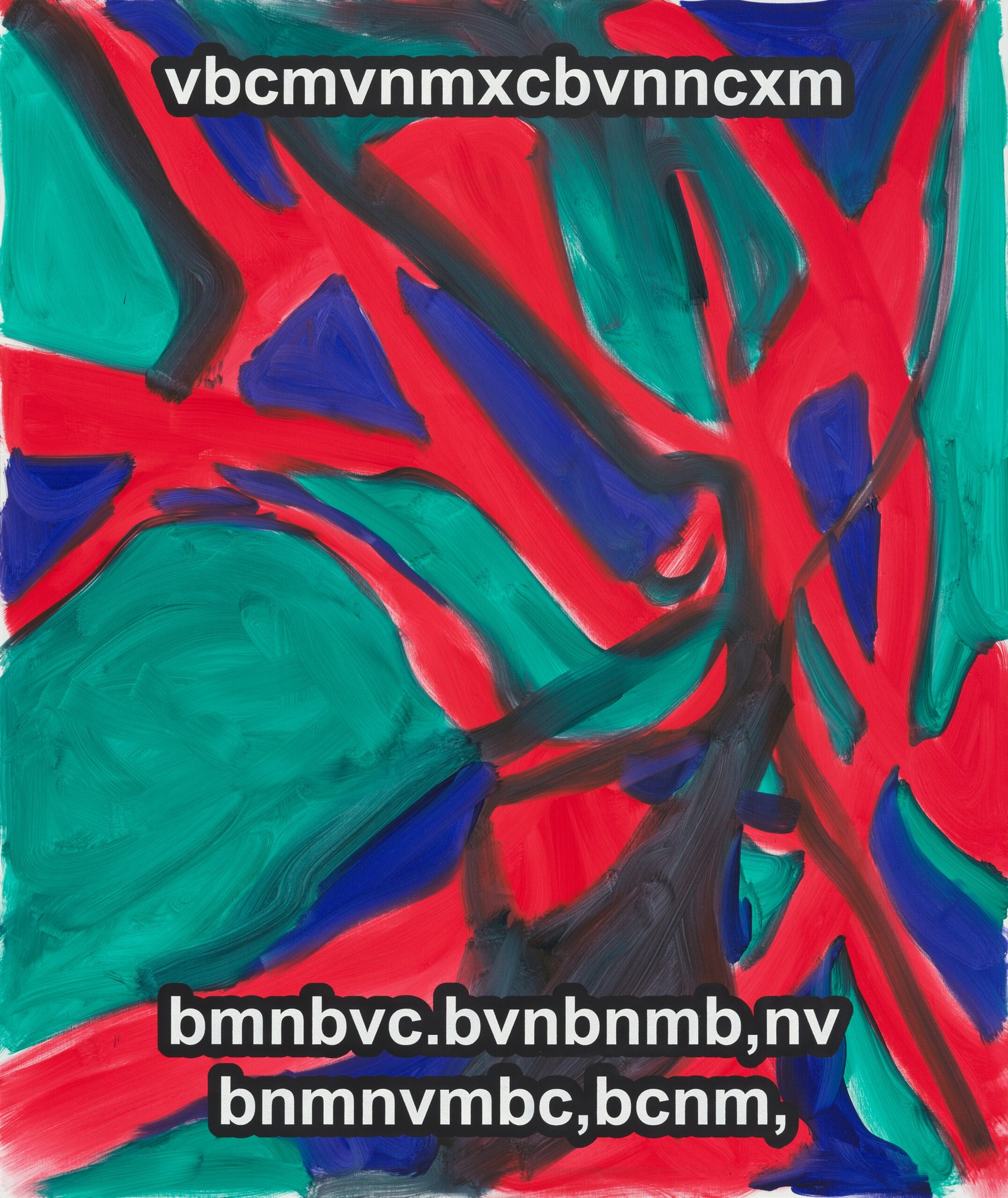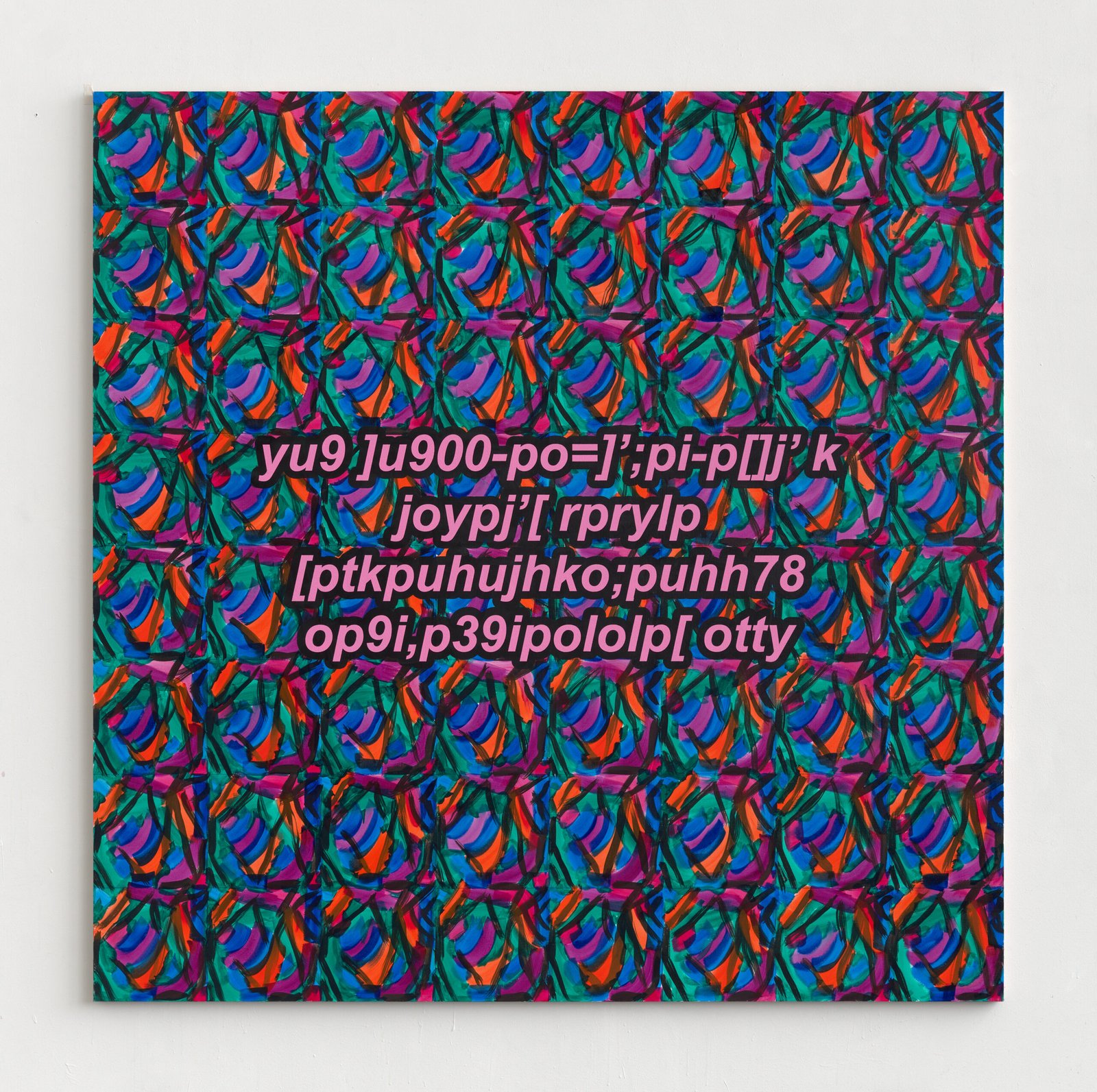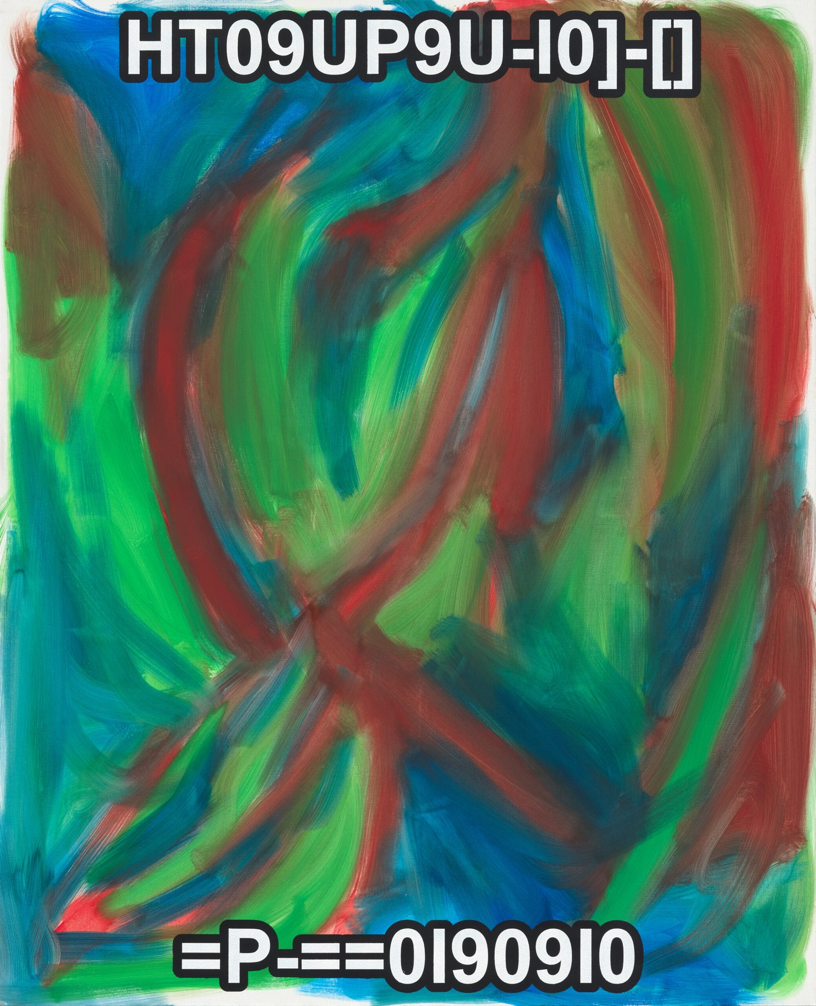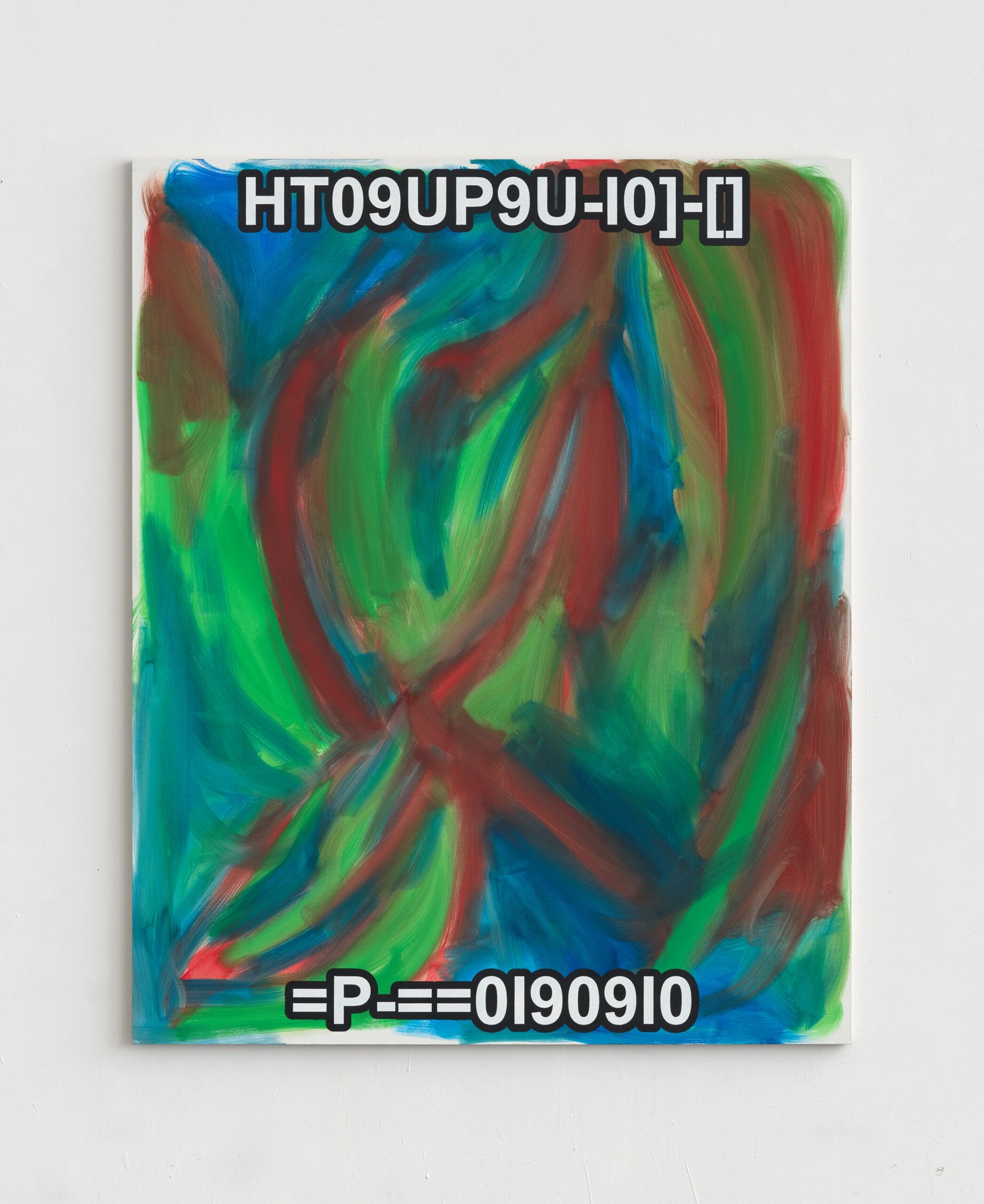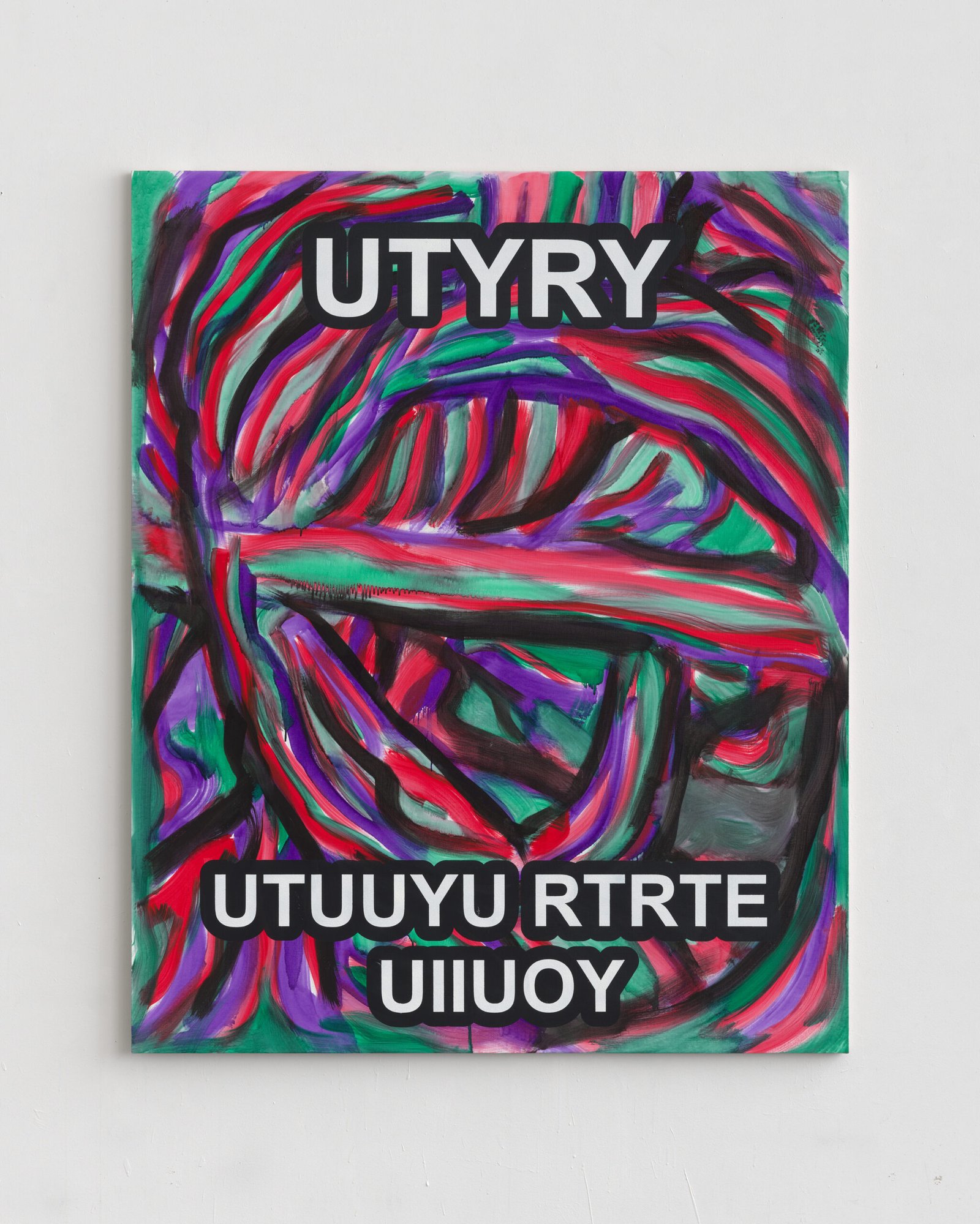 The exhibition presents the latest paintings by Tymek Borowski, from 2023–2025. Their principale theme is scattered inscriptions, words, sentences, and also longer passages of incomprehensible text resulting from the rapid, mindless typing of a sequence of arbitrary characters on the keyboard. They may call to mind automatically generated passwords, randomly invented file names, or encrypted data. They may also visualize the rush of thoughts that happen when we can’t express ourselves clearly.
