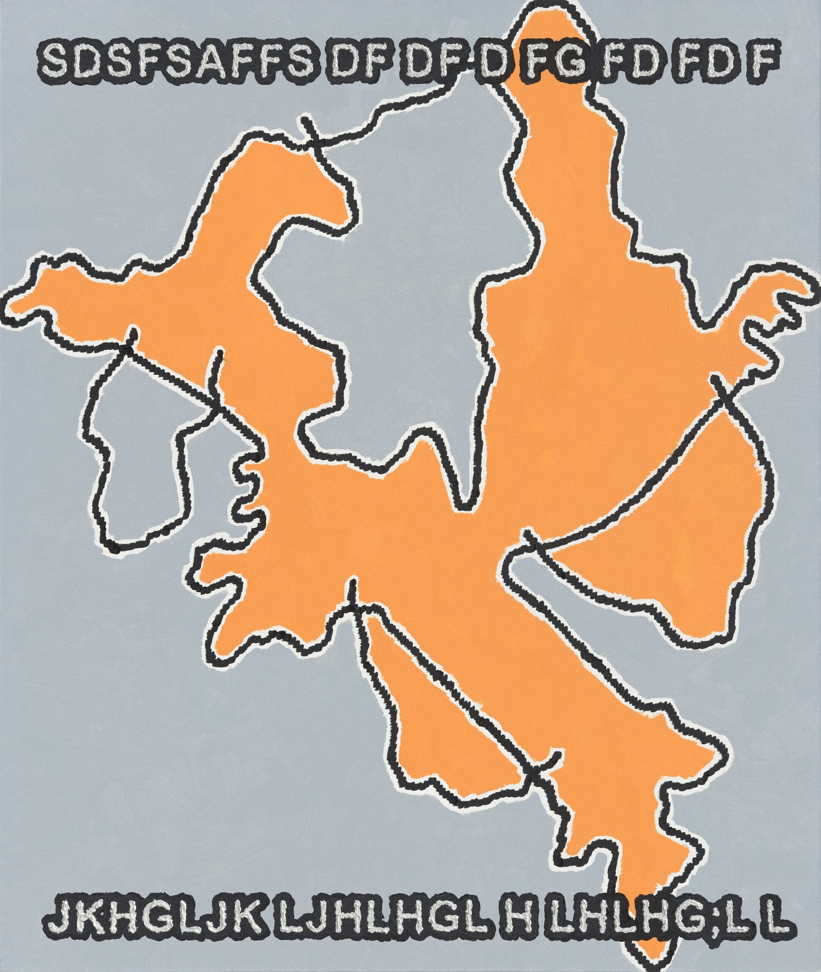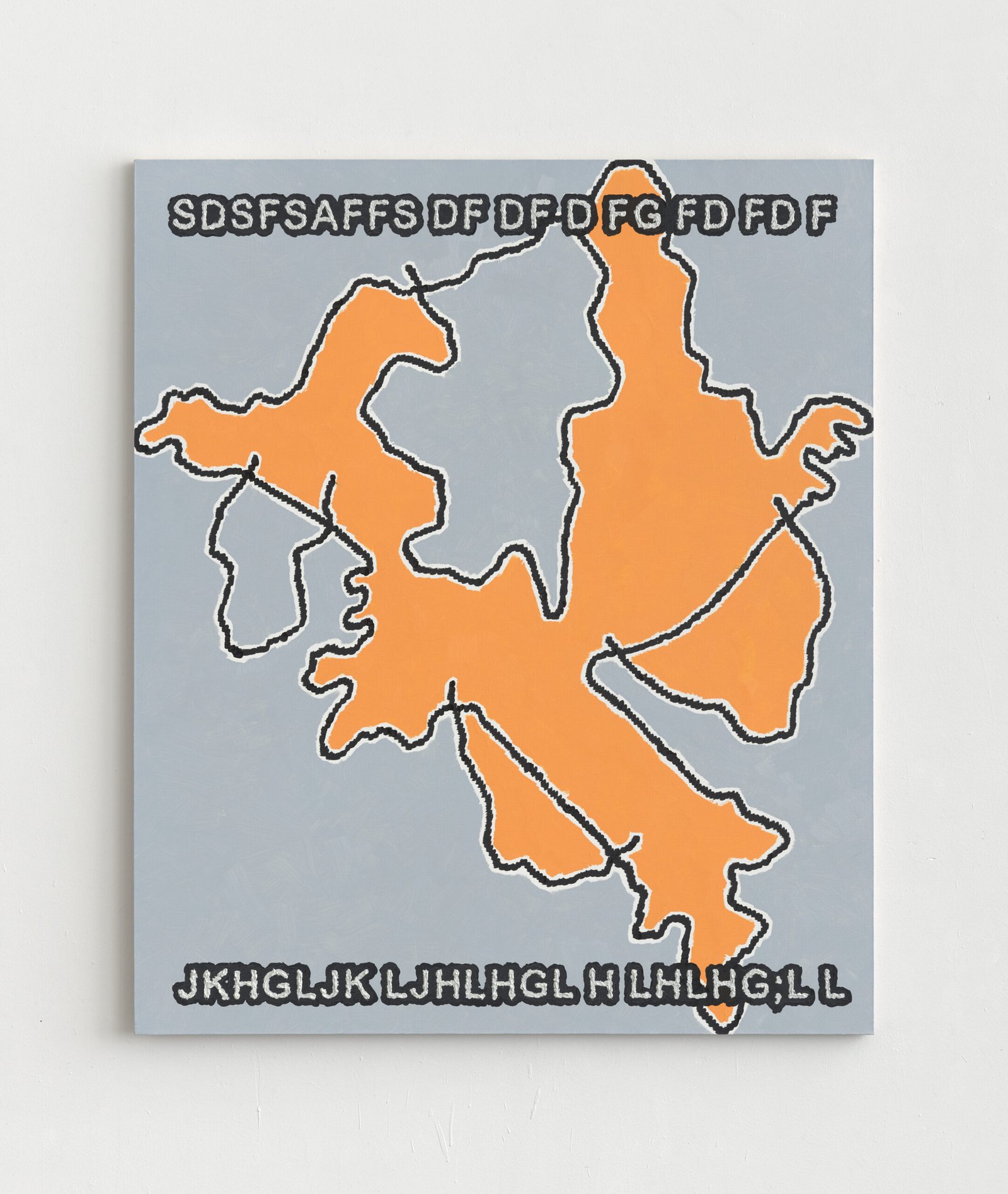 So what do Tymek Borowski’s paintings communicate to us? Are they jokes or serious statements? Calm confessions, or perhaps an expressive venting of frustration? The question of sincerity or irony in his paintings is beside the point. Both confessionalism and cynical distance have recently proved to be strategies leading nowhere. Borowski’s paintings transcend this dichotomy. The chaotic strings of letters are placeholders—generic fragments ready to be filled with communication, content, message—where through cracks we may grasp the Janus-faced truth: that what is wise or foolish, sophisticated or naïve, subjective or structural, is purely a matter of perspective. Only this inconsistency becomes transgressive—especially at a time when our sense of self and attention are eviscerated by exposure to cheap, algorithmically generated content, and by the pressure for non-negotiable and exclusively correct narratives.