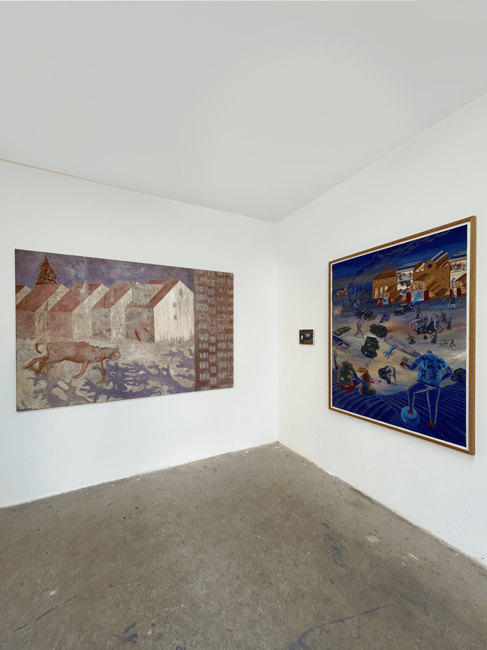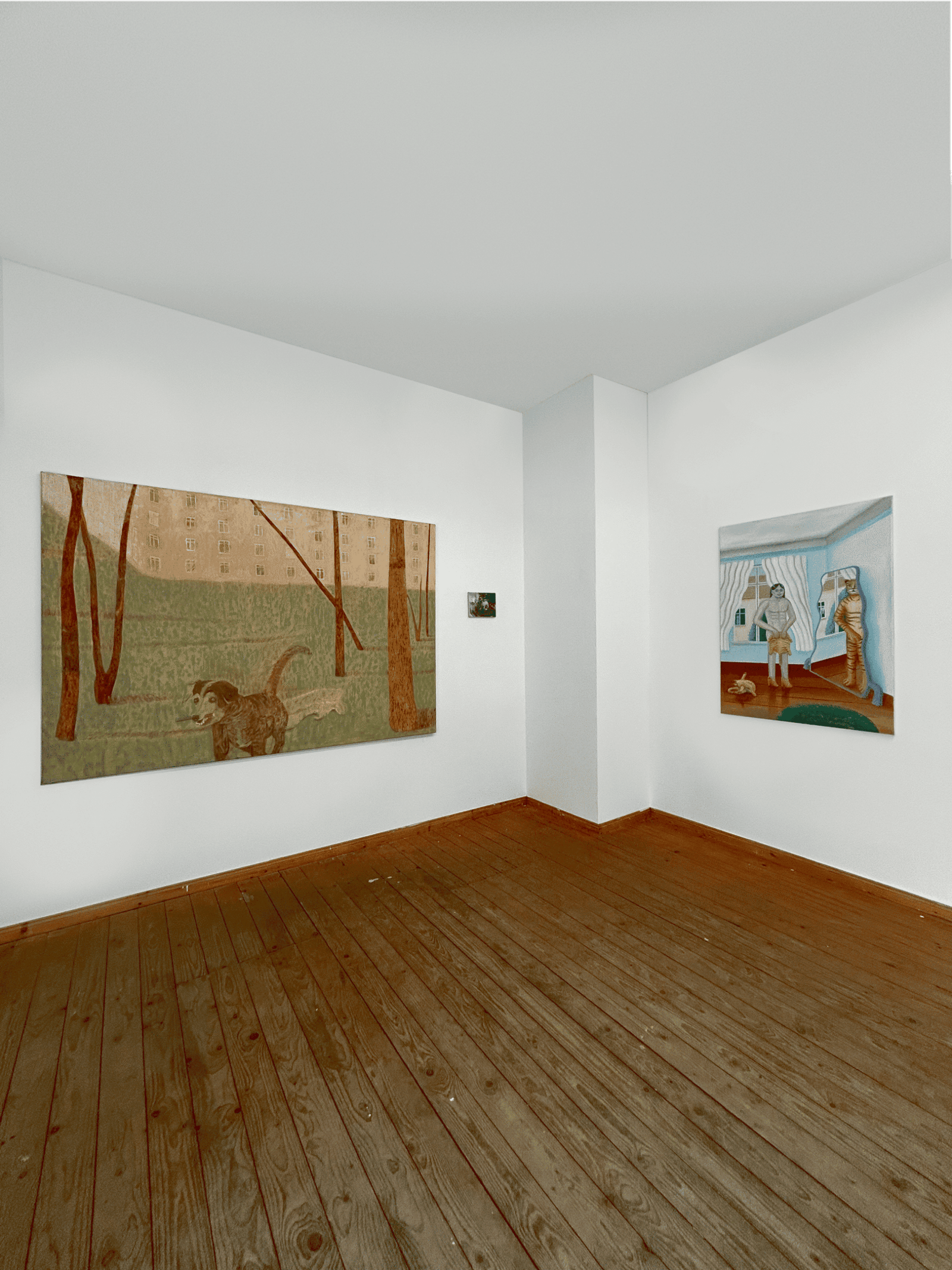 The exhibition title Revier refers to a delimited territory, a space of belonging, defense and orientation. In the animal world, a territory marks an existential zone between protection and threat. Transposed into painting, it becomes the pictorial space in which identity, projection and relationships condense. Where animals appear, fields of tension arise between proximity and distance, instinct and attribution, nature and cultural meaning.