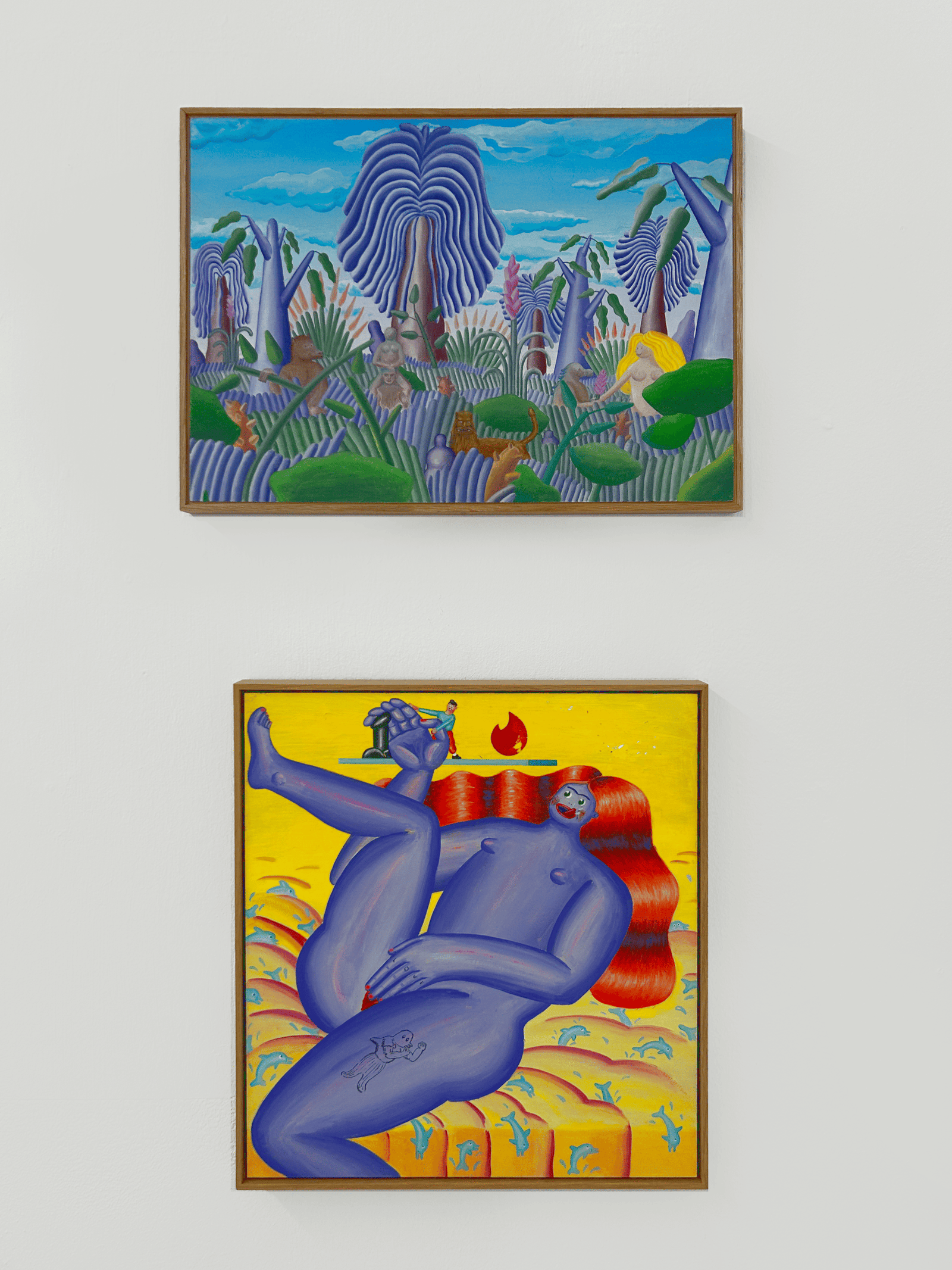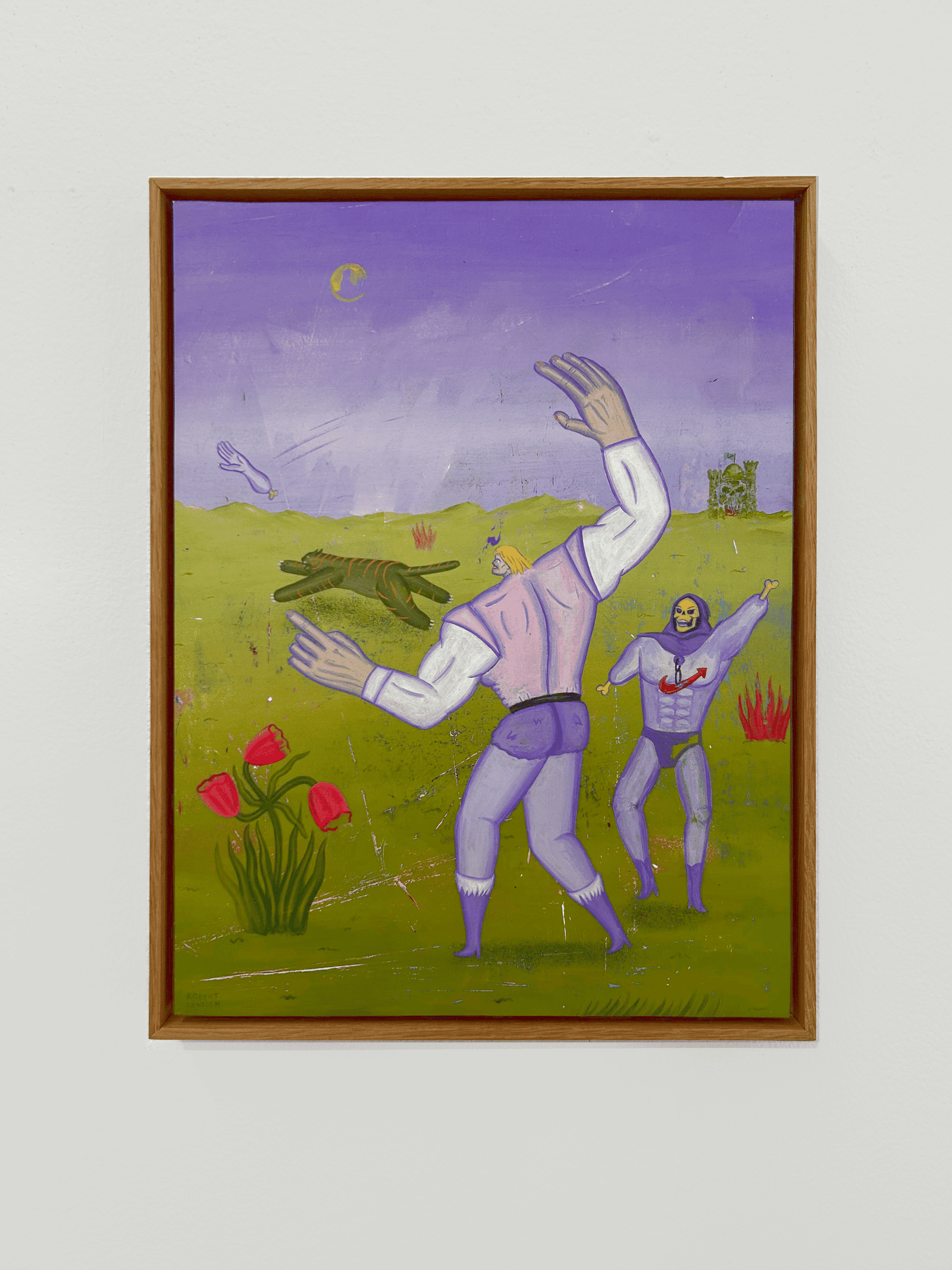 The paintings of Robert Deutsch are characterized by an assertive use of color and by a visual language that incorporates elements of comics and translates them into free painting. In layered, sometimes exaggerated scenarios, animals function as symbolic actors. They mirror human drives, fears and power structures, as alter egos, masks or projection surfaces for social narratives and cultural conditioning. The work also carries a political dimension by visually condensing questions of identity, ideology and social staging. Here the animal becomes both a mirror of inner states and a commentary on social realities.