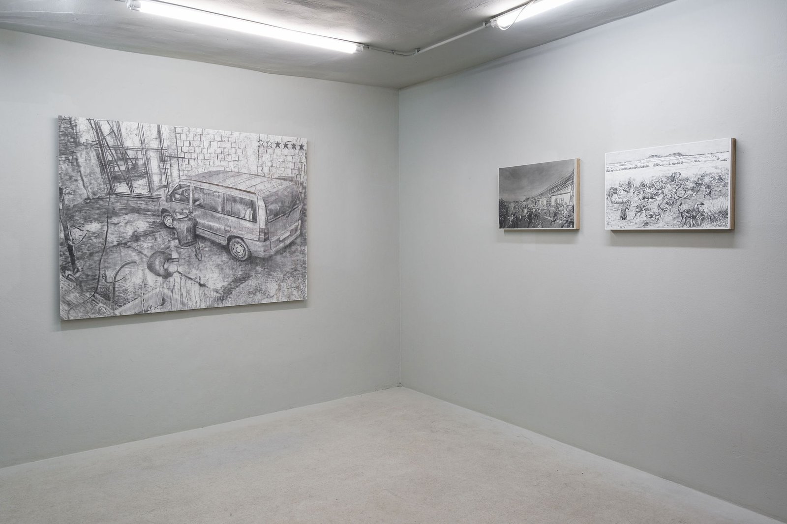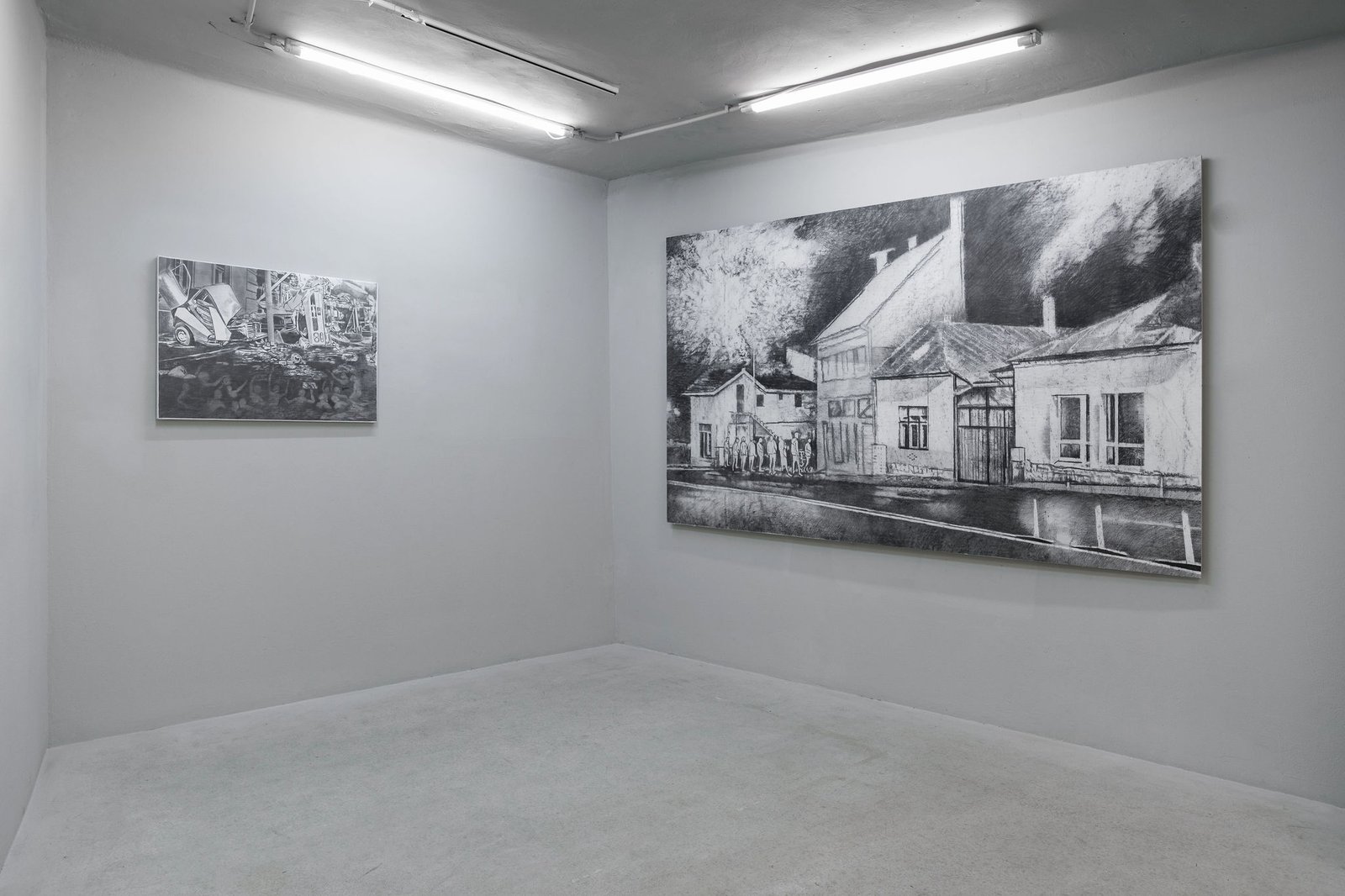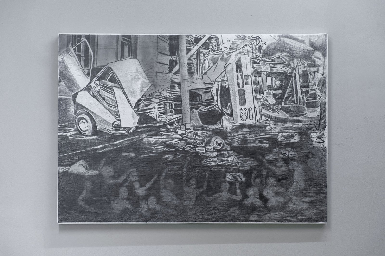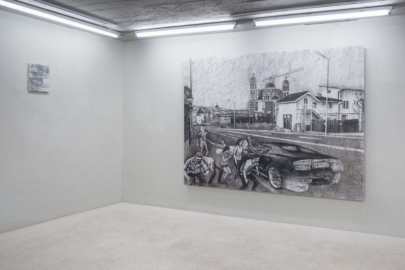 The selection of works calls up for a state of unconditional un-safety: a street corner once marked by