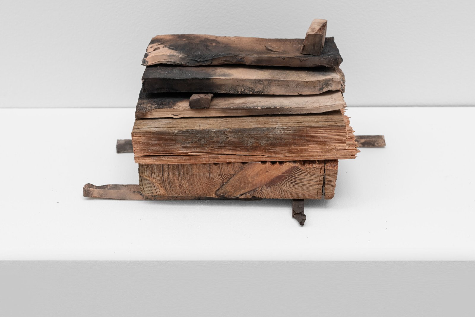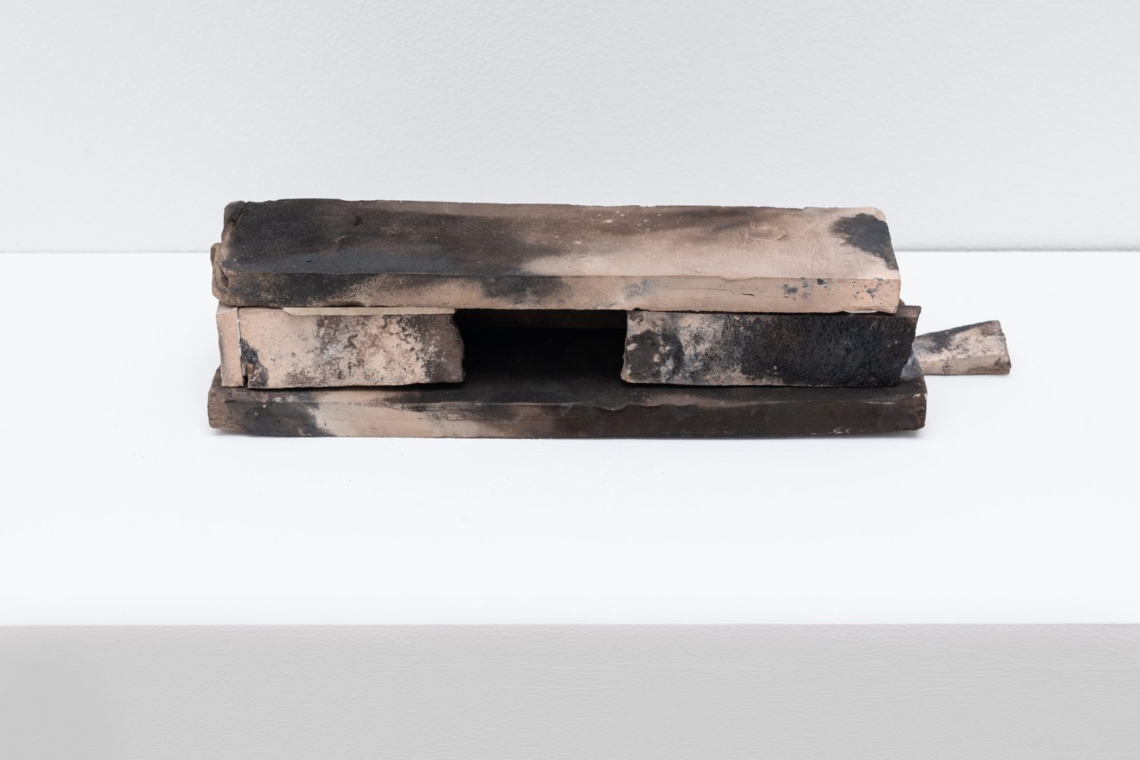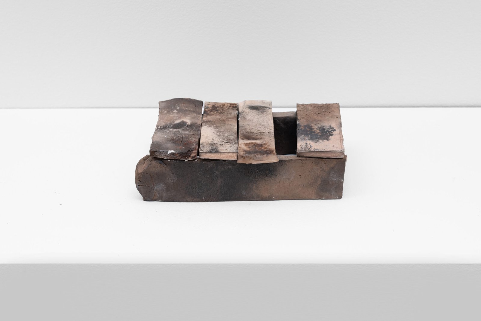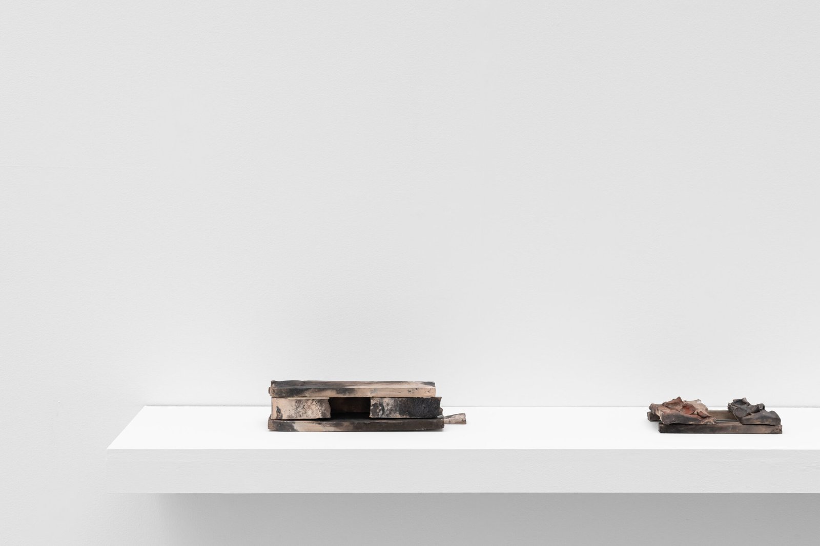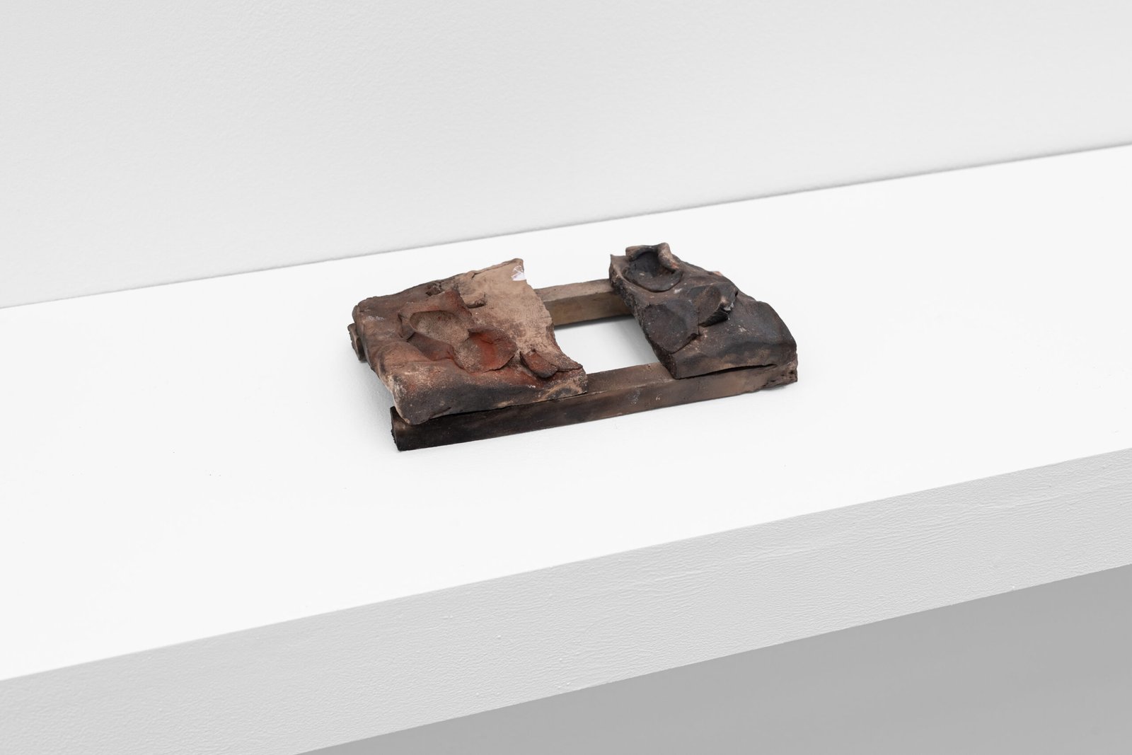 Several Architectural Variations Gillies Adamson Semple has been travelling to Scotland to fire a series of ceramic works. The earthenware pieces were fired in both an industrial kiln and a homemade one. The shapes and forms of the works evoke some sense of structure that could be architectural, or in other words, suggest habitation. However, they don’t seem to arrive at a structurally suitable form. They are imagining architecture as a condition; precarious, partial, and often improper. Each piece offers a fragment or suggestion: rooflines without rooms, walls without interiors, thresholds that lead nowhere. In this imagination, it is that we connect to a different element: absence. Earthenware particularly plays with the absence of a glaze or finish, and the several architectural variations propose a shuffling of possibilities outside functionality. This connects to Adamson Semple’s broader practice and interests, often involving picking up materials and moments from different sites and letting them live in his studio over time, until sound becomes an object and an element’s value not only shifts but shapes into something else. Through intersectional combinations, he holds on to potential until it arrives somewhere else entirely. In this case, he delves into the potential of material as a means to imagine architectures that don’t exist or will ever exist.