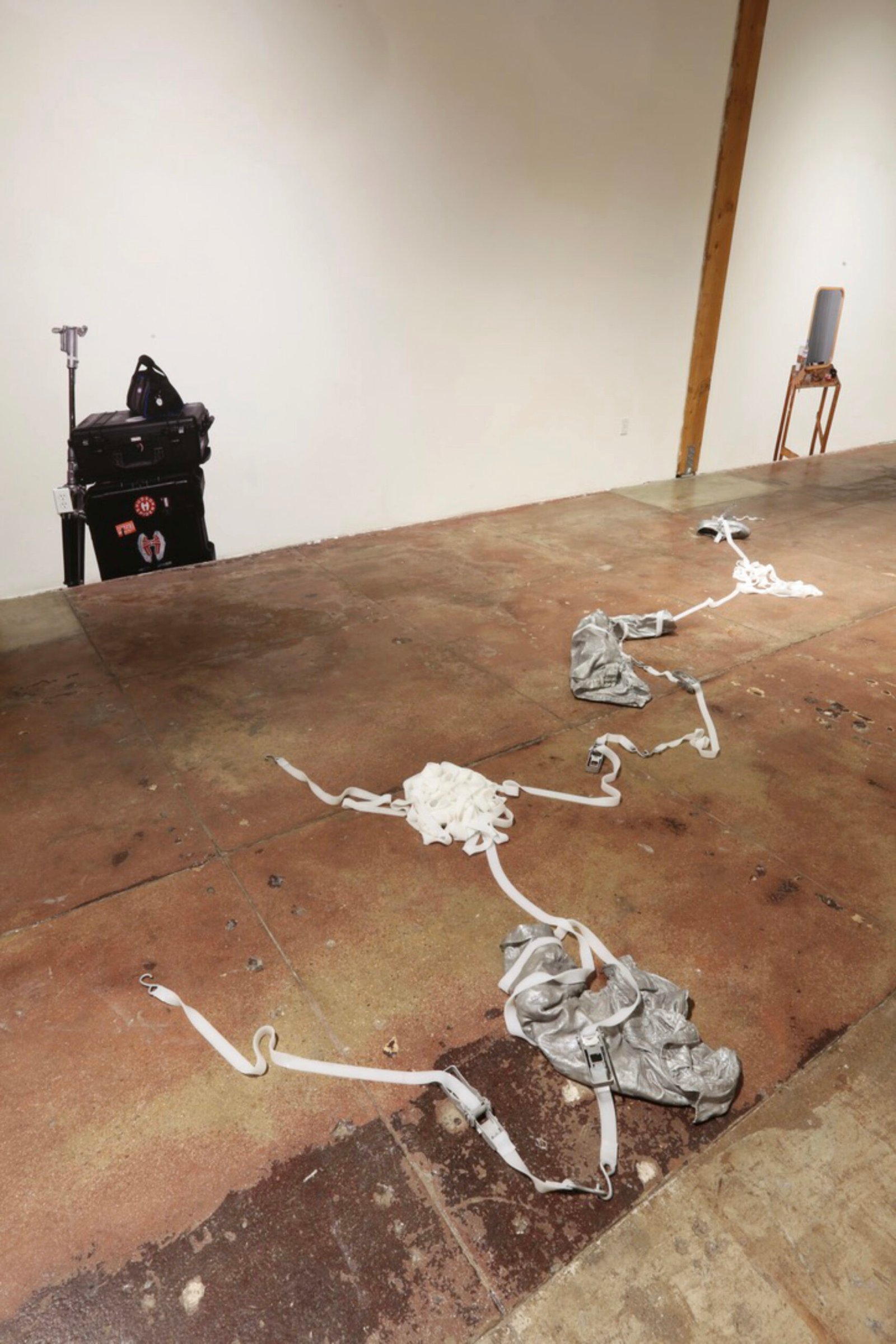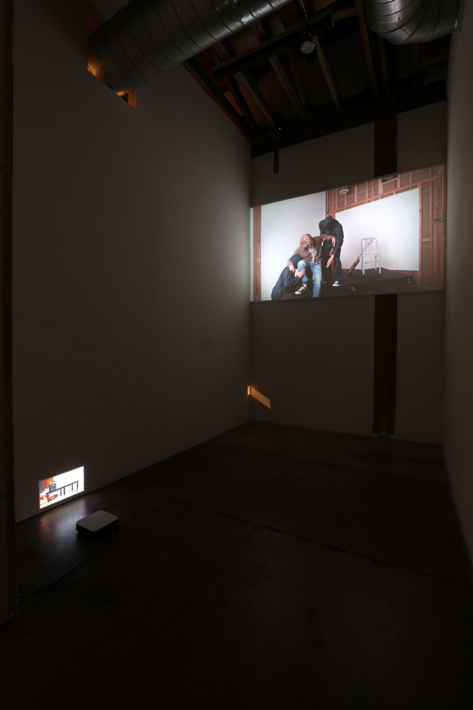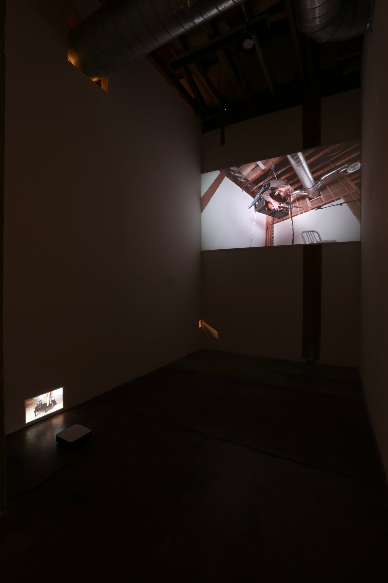 This is Matthew’s first solo exhibition with the gallery. The mechanics of the work consists of multi-channel video + audio, along with sculptural installation.