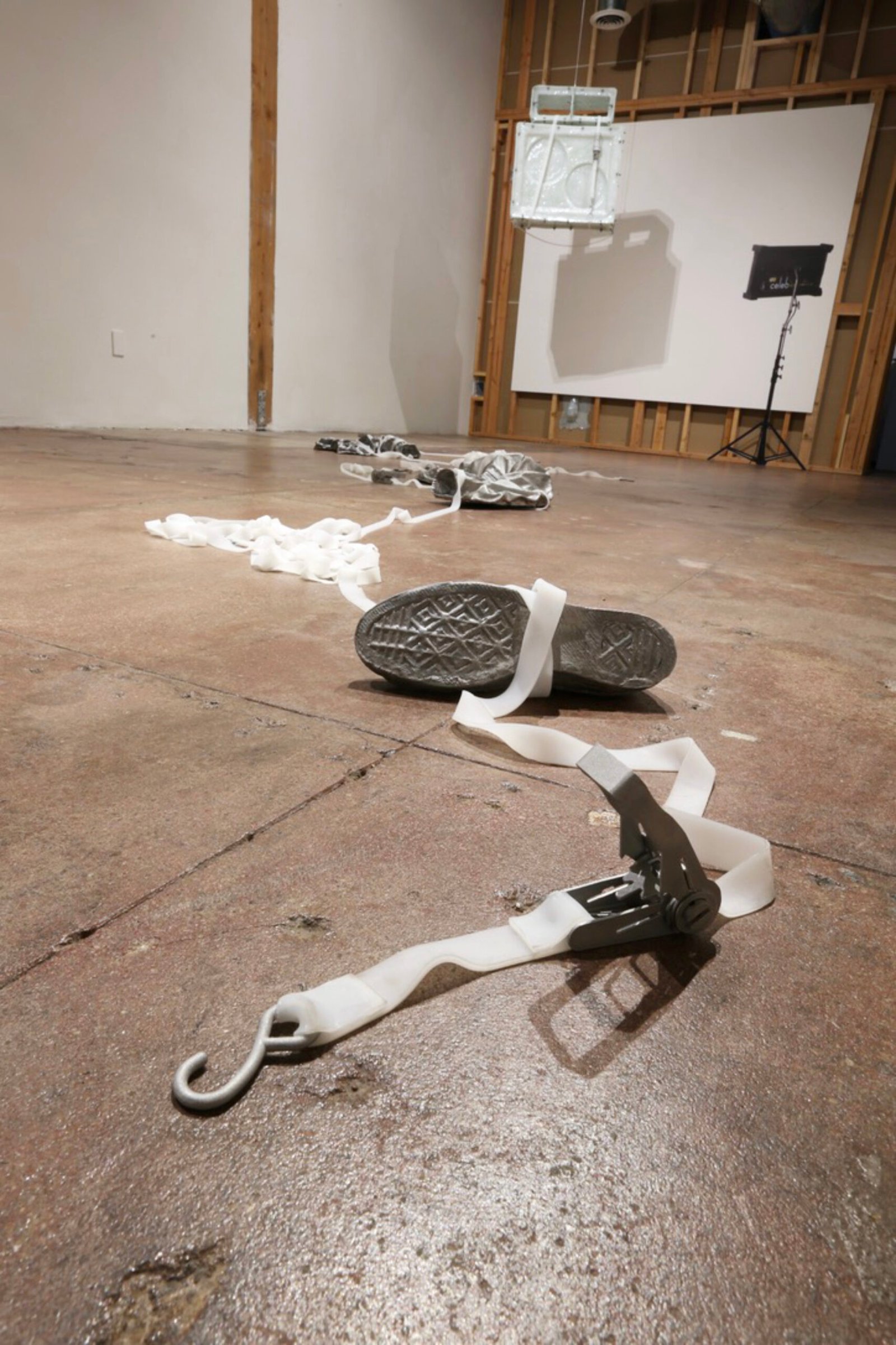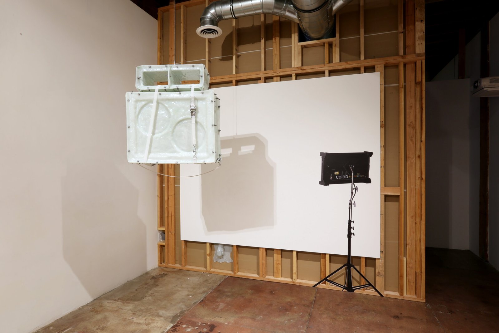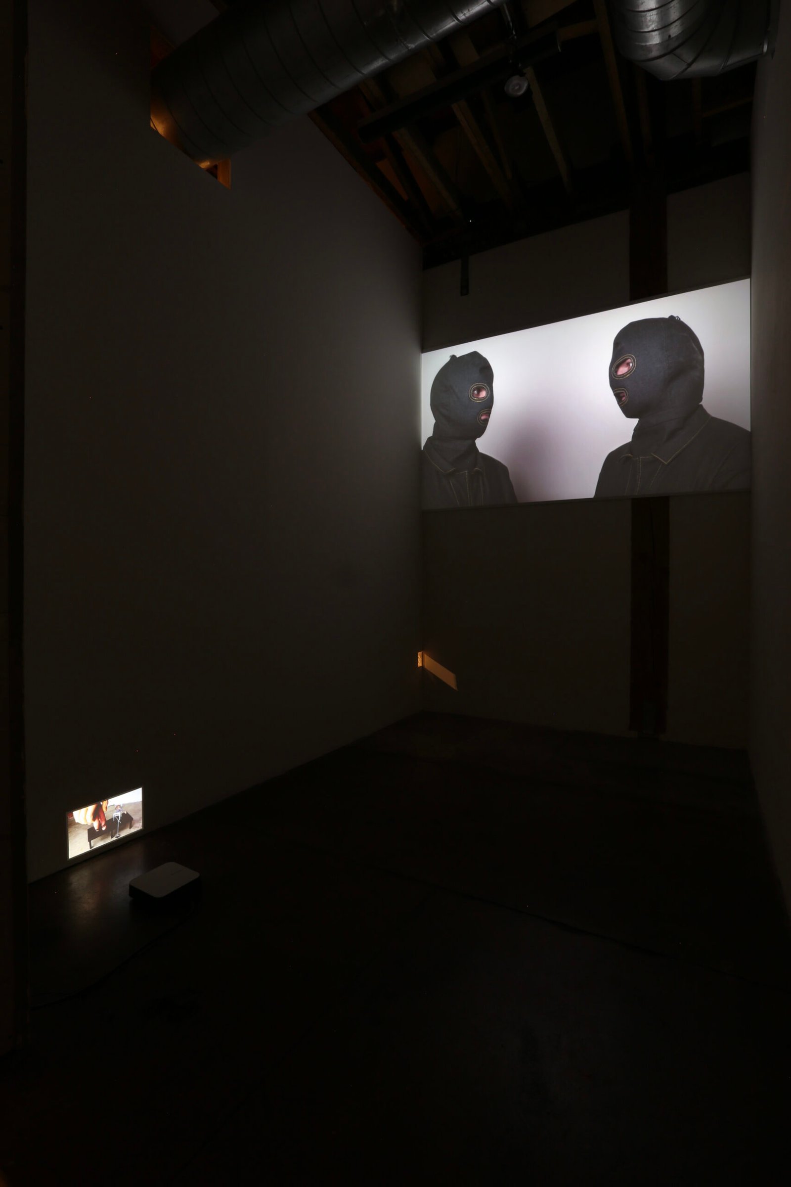 This is Matthew’s first solo exhibition with the gallery. The mechanics of the work consists of multi-channel video + audio, along with sculptural installation.
