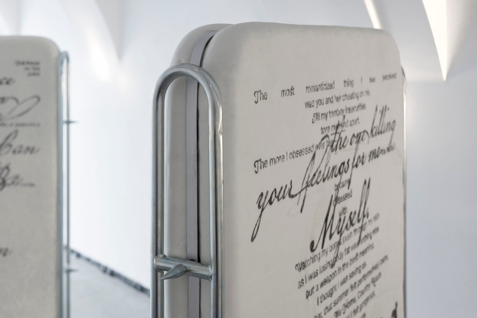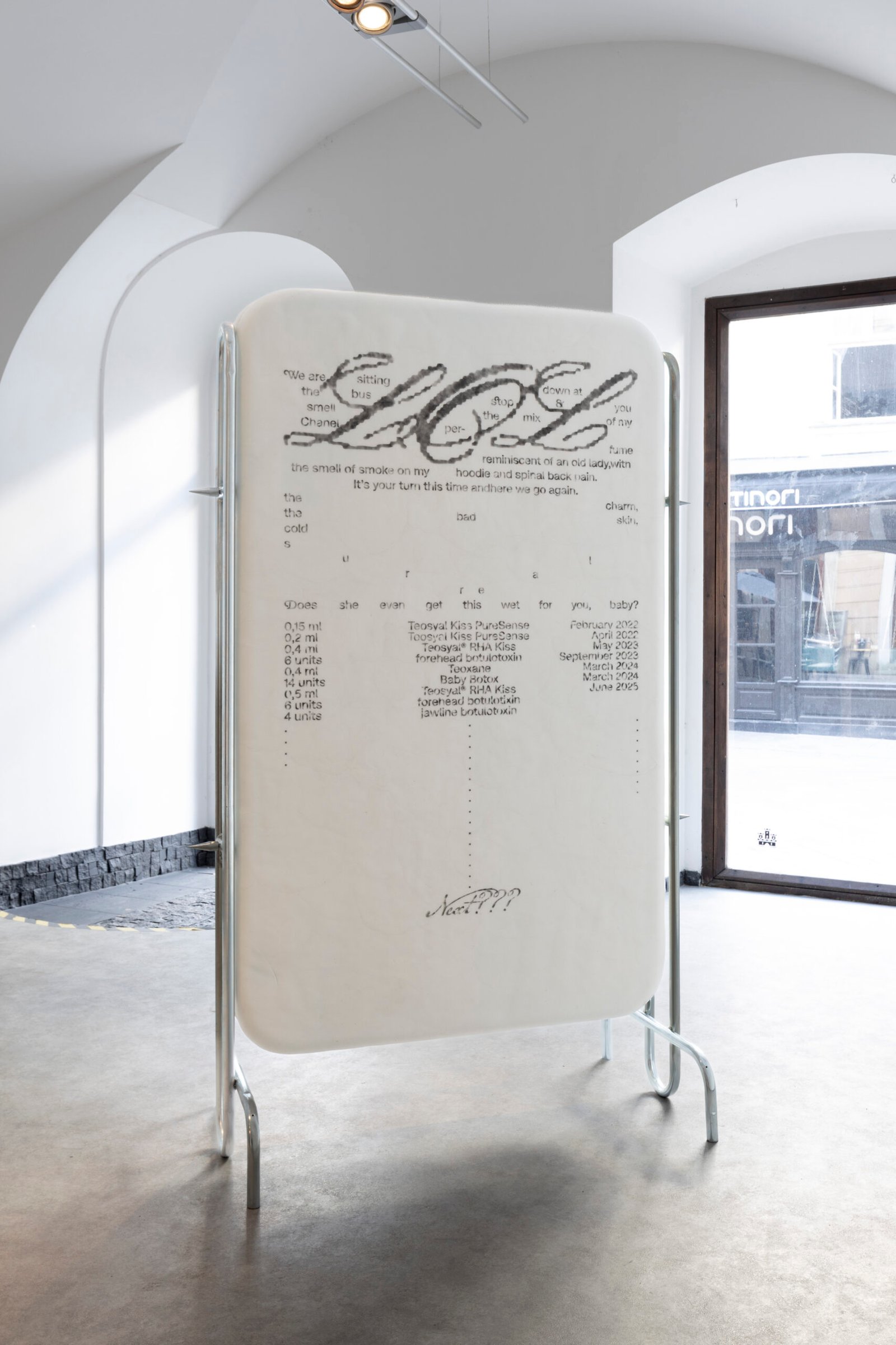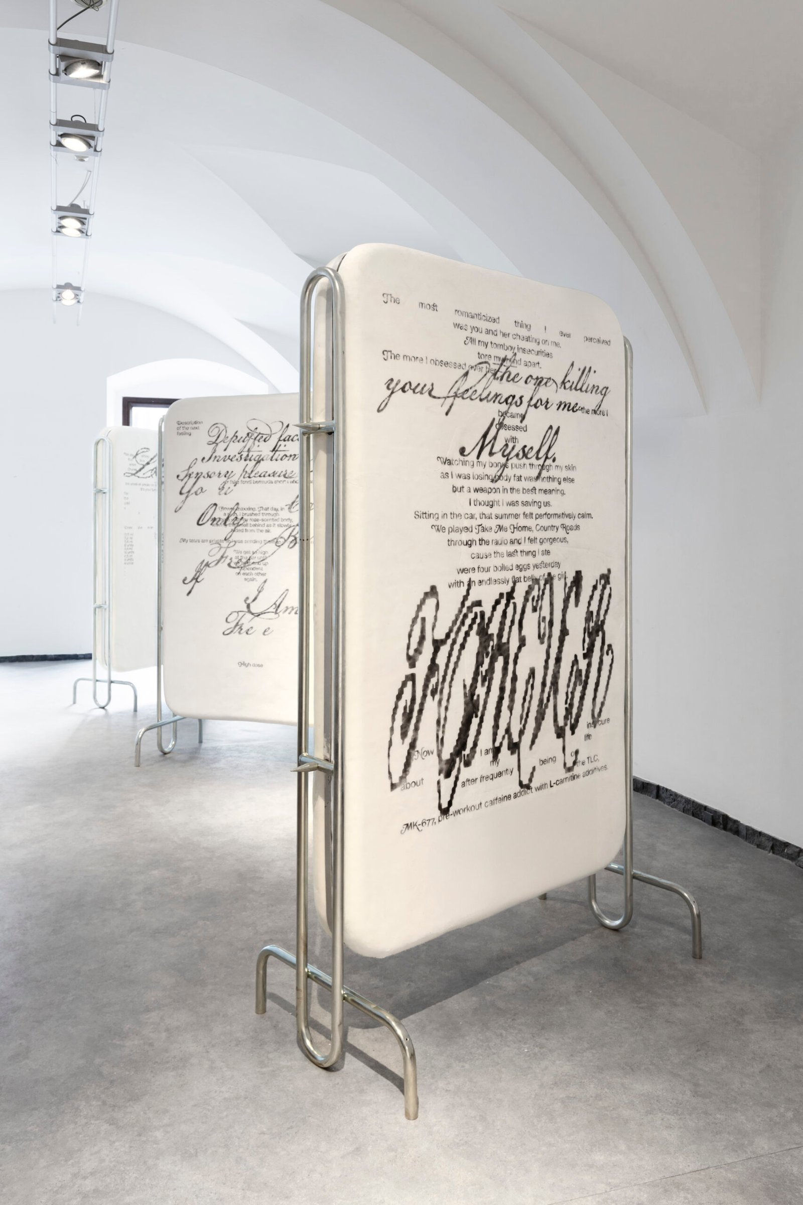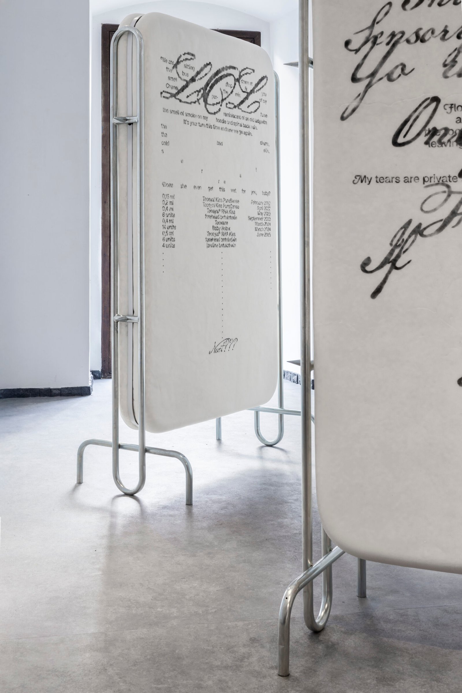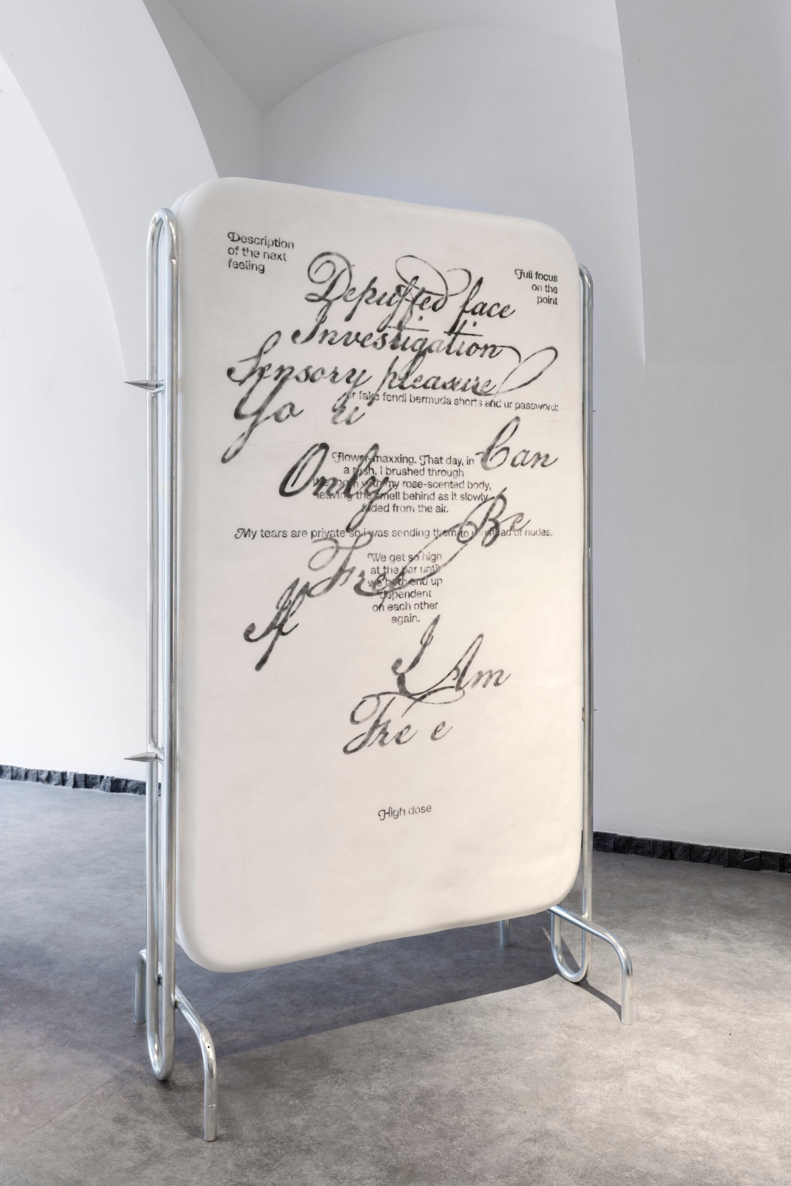 The exhibition centres itself around the medicalisation of feeling, anxieties of late-stage capitalism, the decay of intimate connections, and the search for survival strategies in the environment of emotional excess.