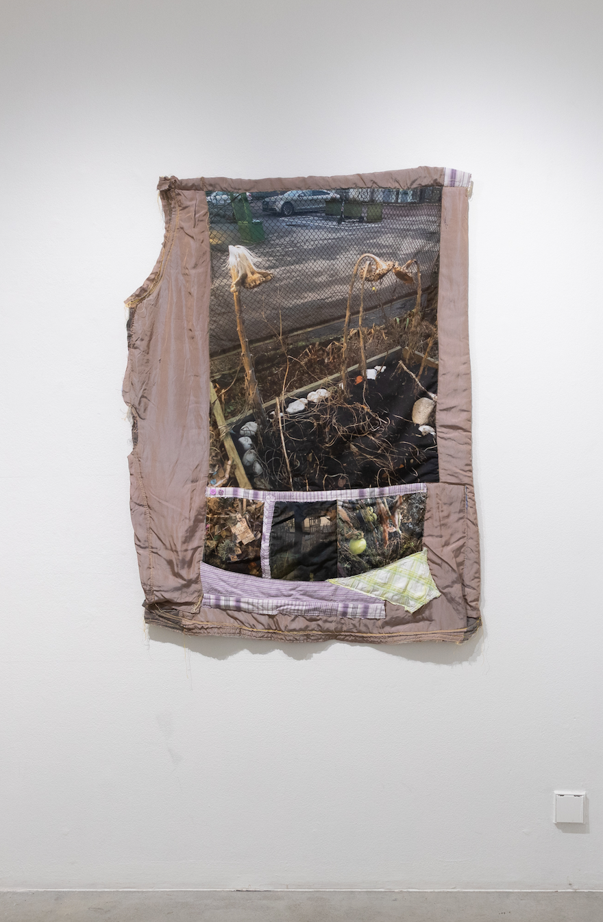 Made using a field-recording approach, the photographic imagery found with the exhibition depicts scenes of everyday life cropped from the artist’s perception. With the ability to constantly create images out of reality – allowed by the proximity of the smartphone – the notion of “a moment” becomes fragmented and a certain sense of continuity is broken, or in Guy Debord’s words: “Like lost children we live our unfinished adventures.”* Through the stitches of sewing that both separate the images and attach them together, Blosseville draws an analogy for the stigma necessary to create an image from one’s own perception via a camera lens.