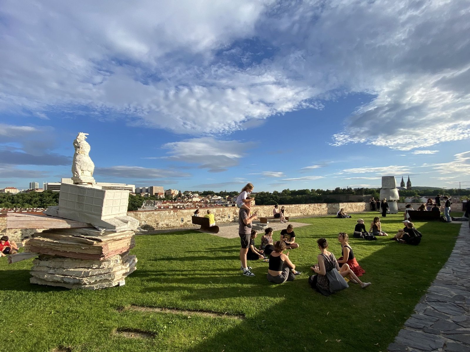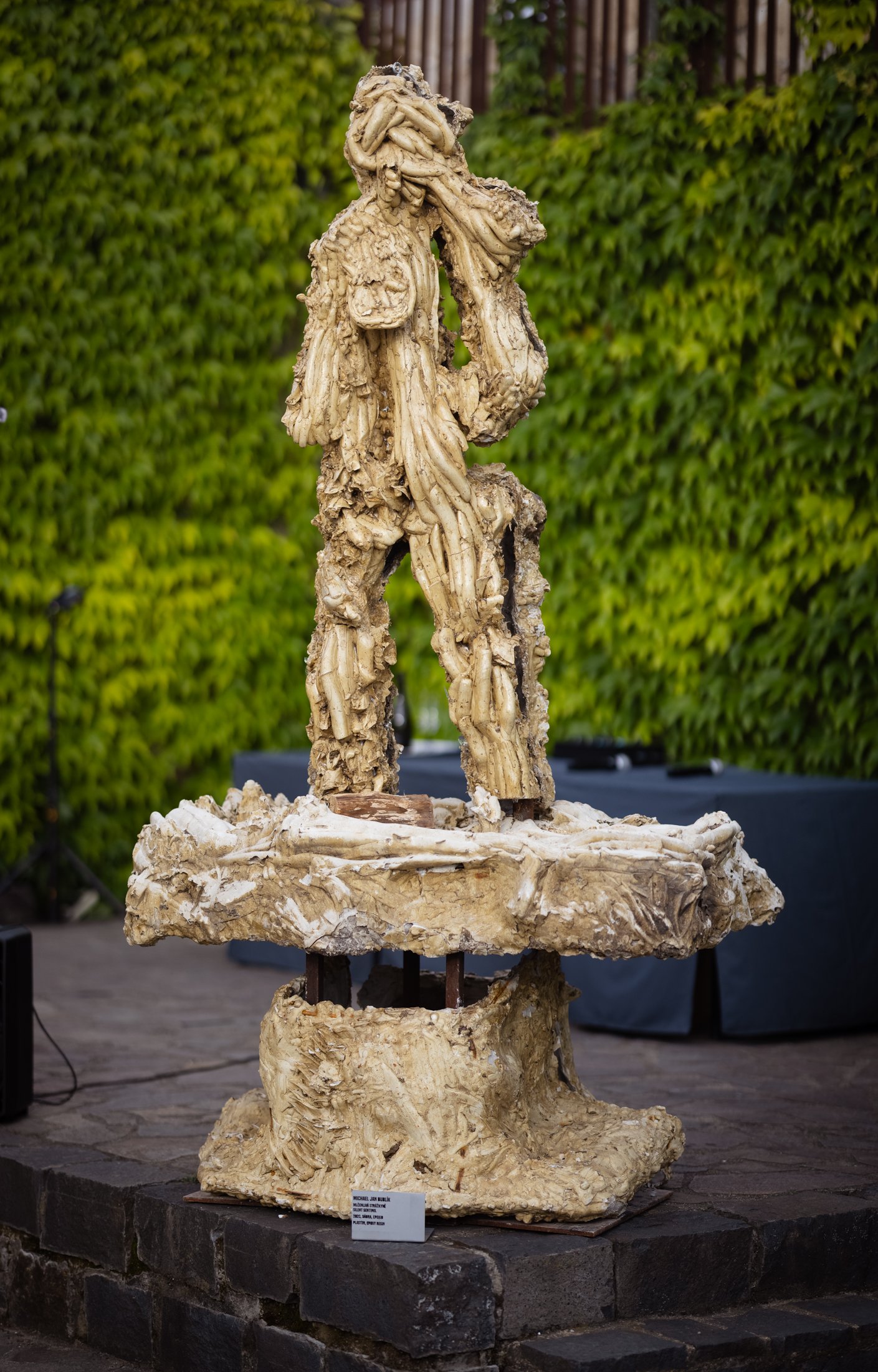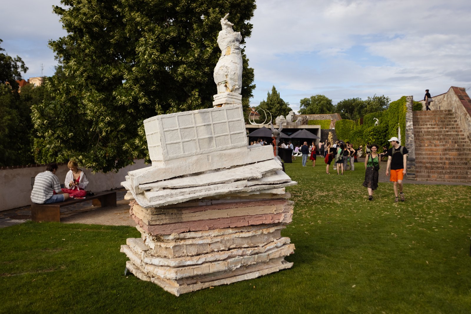 A focus on physicality and sensuality unites the work of contemporary artists across generations and sculpture studios at the Academy of Fine Arts in Prague, expressed through a wide range of individual styles. Works were selected for the impressive space of the bastion, with its open horizon overlooking the Nusle Valley, that relate to physicality not only through the figure but also through plasticity, proportional relationships, sensitivity to material, and the organic nature of the transformation of matter. Thus, several narratives unfold on the terraces of the bastion, touching upon existential, social, and environmental themes. The semantic layers of individual works—dealing with memory, fictional history, personal mythology, archetypes, and symbols—take on a special intensity and gravity in the historically charged environment of the bastion, renewing a sense of rootedness in the continuity of time and space.