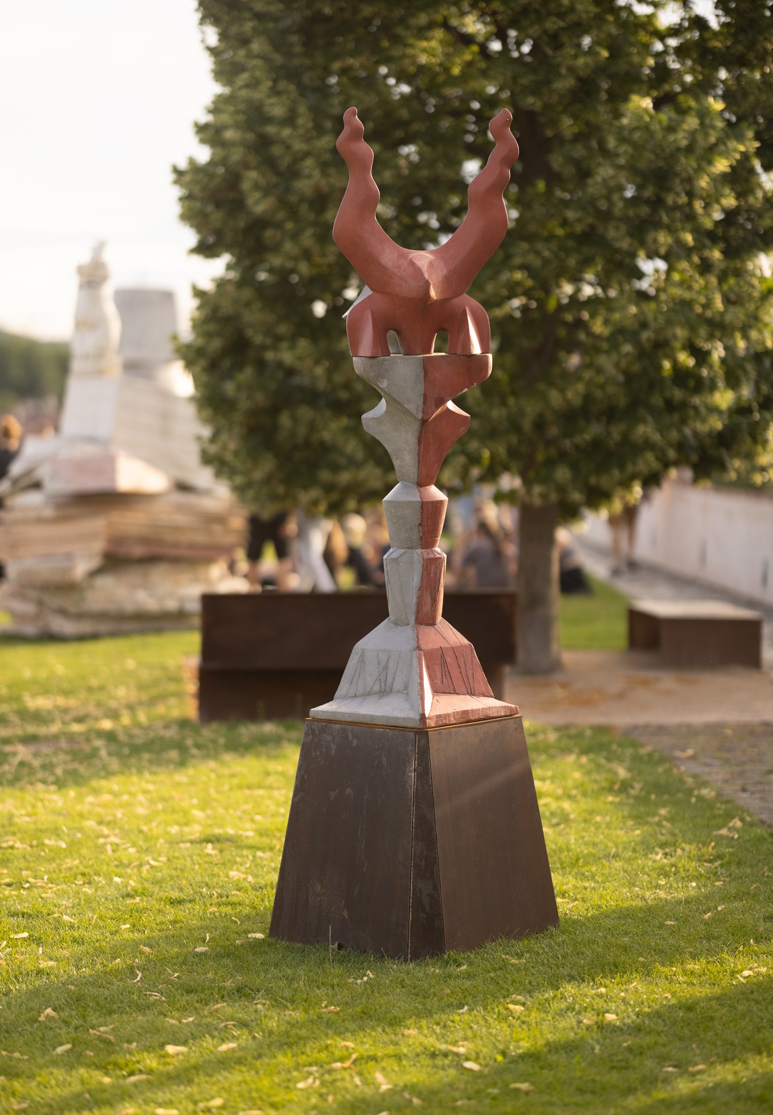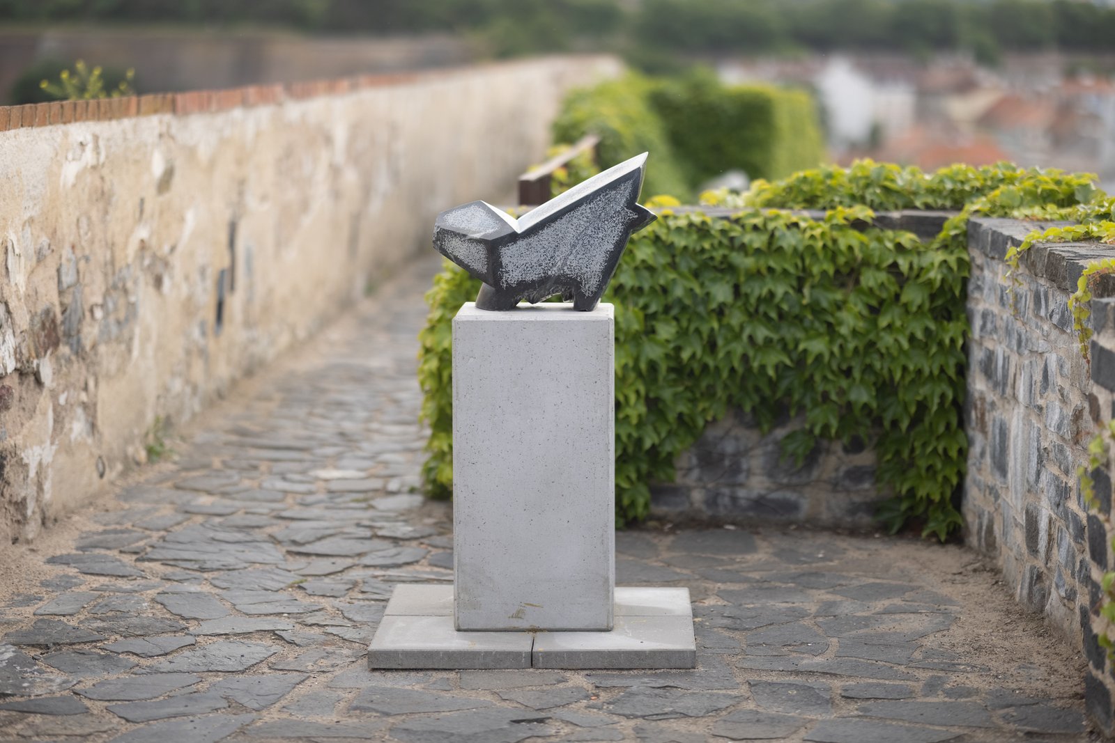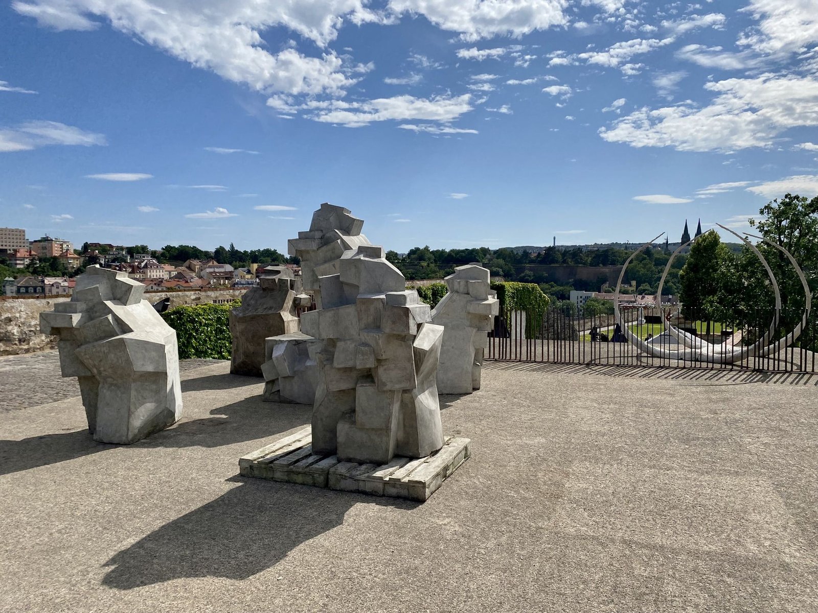 A focus on physicality and sensuality unites the work of contemporary artists across generations and sculpture studios at the Academy of Fine Arts in Prague, expressed through a wide range of individual styles. Works were selected for the impressive space of the bastion, with its open horizon overlooking the Nusle Valley, that relate to physicality not only through the figure but also through plasticity, proportional relationships, sensitivity to material, and the organic nature of the transformation of matter. Thus, several narratives unfold on the terraces of the bastion, touching upon existential, social, and environmental themes. The semantic layers of individual works—dealing with memory, fictional history, personal mythology, archetypes, and symbols—take on a special intensity and gravity in the historically charged environment of the bastion, renewing a sense of rootedness in the continuity of time and space.